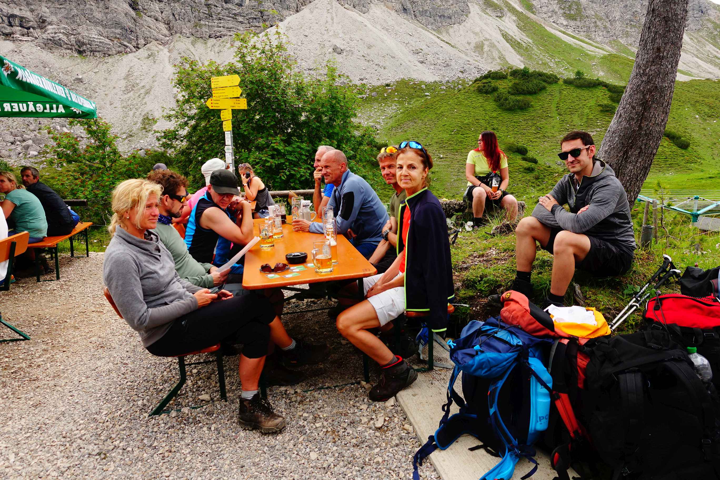 Auf der Landsberger Hütte angekommen bekamen wir gerade noch einen Tisch draußen auf der Terrasse. Kleine Pause von ca. 1 Stunde war angesagt, um etwas zu essen oder zu trinken. Ich kümmerte mich erstmal ums Einchecken und wir konnten gleich ins Lager „Schwalbennest“ einziehen, bevor wir weitergingen, so konnten wir viel Gepäck einfach schon hierlassen und mit leichtem Rucksack unsere Gipfel besteigen.