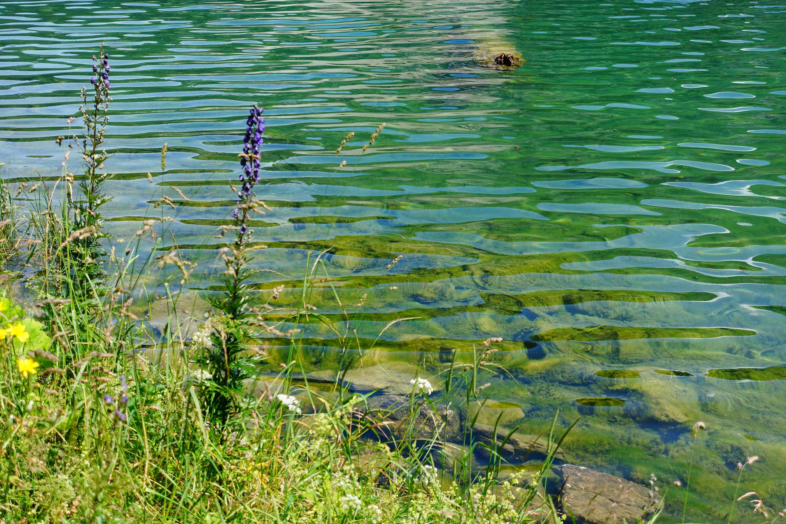 Ab hier leicht ansteigender Bergweg bis man zum letzten Stückchen Steilanstieg auf teils rutschigem Gestein kam, das auch stahlseilversichert war. Aber alle haben das prima gemeistert und die Augen wurden nochmal größer, als man hier erneut aus dem Wald stieg mit Blick auf einen kleinen See, die Lache, im Talkessel, und darüber ein paar Spitzen, die teilweise schon beeindruckende Felswände zeigten, darunter die Lachenspitze, die wir u.A. heute noch besteigen wollten.