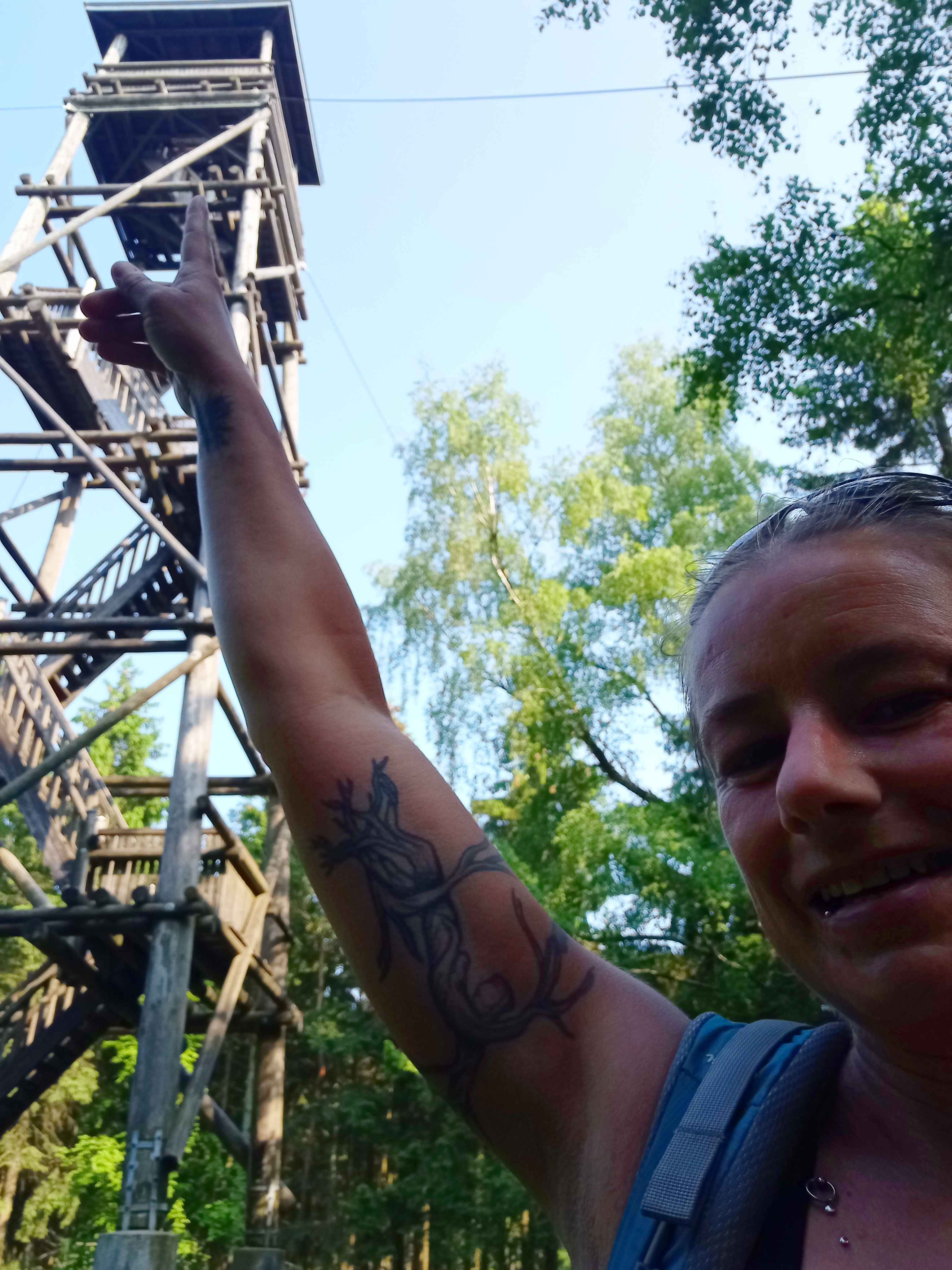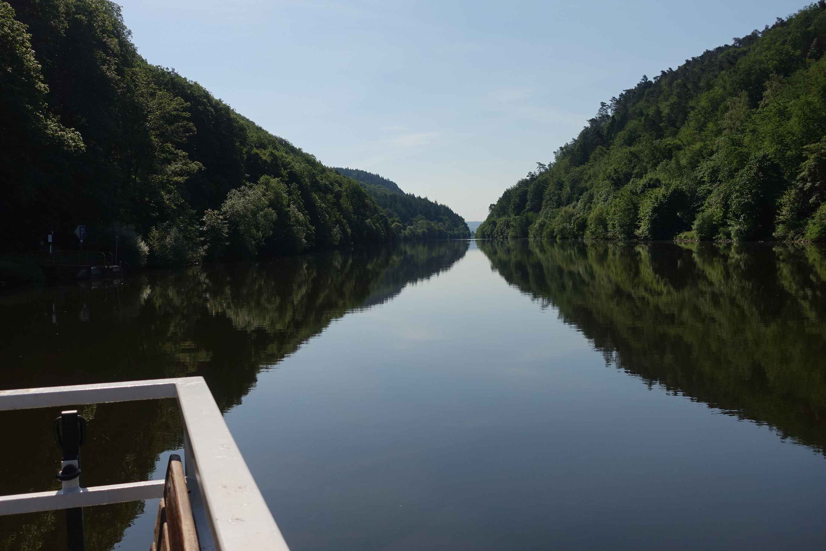 Um 6 klingelte der Wecker, übliches Szenario mit einer Tasse Kaffee und kurz vor 7 ging’s dann los gleich mal schön bergauf. Die Sonne kam, die Wärme auch und am Franzosenkopf war ich schon zum ersten Mal durchgeschwitzt, wobei die Fernsicht allerdings etwas zu wünschen übrig ließ, weil es sehr diesig war. Dann weiter zum Salzkopf und auf den tollen hölzernen Turm hinauf. Der Weg meistens im Wald auf und ab, schließlich an der Burg Rheinstein vorbei und wieder hinauf, um nach 28km und 1270hm wieder am Auto anzukommen. Hier kurze Planung für die Weiterfahrt ca. 2 Stunden ins Saarland rein in die Nähe von Mettlach an der Saar. Der Waldparkplatz, den ich fand, war zwar direkt an einer Straße, aber trotzdem idyllisch genug für einen Abend, an dem ich wohl nicht ewig auf sein würde. Im Supermarkt hatte ich mir noch Salat gekauft, den ich mir schmecken ließ, auch wenn nie viel Hunger abends.