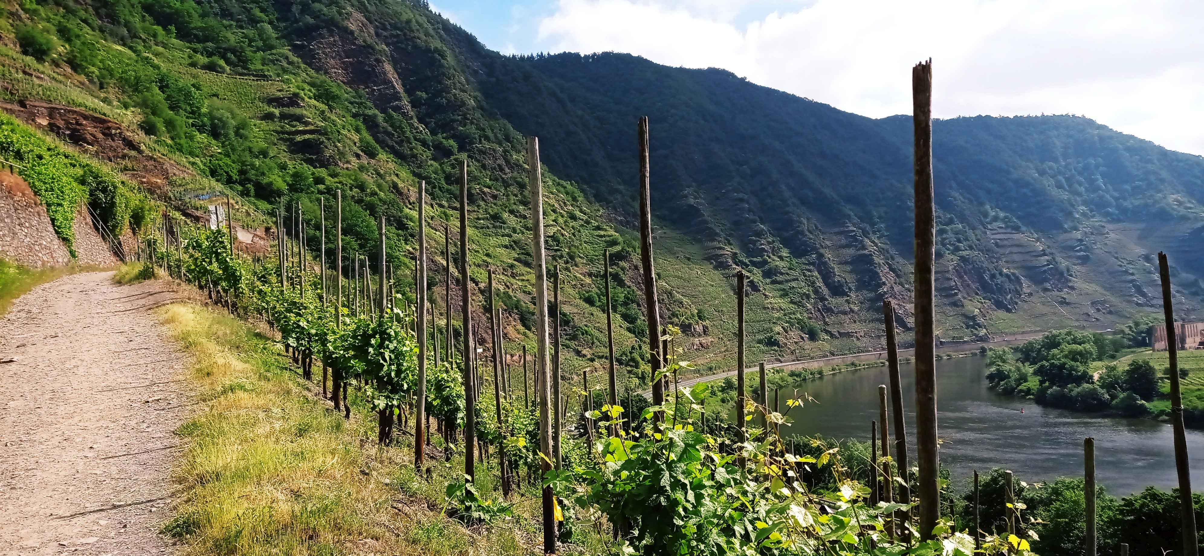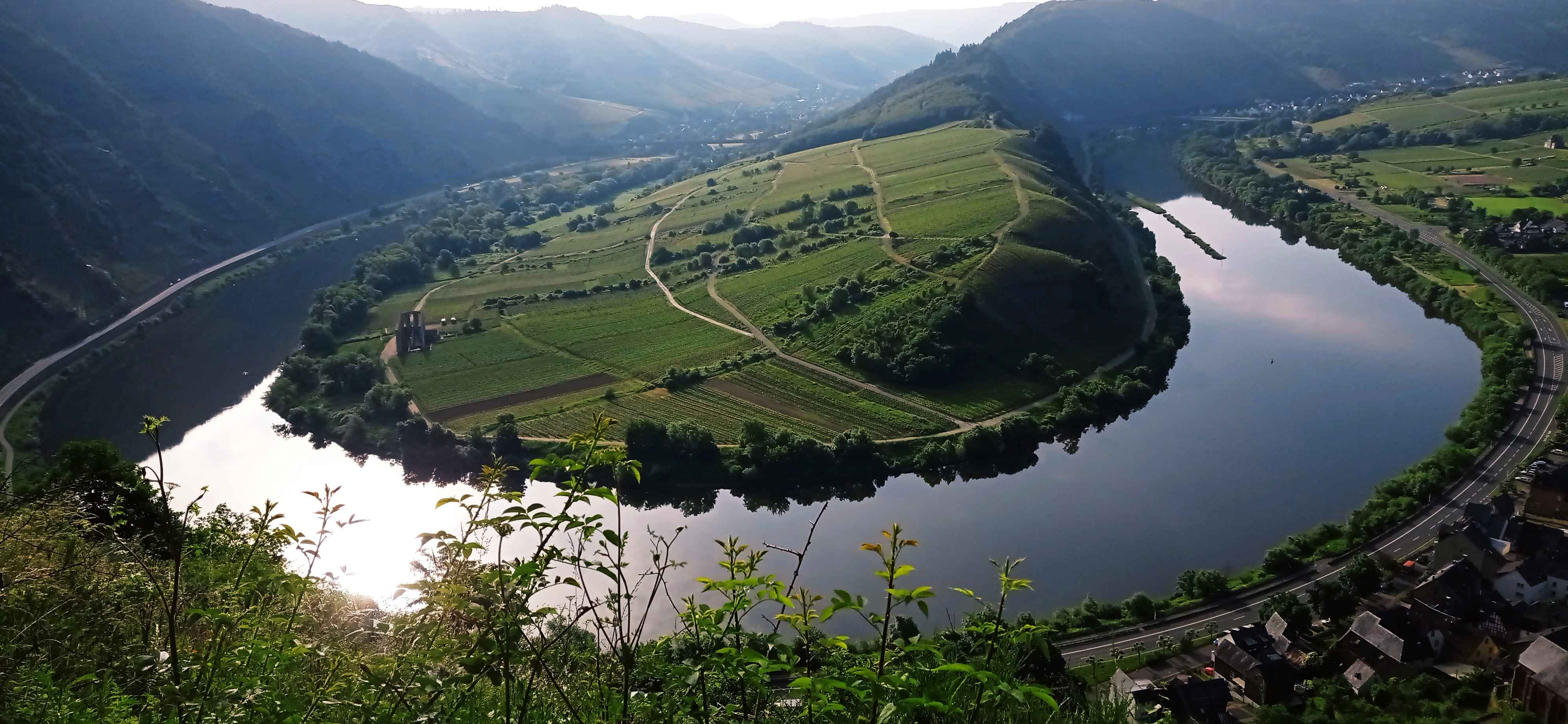 Nach dem Frühstück fuhr ich zu dem Parkplatz, von wo aus es losgehen sollte. Nur eine kleine Tour stand heute noch auf dem Programm. Es ging steil hoch zu einem Gipfelkreuz und dann einen Höhenweg über der Moselschleife entlang. Die Sonne zierte sich anfangs noch etwas, aber die Bilder waren trotzdem toll. Sehr steil war das Ganze hier. Dann wieder steil hinunter und zum Klettersteig. Naja, ein kleines Stück des Weges war seilversichert und mit einer Leiter, aber das war nichtmal das schwierigste Stück. Es ging auf einer Seite einfach immer arg bergab und die Pfade waren sehr schmal. Schwindelfreiheit ist hier definitiv von Nöten und abrutschen sollte man besser auch nicht.