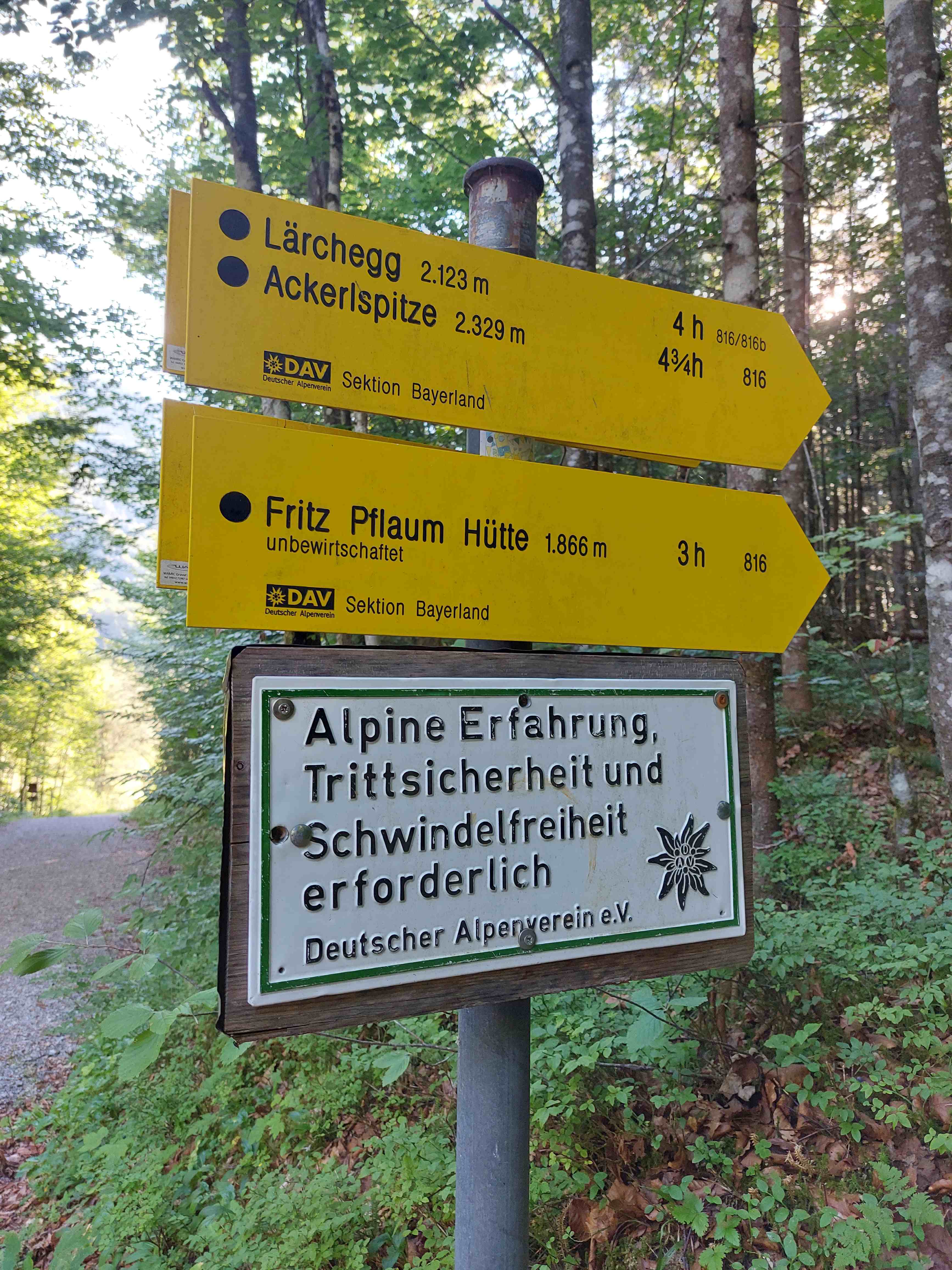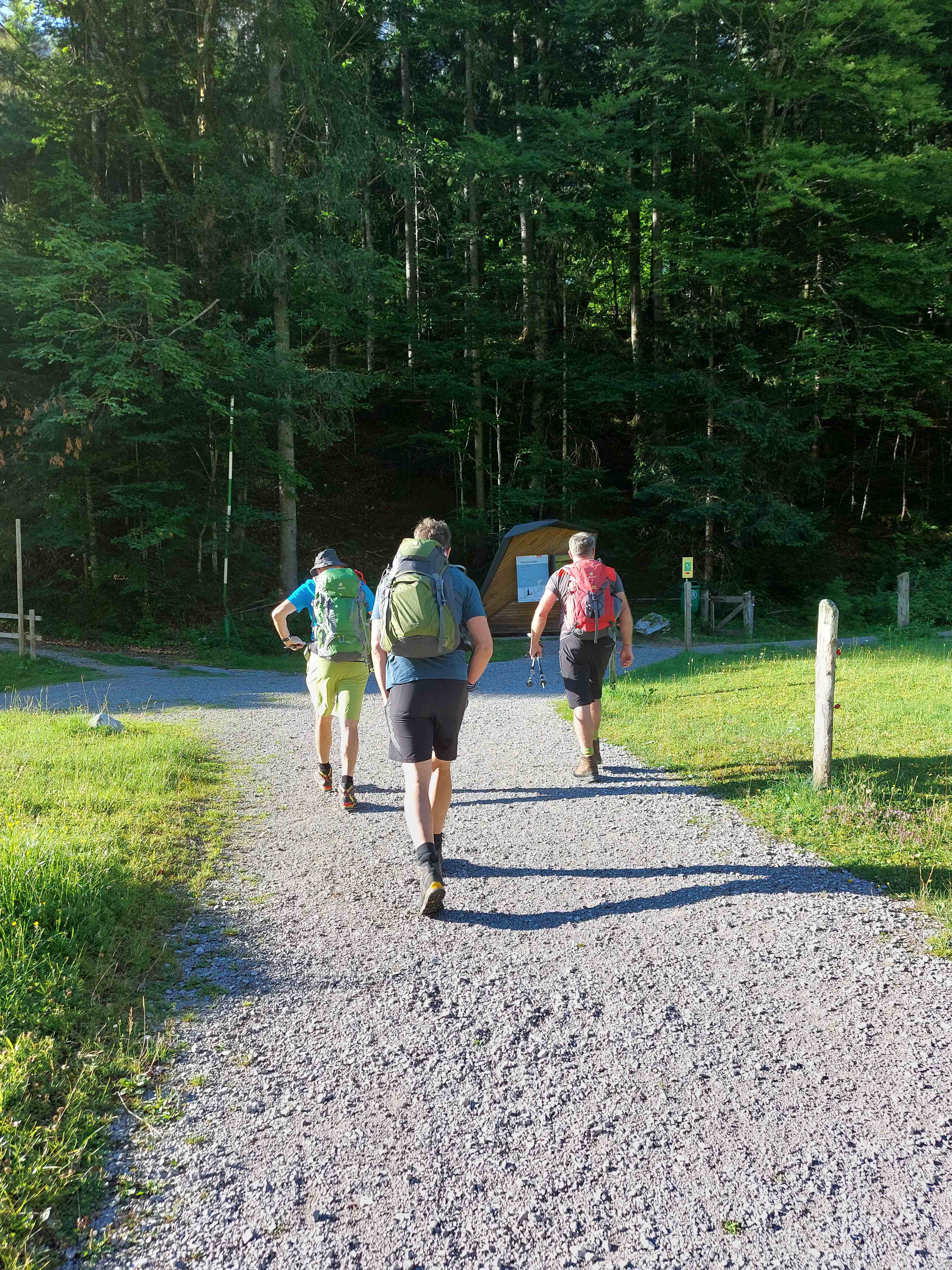 Eine etwas andere „Frühstartertour“ mit Wolfgang Weber (OG Pegnitz) fand am 17.07.2022 statt. Der Anspruch der Tour ergab sich im Vorfeld quasi aus den Teilnehmern, die sich spontan anmeldeten – inklusive Wolfgang 4 erfahrenere, konditionell stärkere Bergkletterhasen sollten am Start sein. So wurde der Plan, den Säuling zu begehen, kurzer Hand verworfen und die Tour in den Wilden Kaiser zur Lärcheck-Besteigung verlagert. Schon früh um 5 Uhr starteten wir an diesem Sommer-Sonnentag in Pegnitz, um um 7.45 Uhr an der Fischbachalm im Kaiserbachtal loszulaufen.