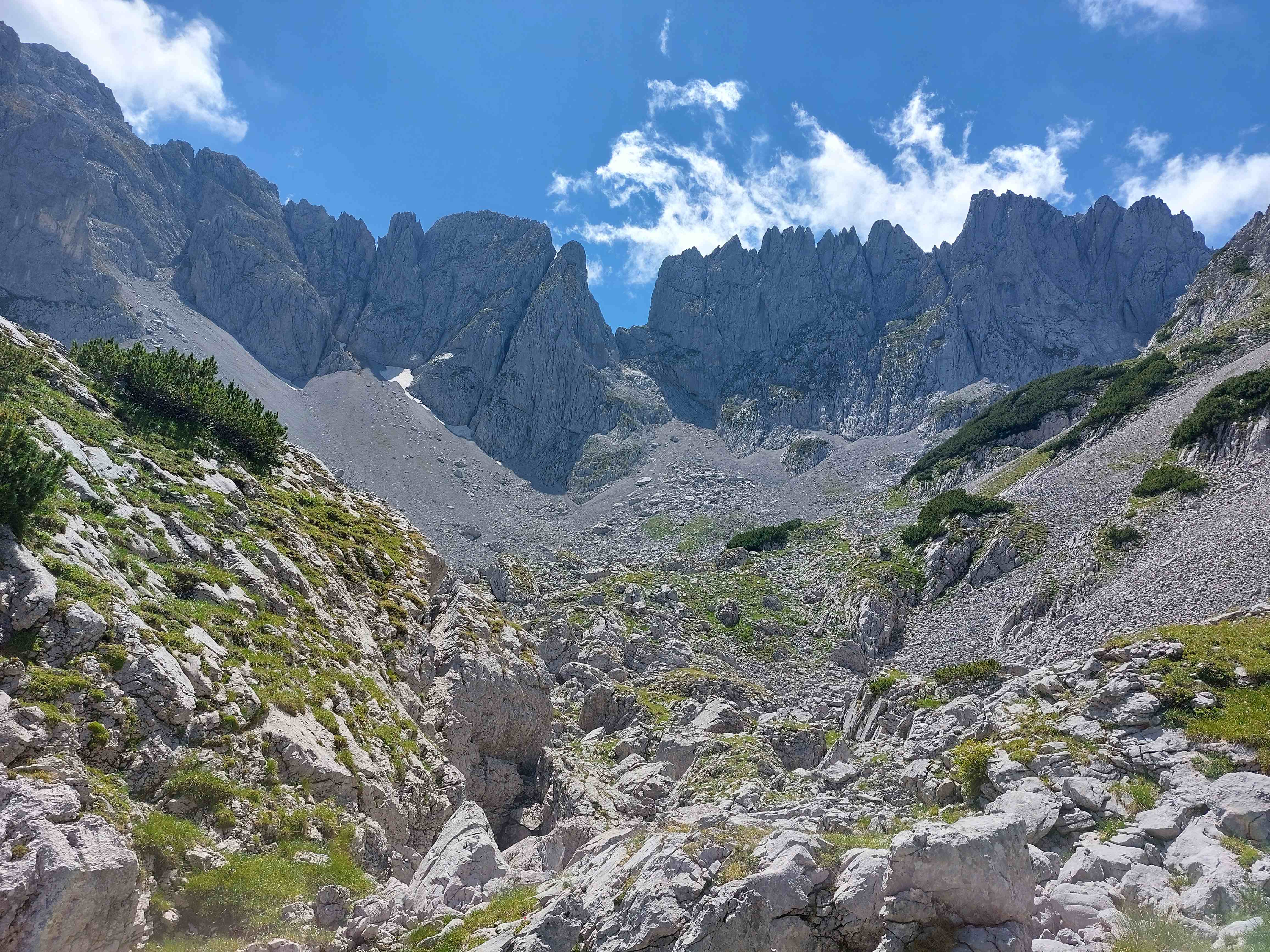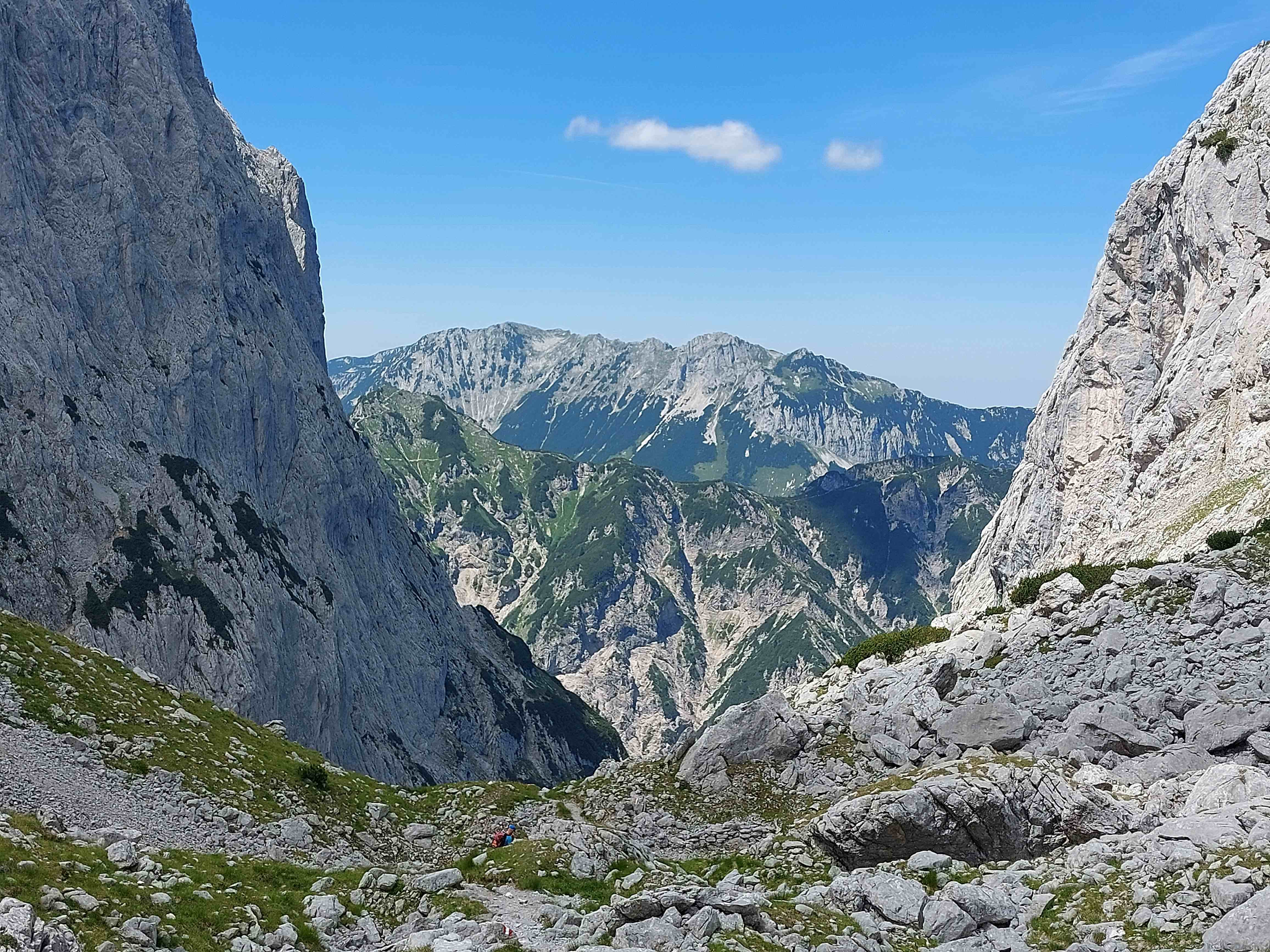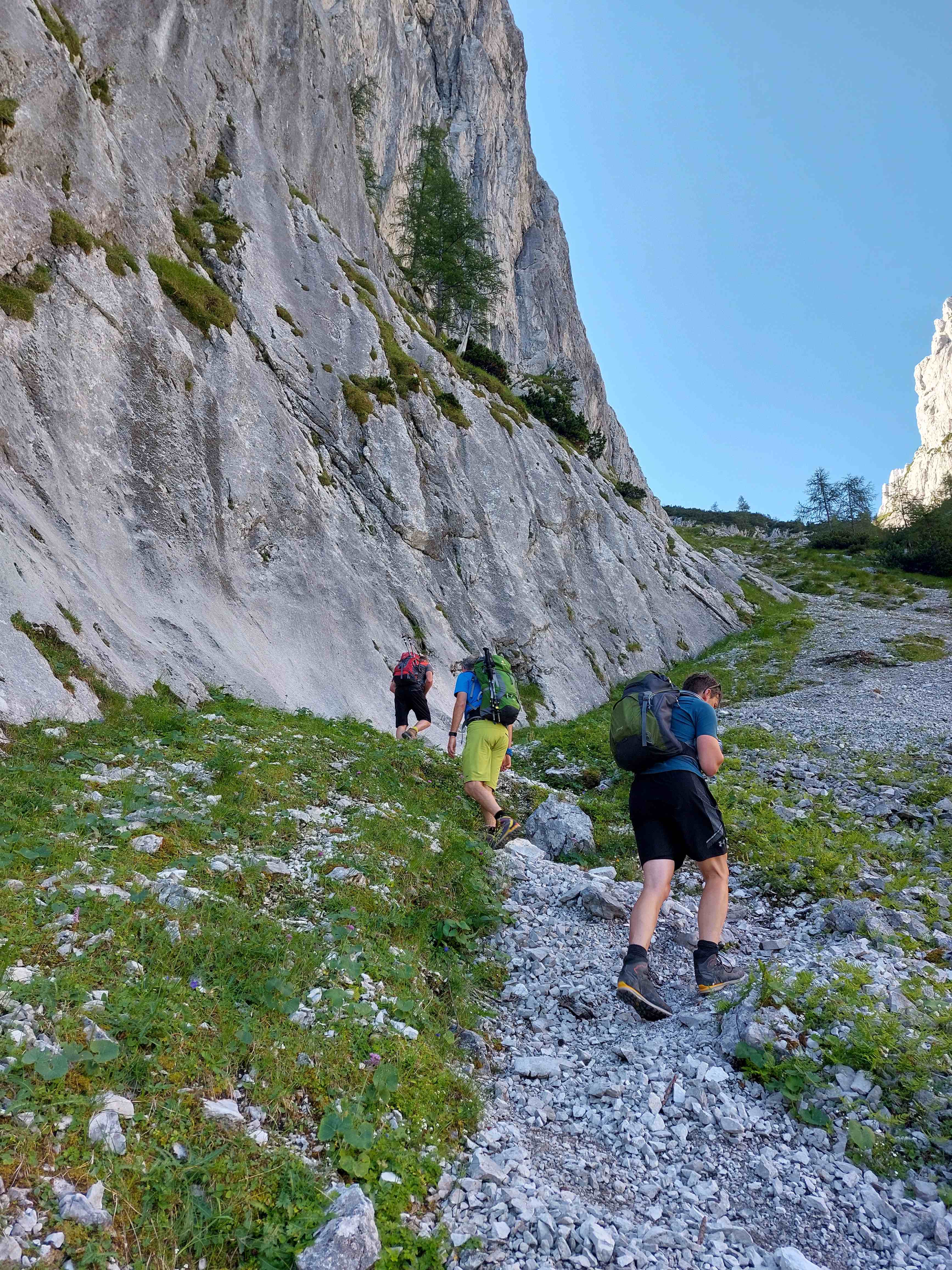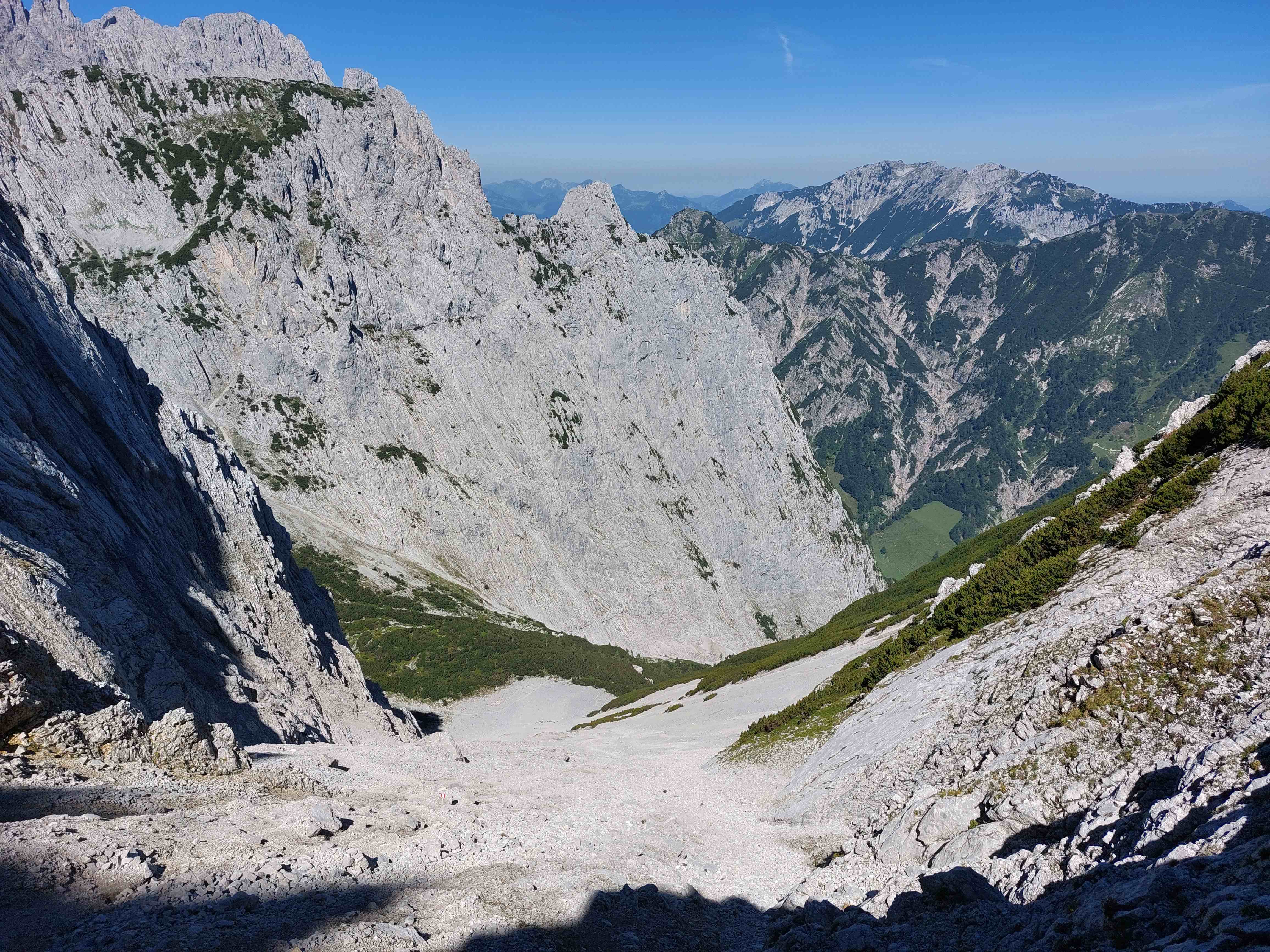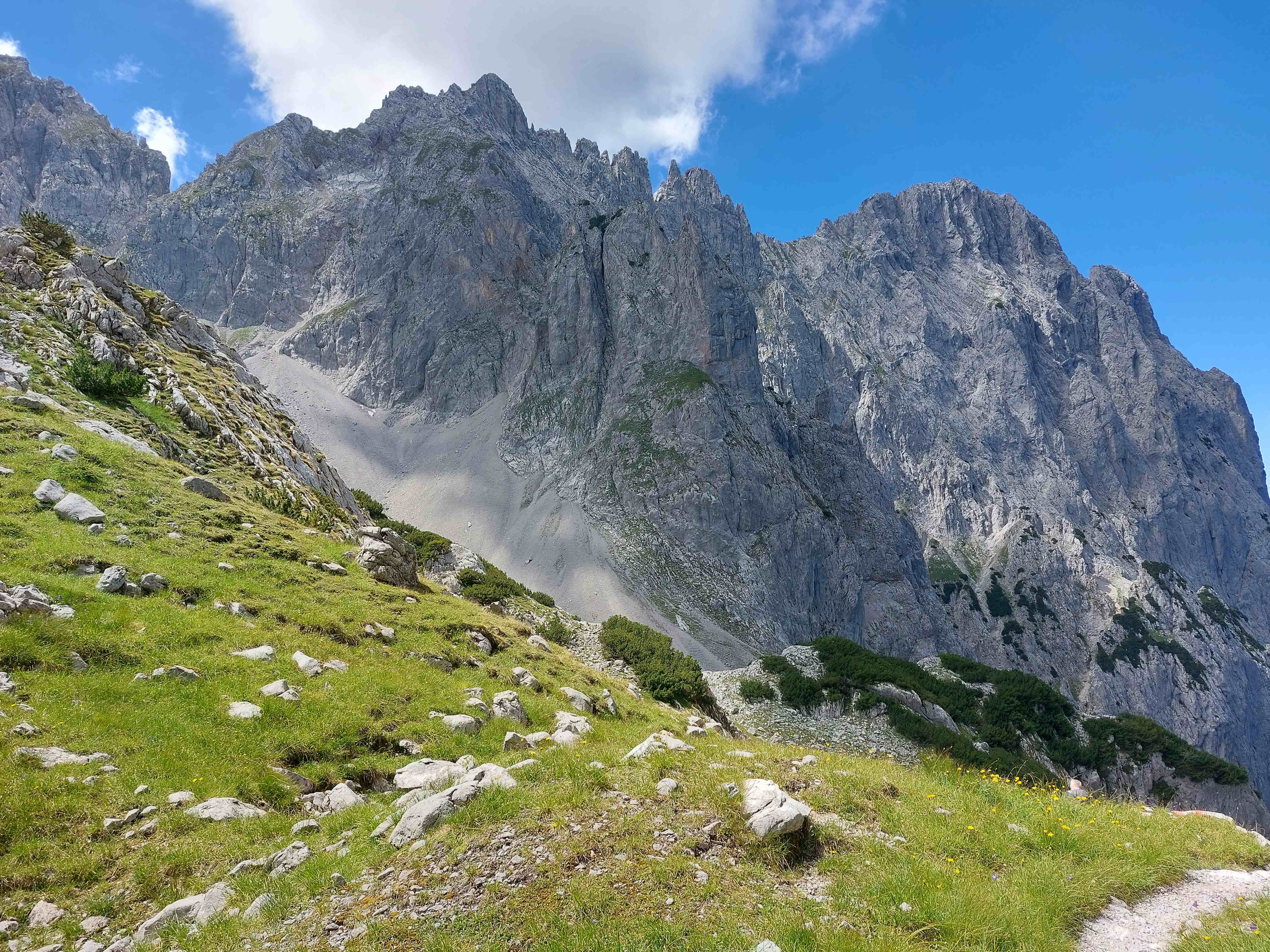Nun führte unser Weg noch um das Mitterkaisermassiv herum, nochmal ein Stückchen Aufstieg, bevor wir endgültig in Richtung Tal weitergingen und nach netto ca. 7h und 1400hm zurück am Auto waren.