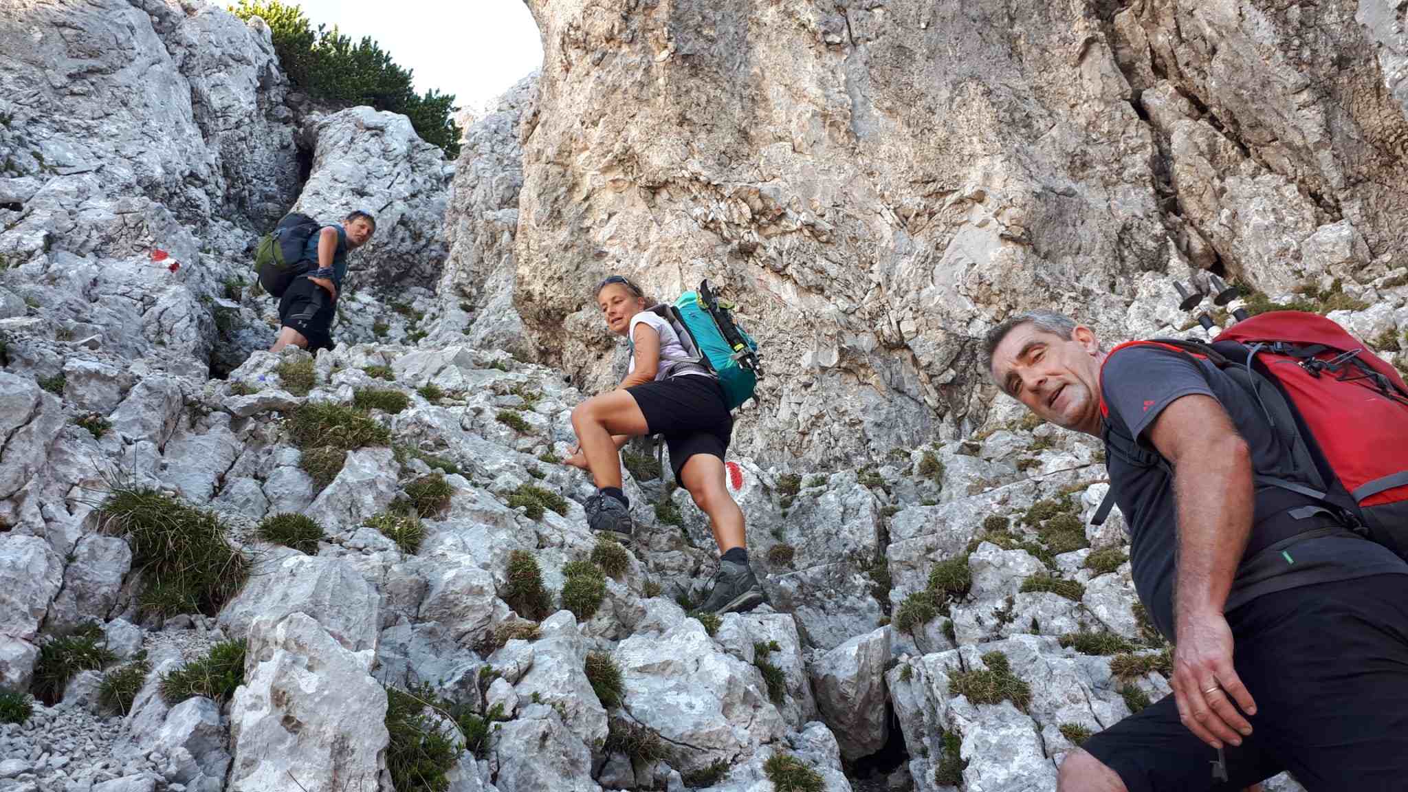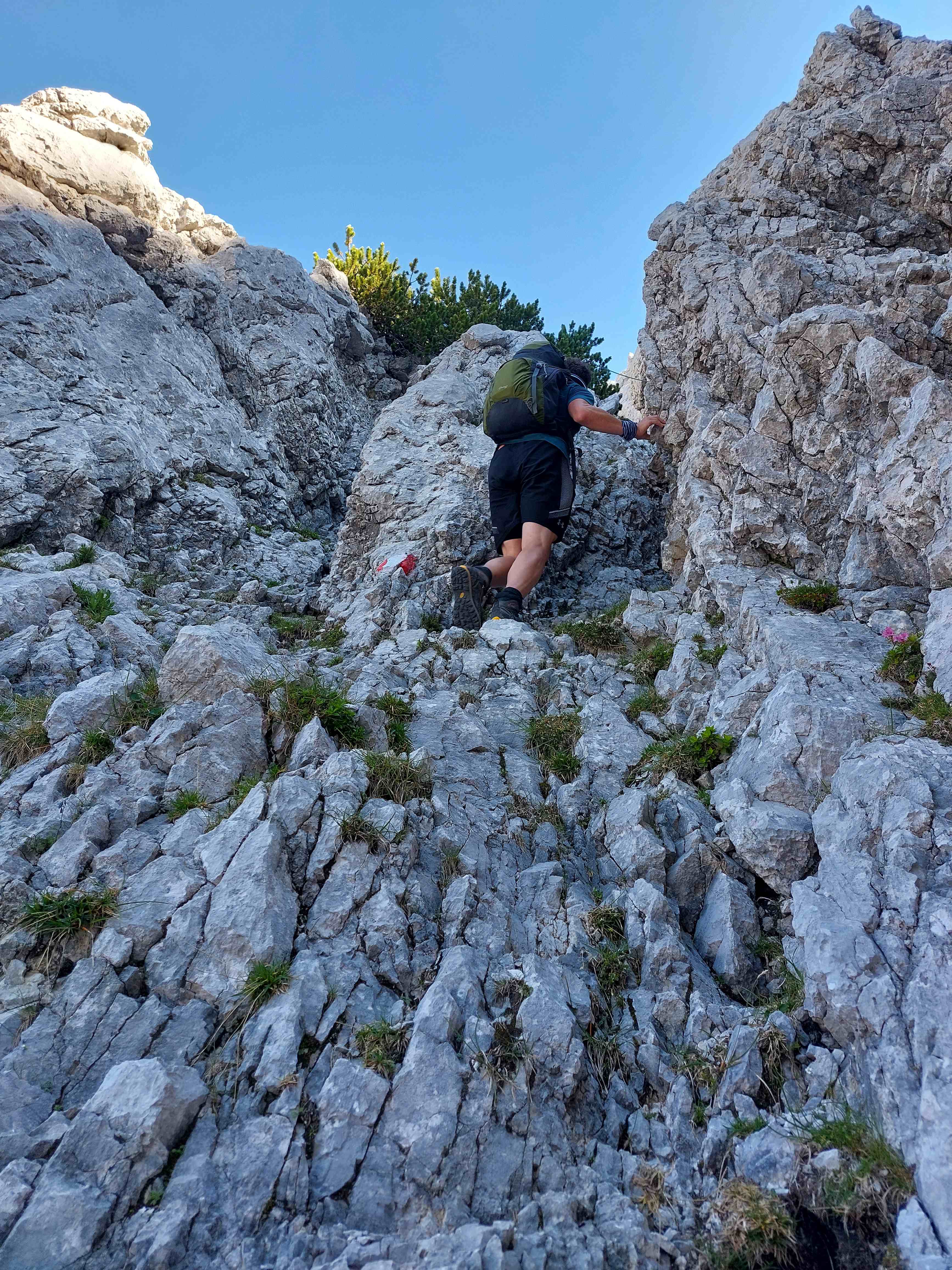 Die Kletterei nach unten verlief gut, und das hohe Schotterfeld wurde auch irgendwie überwunden.