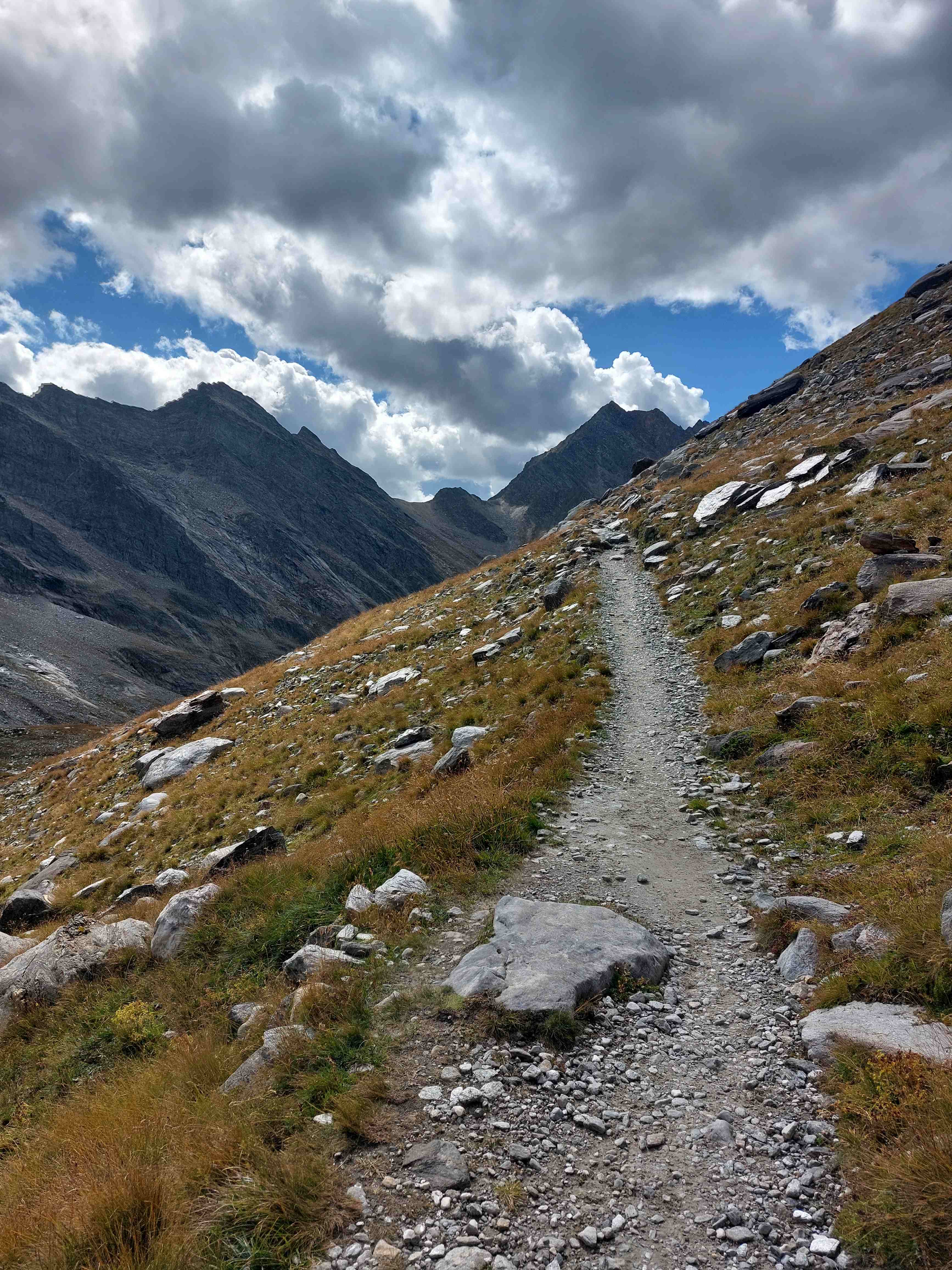 5 Männer und ich trafen sich früh um 7 Uhr in Bayreuth, um zusammen nach Vent im Ötztal zu fahren, wo wir gegen halb 1 Uhr ankamen, die Bergschuhe anzogen, die Rucksäcke aufsetzten und los ging’s hoch zur Breslauer Hütte auf 2844m. Vent ist für mich mittlerweile schon fast ein bißchen wie heimkommen, war ich doch schon gut 10x jetzt hier. Dort bezogen wir unsere Zimmer und stiegen dann ohne Gepäck vor dem Abendessen noch hoch zum Urkundkolm. Das Wetter sah nun ziemlich unbeständig aus und nachts sollte es stark regnen und stürmen.