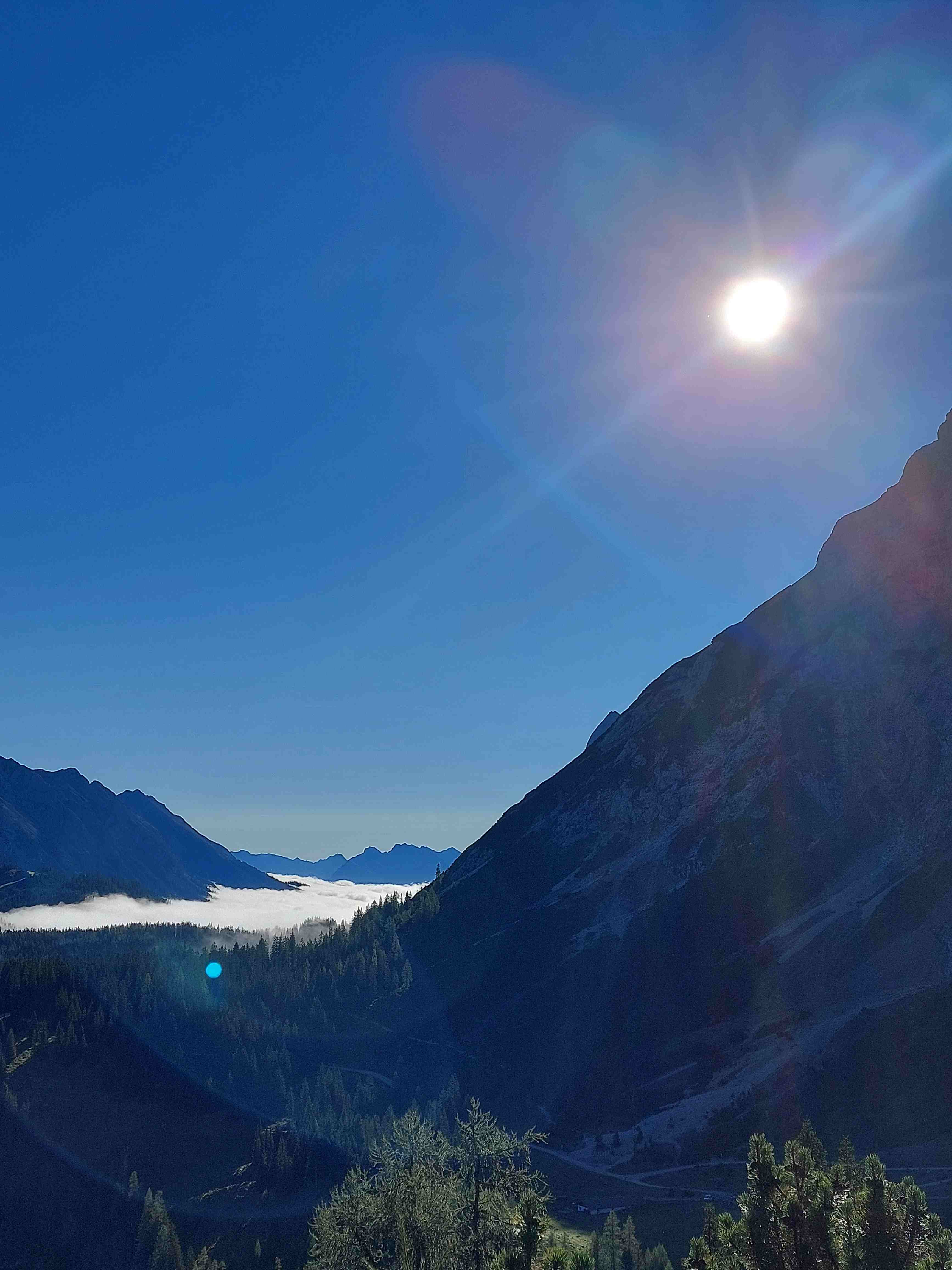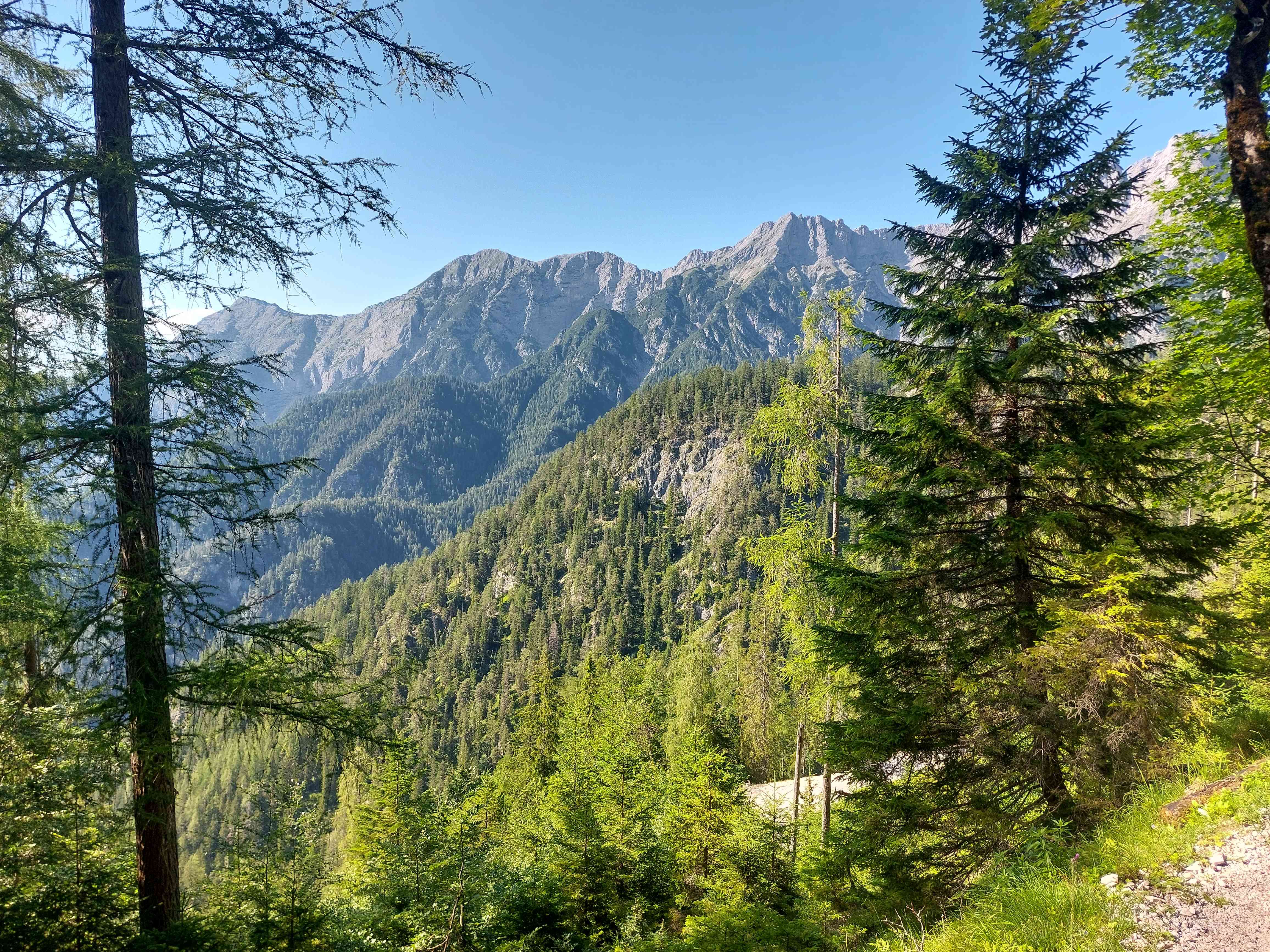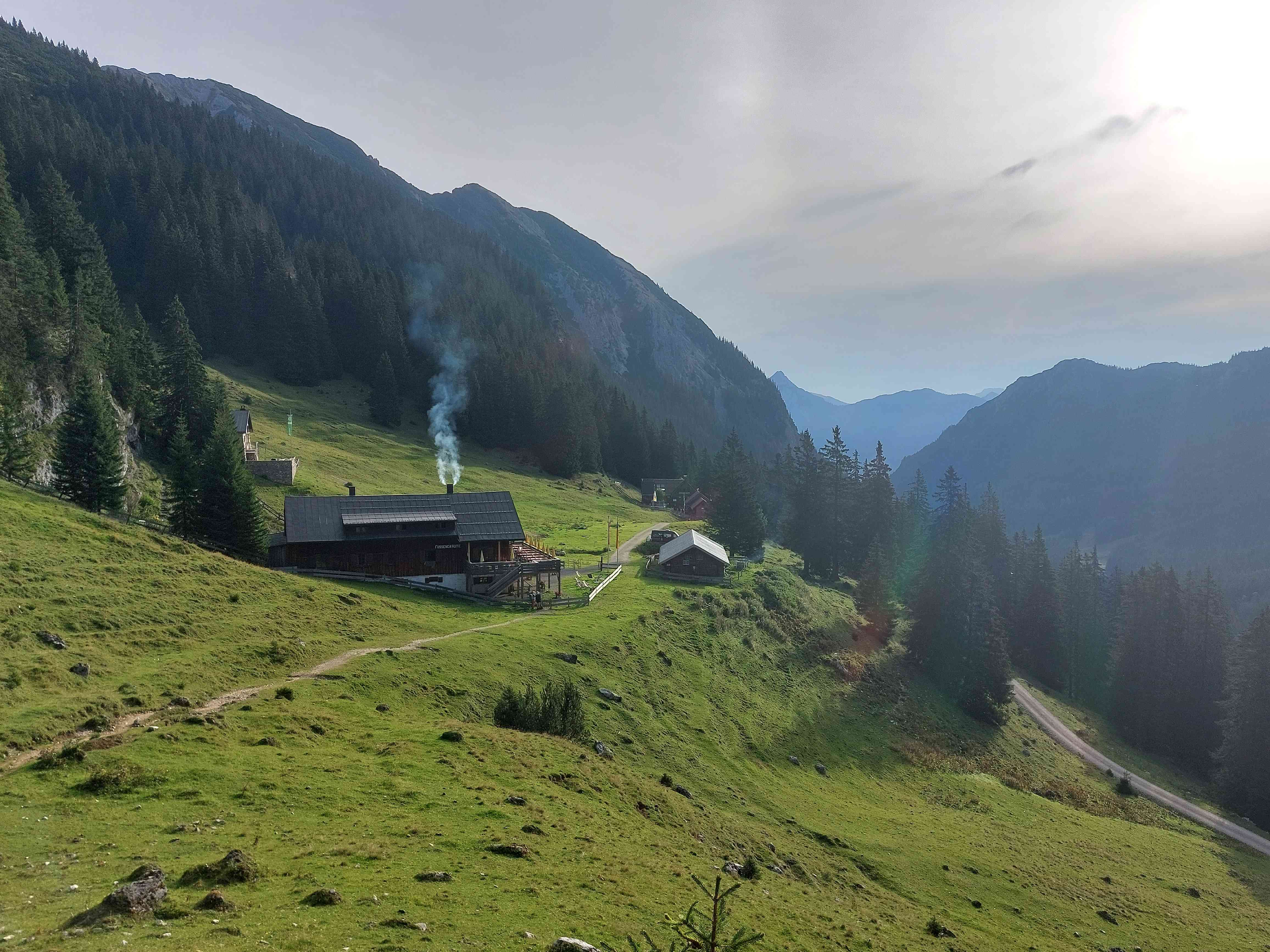 Heute Frühstück um 7 Uhr und wieder draußen in der Sonne. Es war noch wärmer als am Tag zuvor um diese Zeit und auch im weiteren Verlauf des Tages. Wäre heute noch der Rotspitz und der Dalfazer Roßkopf möglich gewesen, so entschieden wir uns dann doch für die entspanntere Runde rüber zur Dalfazer Alm und von dort aus nach unten zum Parkplatz zurück. Auf der Sonnenterrasse der Dalfazer Alm genossen wir nochmal die Berge um uns rum sowie den Achensee von oben, bevor wir abstiegen und mittags beim Auto zurück waren.