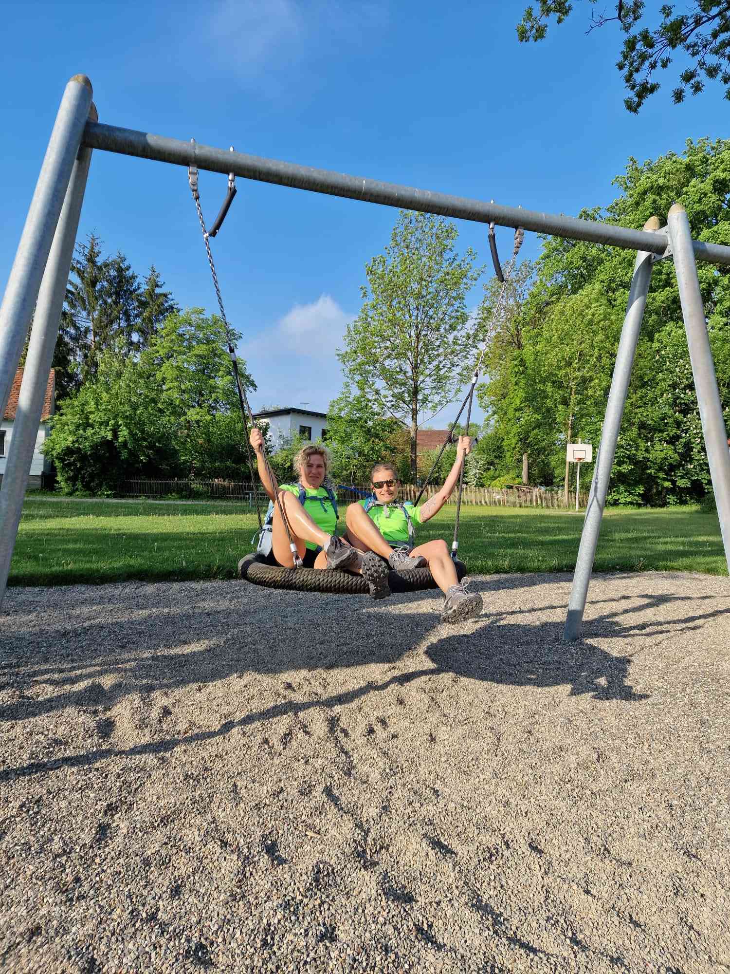 Im Ziel waren wir nach 8h 54min diesmal. 43,19km und 1063hm hinter uns. Langsamer als beim letzten Mal, aber das war wohl auch den Wegen geschuldet. Jedenfalls waren wir uns einig, daß man so keine Tour für eine solche Veranstaltung planen kann. Ich laufe viel, aber mir haben noch nie so die Füße gebrannt. Wir haben so tolle Wanderwege hier im Frankenwald, aber wir waren hauptsächlich auf Teer und grobem Schotter unterwegs. Werde definitiv im nächsten Jahr diese Tour nicht mehr einfach blind mitgehen, sondern mir vorher genauestens die Strecke ansehen. Schade eigentlich! Eine hatte uns überholt, aber die war mächtig schnell unterwegs und hatte sicher auch keine Pause gemacht. Die Stimmung war natürlich trotzdem gut – wir haben es wieder geschafft!! Lissy und ich wir gönnten uns im Anschluß noch ein Kaltgetränk am Trebgaster Badesee bevor es nach Hause ging.