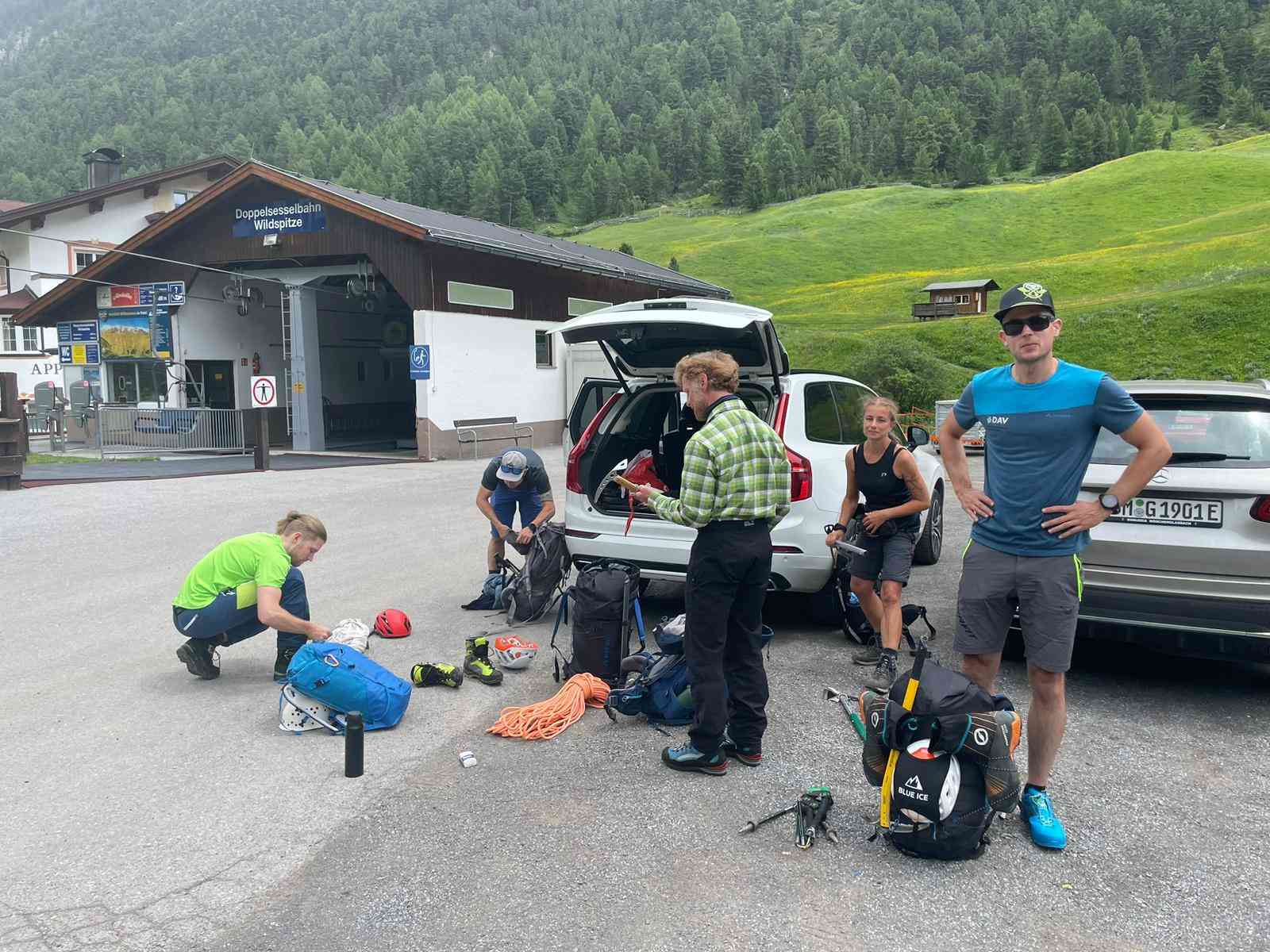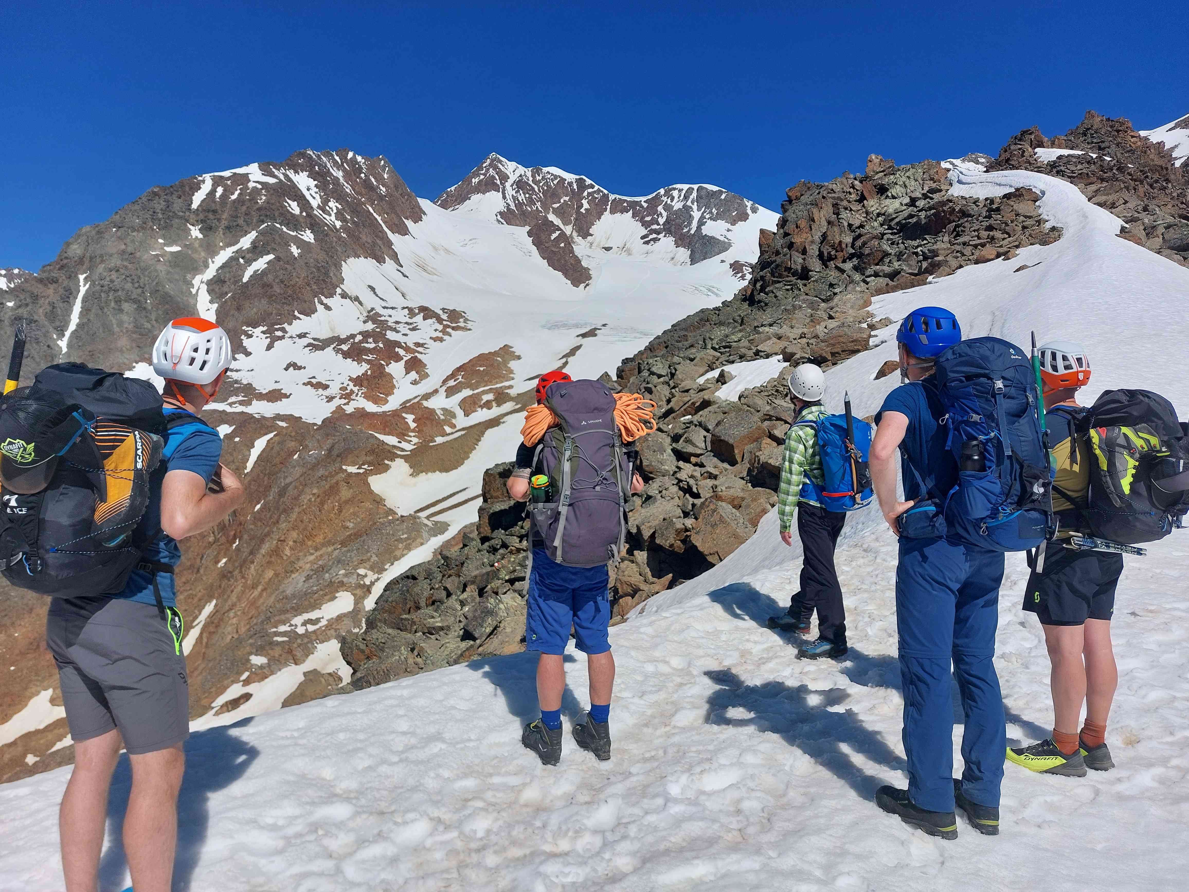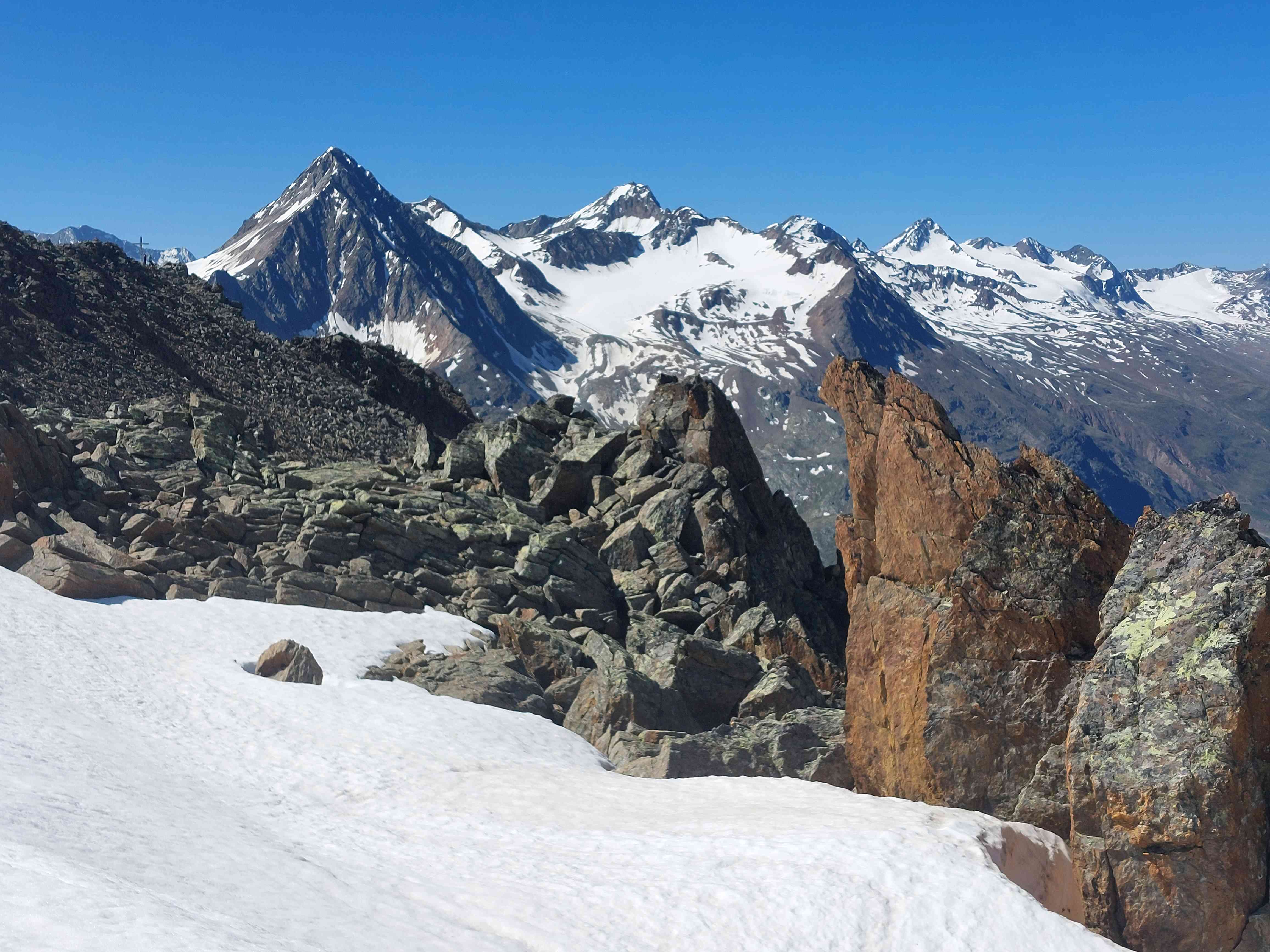 Für Mitte September 2022 meldete ich mich für „Hochtouren ab der Breslauer Hütte“ beim DAV an. U.a. sollte die Wildspitze bestiegen werden (der 2. höchste Berg in Österreich), eine Tour, die ich bereits 2011 versucht hatte, die wir allerdings damals abbrechen mußten aufgrund Schneesturm auf dem Gletscher. Wir kamen damals bis zum Mitterkarjoch. Da die Tour aufgrund Wetterlage im September 2022 nicht mehr machbar gewesen war, wurde sie auf Juni 2023 verschoben und konnte hier dann ohne Probleme durchgeführt werden. Ausrüstung: Bergklamotten inklusive guter Wärmeschichten, Gletscherequipment, Kletterausrüstung und natürlich eine Hand voll Kondition, Trittsicherheit und Schwindelfreiheit im Gepäck.
