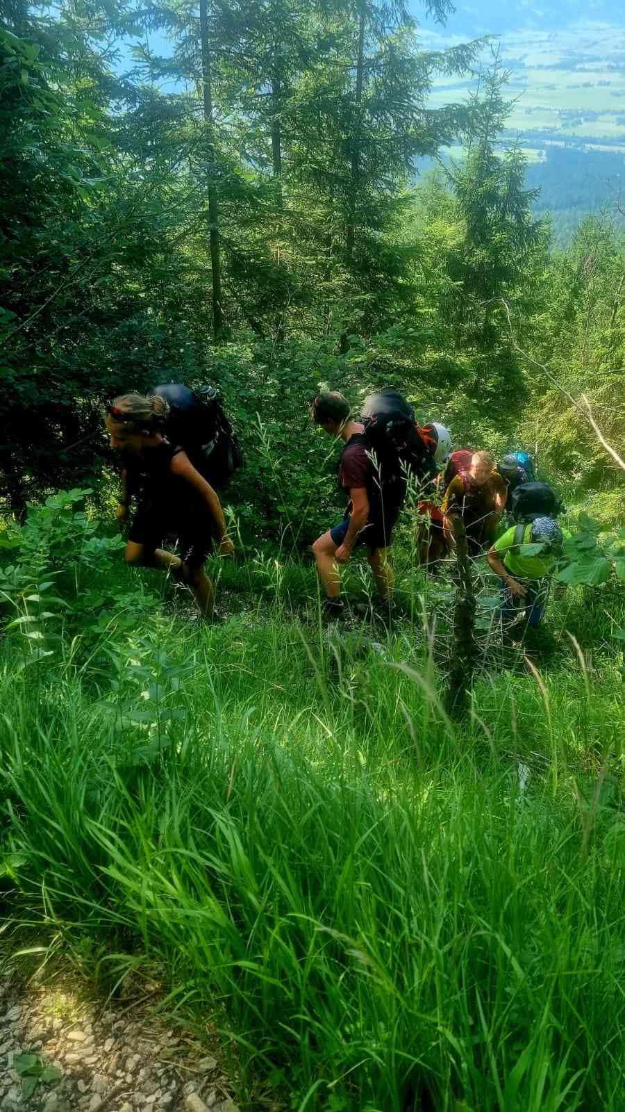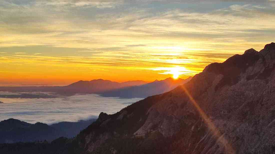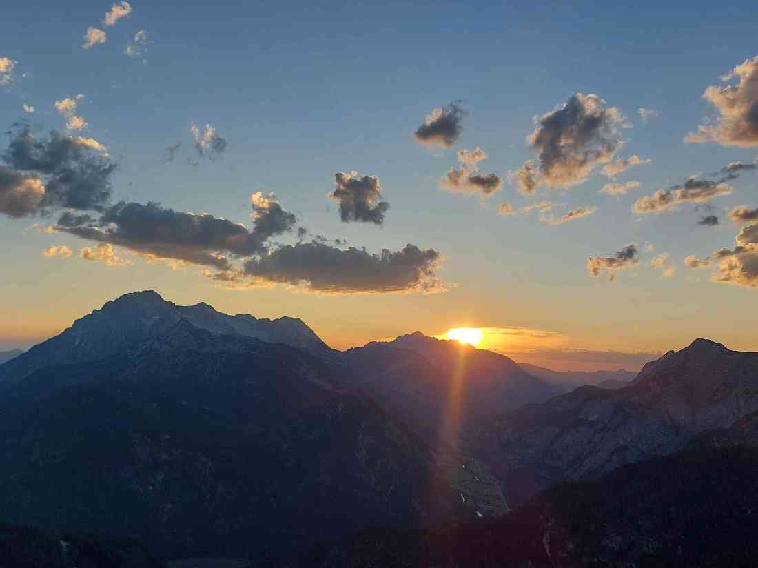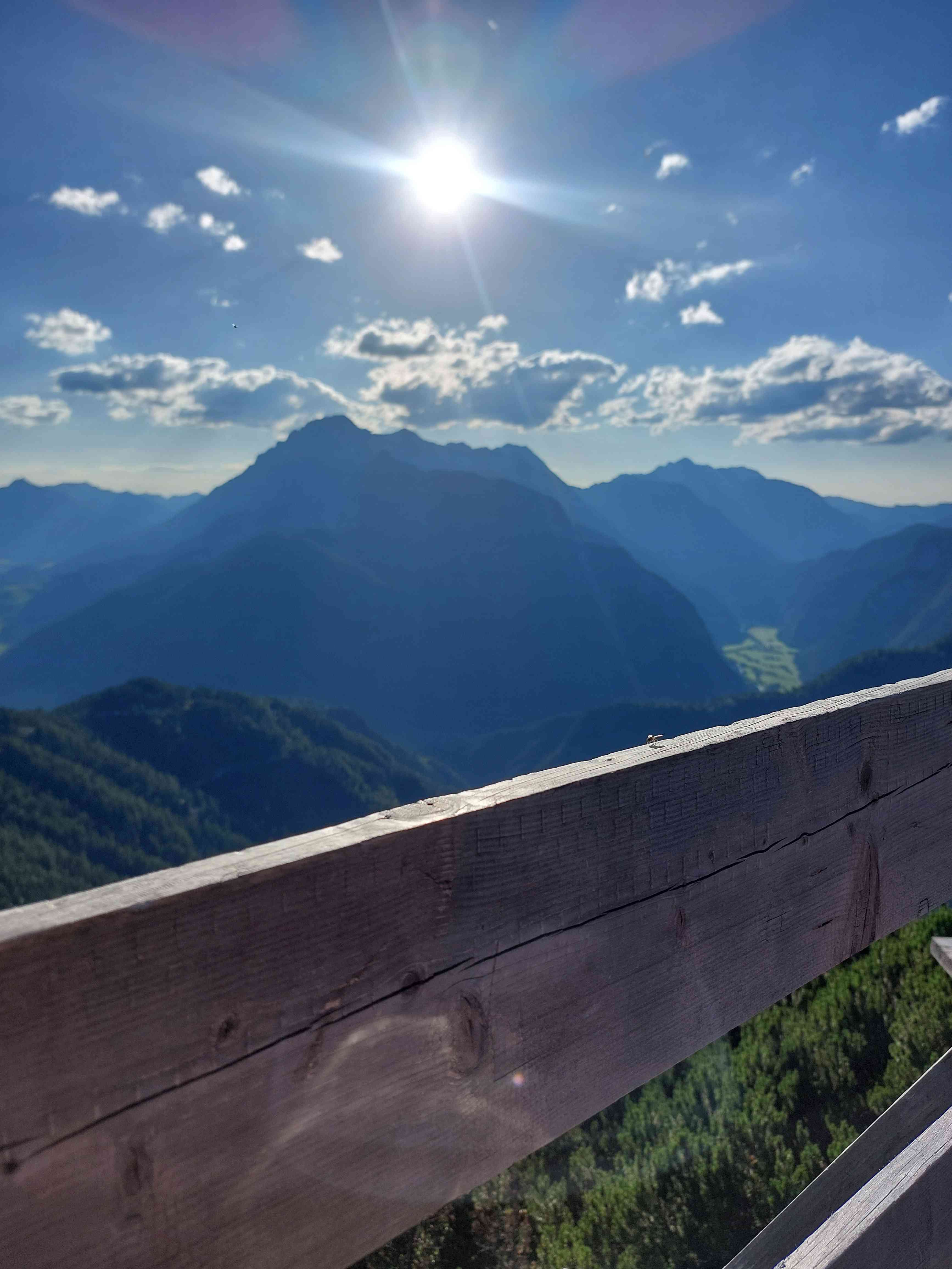 Entspannt ging es nach Aufenthalt am Gipfel wieder nach unten zur Hütte, wir bezogen unser 12er Lager, das wir für uns allein haben sollten, machten uns frisch und hockten dann gemütlich beim leckeren Essen und bei tollen Ausblicken ins Inntal zusammen. Der „Zustieg“ zum Lager erfolgte bei einigen von uns sehr frühzeitig. Der lange Tag hatte wohl gewirkt und die warmen Temperaturen waren auch nicht zu unterschätzen.