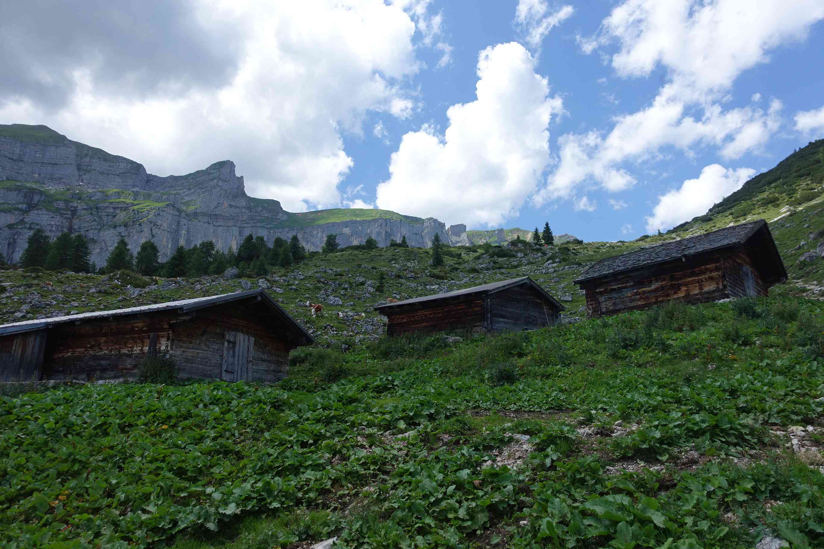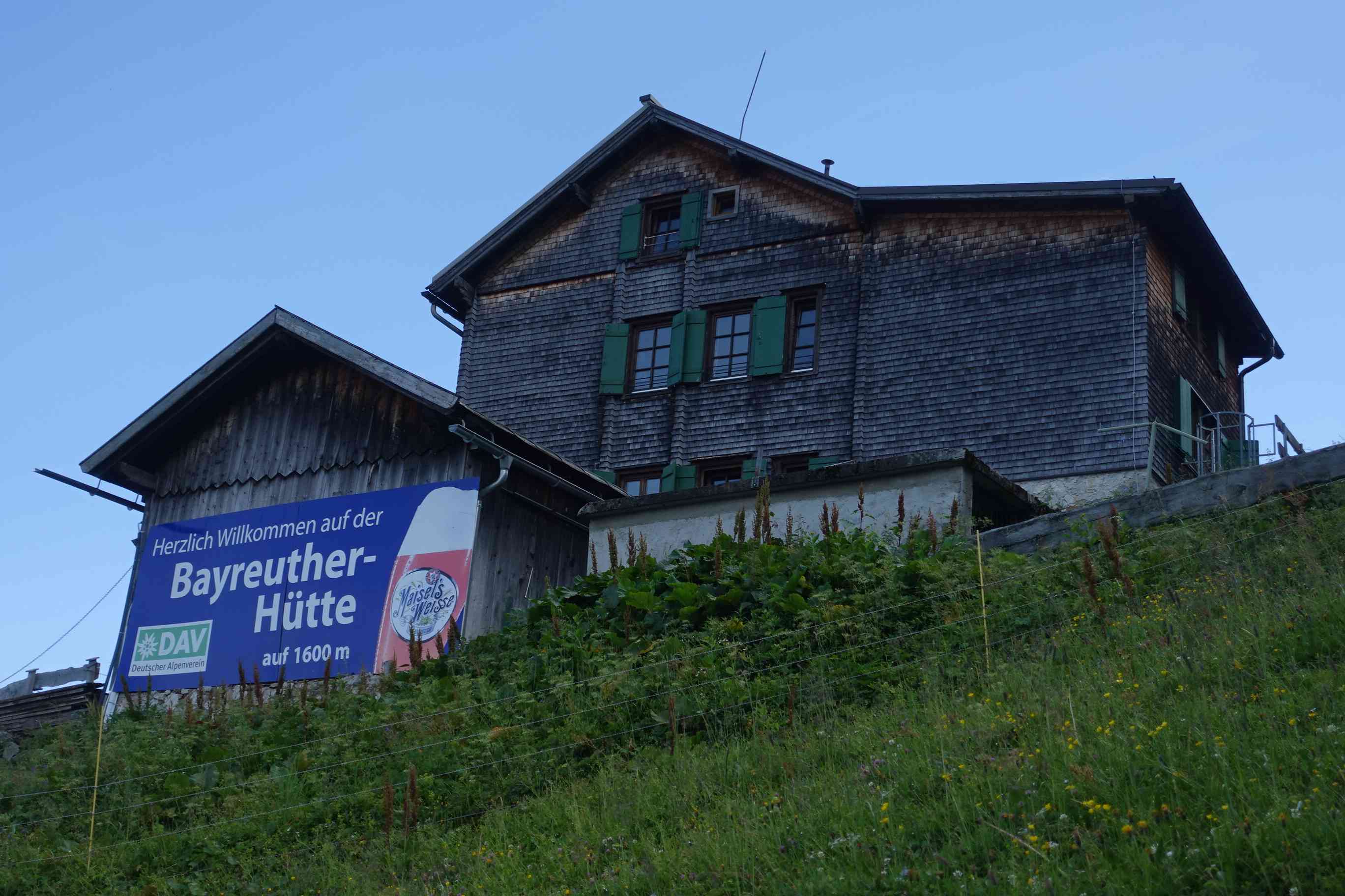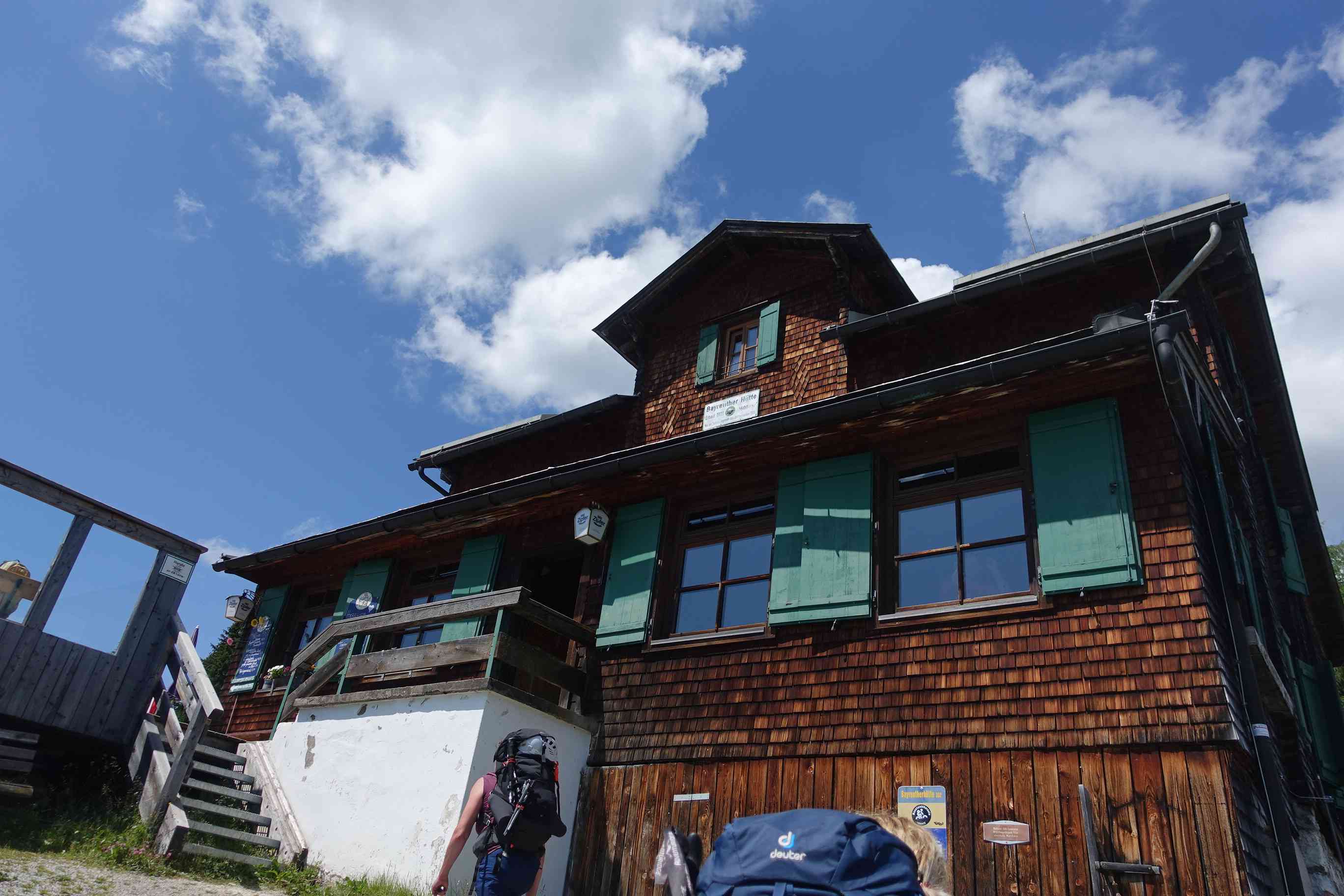 Weiter ging es über die Sebenalpe zum Brentenjoch hoch auf 2000m und dann von dort ein Abstecher zum Roßberg, der etwas tiefer liegt. Hier waren paar Kletterstellen geboten und so waren wir nur zu dritt auf dem Gipfel, von dem es den selben Weg wieder zurück ging, bevor wir noch gut Pause machten und die Aussicht genossen, bevor es zur Bad Kissinger Hütte ging. Unsere Lagerplätze waren noch nicht bestimmt und so saßen wir erstmal noch beim Erfrischungsgetränk in der Sonne auf der Terrasse. Wir waren hier sehr nett und lustig von einem Unterfranken begrüßt worden, der uns später noch den Abend recht lang werden lassen sollte. Einchecken, frisch machen, Lager beziehen und Abendessen – Standardprogramm eben. Die Hütte war voll und so teilten wir unseren Tisch mit 3 lockeren Mädels, es wurde gequatscht und wieder Schnauz gespielt wie auch am Abend vorher schon. Es wurde auch einiges an Bier und Wein vernichtet, später Schnäpse und der aufgeschlossene Wirt setzte sich noch zu uns. Die Hüttenruhe um 22 Uhr für die anderen Gäste wurde eingehalten, aber bei uns dauerte es diesmal etwas länger bis wir schlafengingen.
