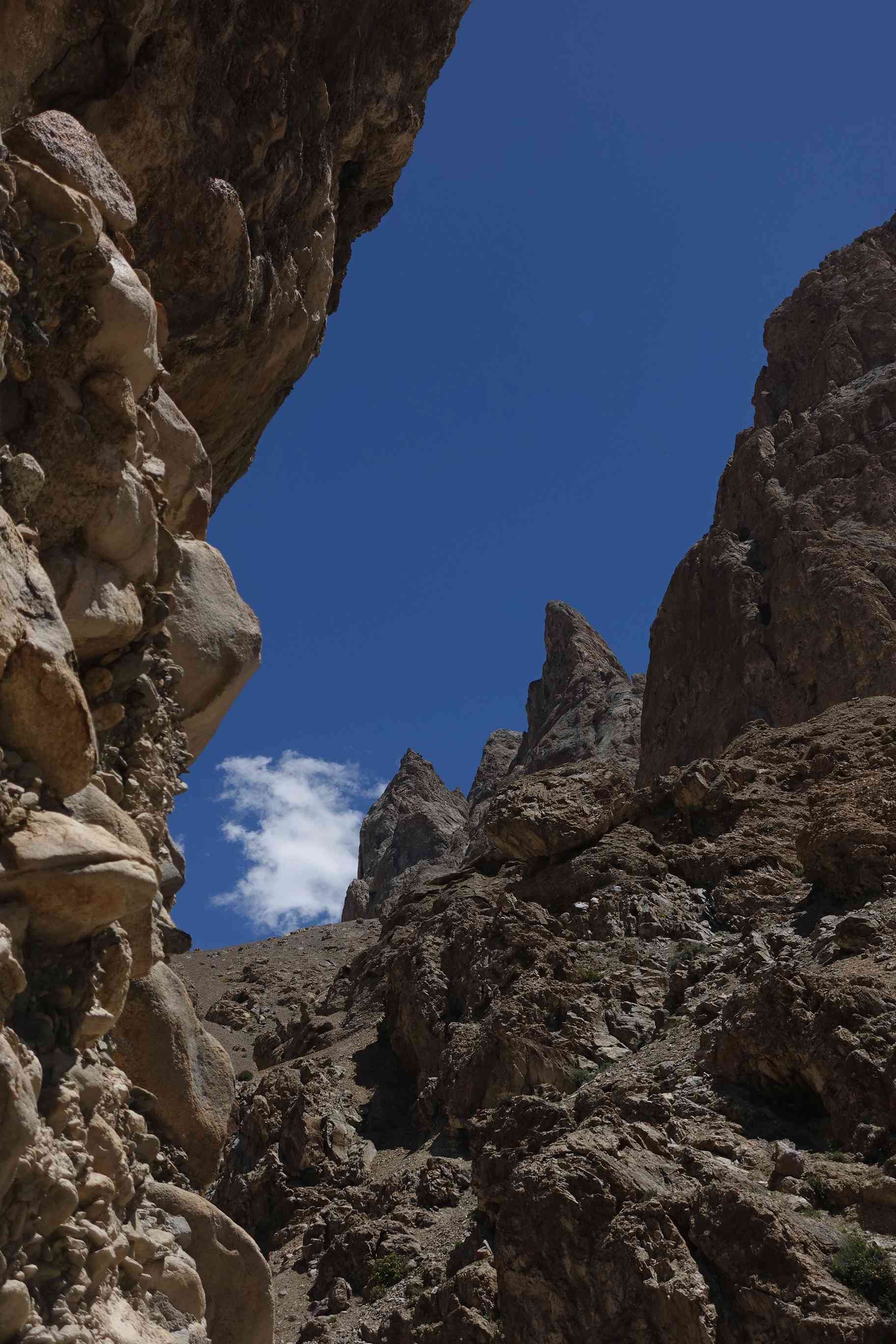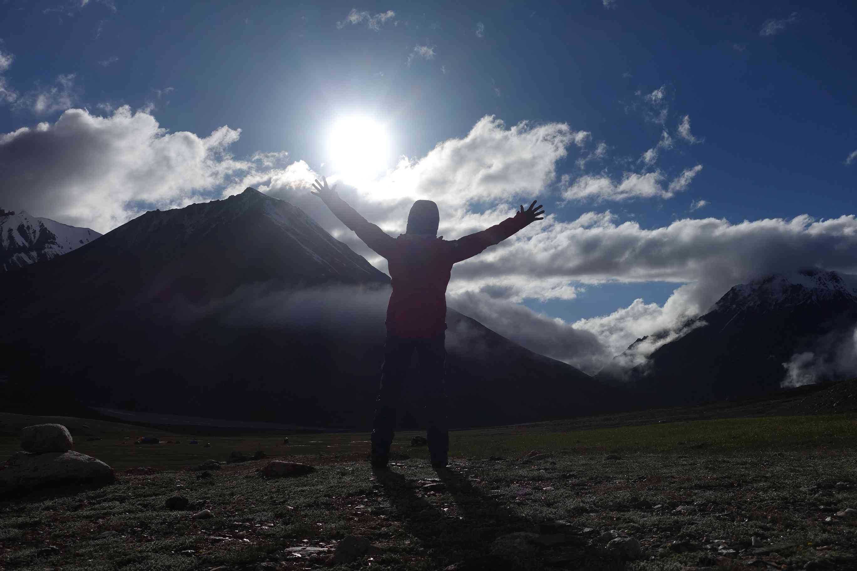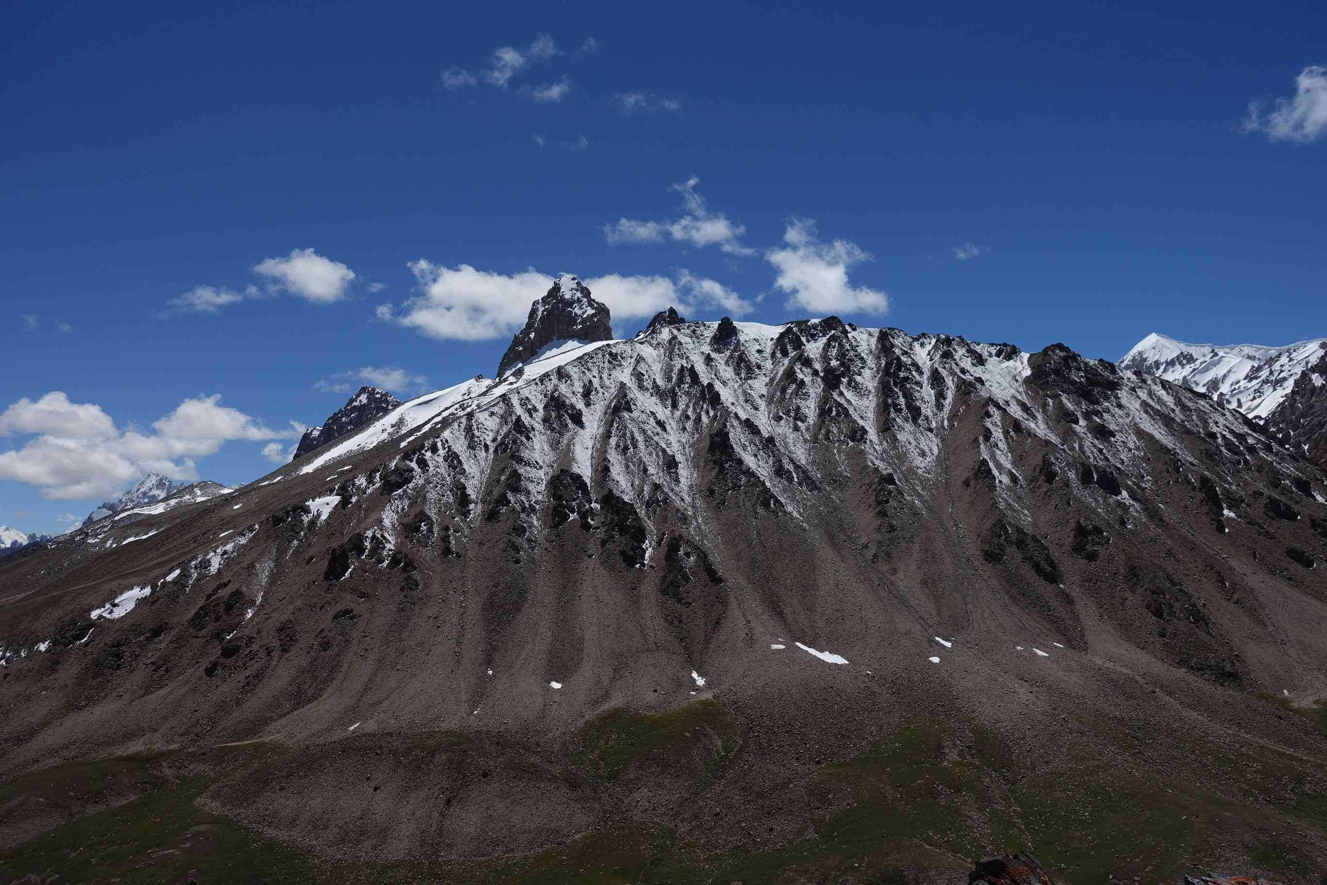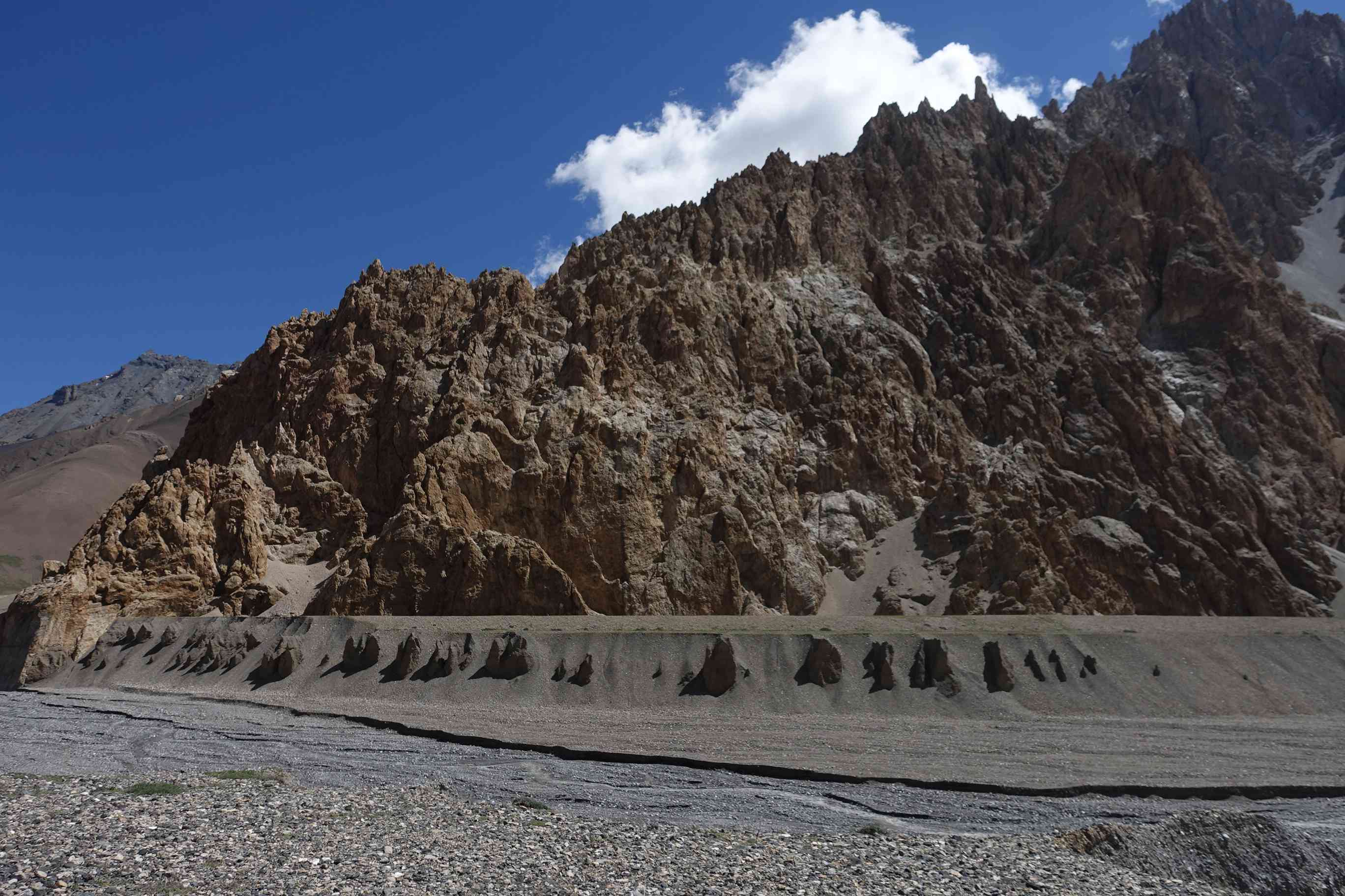 Gleich früh wurde es wieder sonnig und heiß. Heute stand eine lange Tour bevor – knapp 14km und über 1000hm hoch, sowie gut 700 wieder runter sollten es werden. Unser nächstes Camp auf 3900m Höhe. Viele waren etwas platt, aber mir ging es besser, je höher wir stiegen. Tolle Landschaft, tolles Gestein und der erste Blick zum Minglik Sar, unserem angedachten 6000er. Nach dem Zelte aufbauen wurde es etwas dunkel am Himmel, aber das verzog sich dann auch wieder. Ich halte mich ab heute abends an kohlehydratefreies Essen, was mir für den Rest der Tour wirklich gut tun sollte. Um 8.30 Uhr gingen wir schlafen und nachts gab es starken Regen und Wind, was es ziemlich laut und unruhig machte.