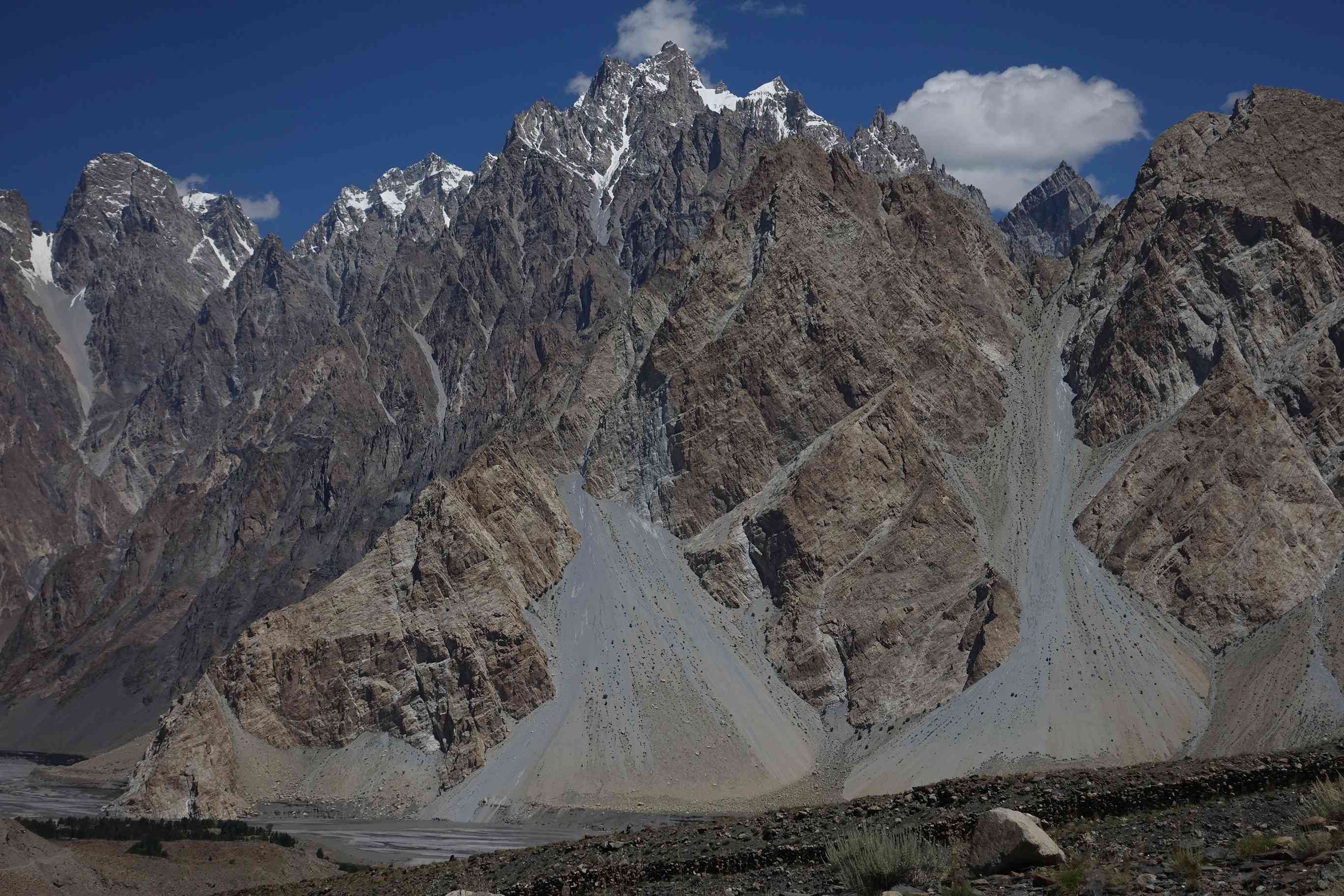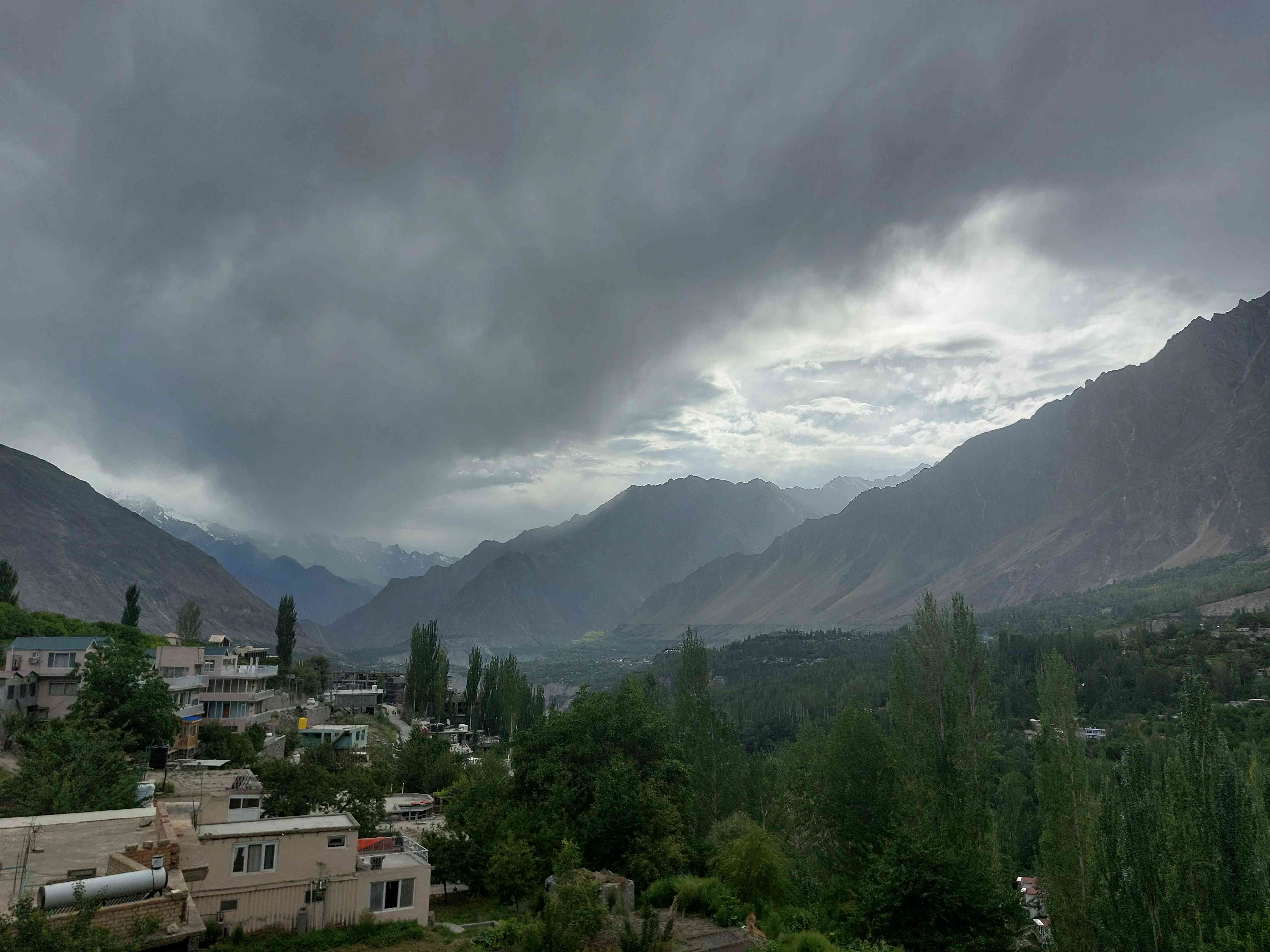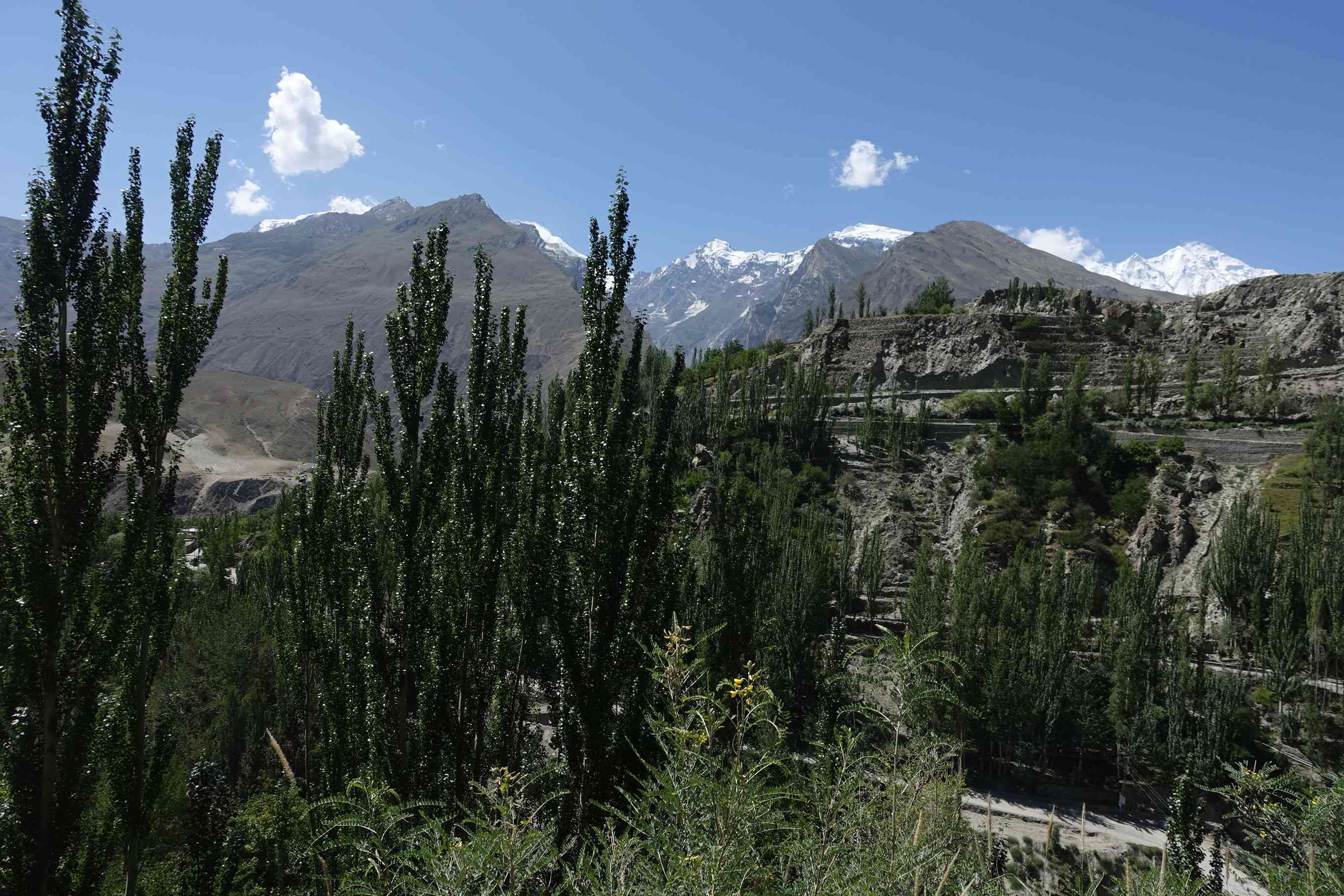 In Passu gab es Mittagessen und im Anschluß Aprikosenkuchen, bevor wir mit einem kleinen Bus weiter nach Karimabad fuhren, wo die anderen drei auf uns warteten. Hoch hinauf ging es hier zum Hotel, das toll gelegen war unter dem Lady Finger, einem 6000er. Wir tranken noch Cappuccino, liefen etwas durch den Ort, aßen zu Abend im Hotel und gingen erst um halb 11 ins Bett.