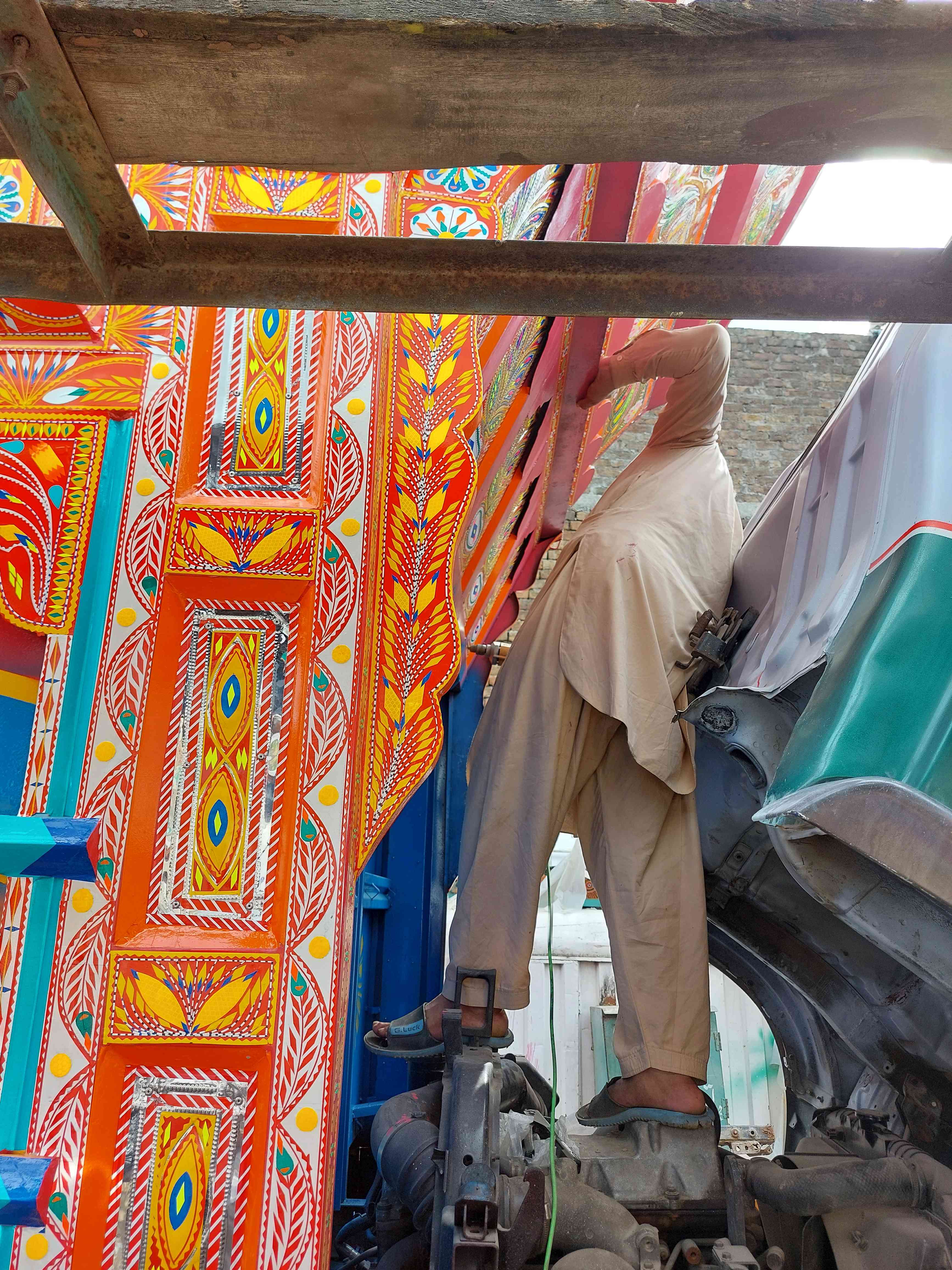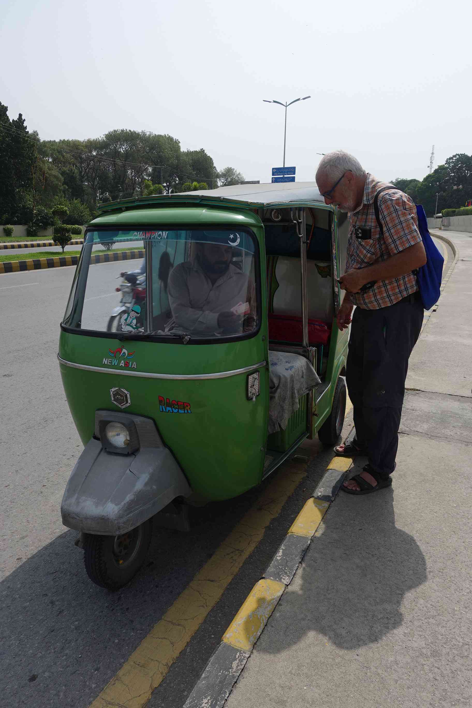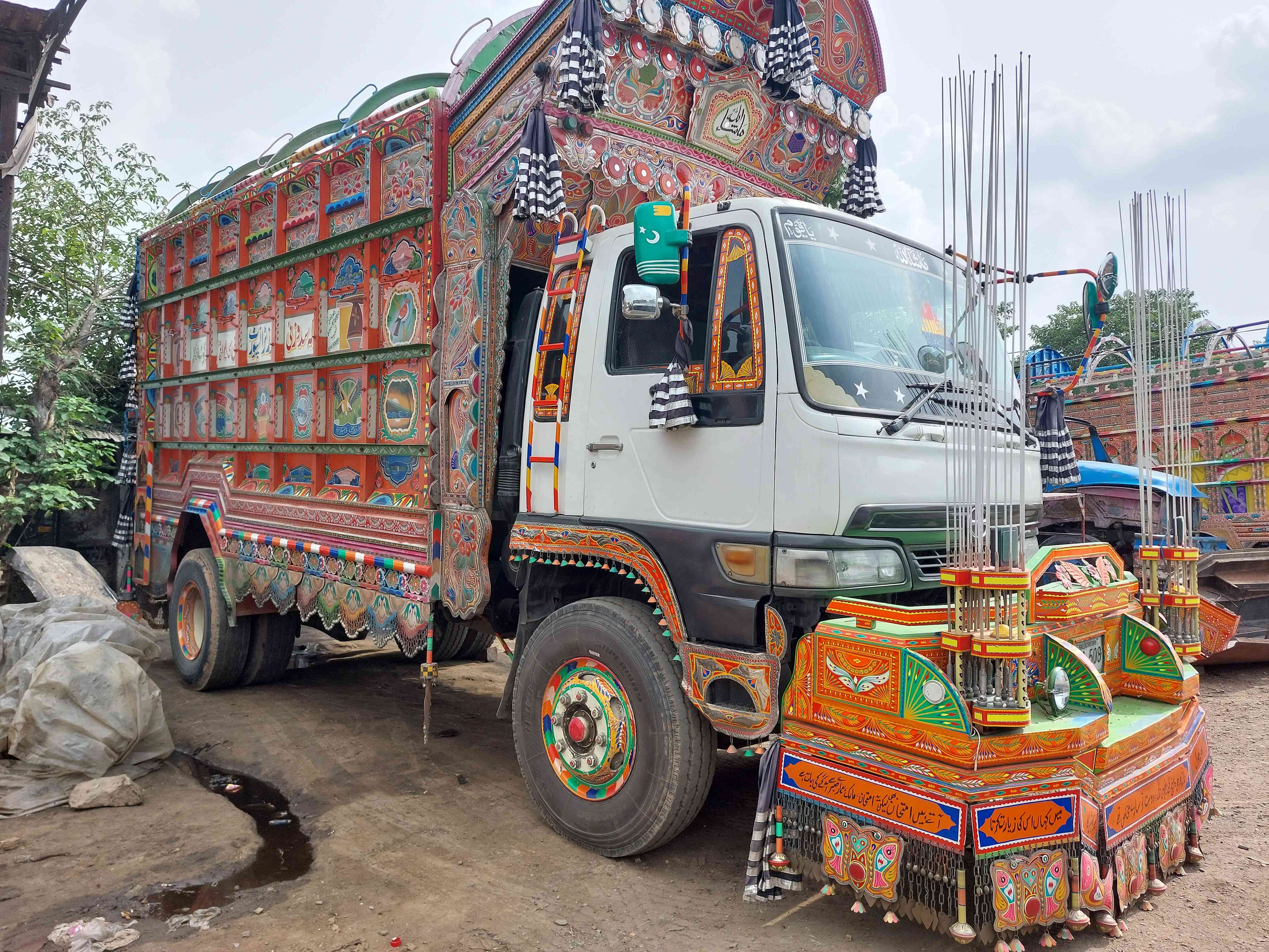 6 Uhr Abfahrt zum Flughafen mit einem Fahrzeug, das ging. Dort verspätet Abflug nach Islamabad und Transfer nach Rawalpindi ins Hotel, das wir schon anfangs zum Toilettengang besucht hatten. Diesmal war Volksfest gegenüber. Wir fuhren zu einem Museum über die Geschichte Pakistans und zu einem Monument und aßen danach in einem Straßenlokal frittiertes Genäsch – es war schon gut, aber einfach langsam viel zu viel Fett überall. Als nächstes fuhren wir zu einem Ort, an dem LKWs aufbereitet und verziert wurden – das war schon wirklich interessant. Sie verkünsteln sich total im Schmücken ihrer Fahrzeuge, und sie sind auch stolz auf alles, was sie hier machen. Zum Abschluß des Tage lief ich mit Volker und Peter noch durch die Straßen von Rawalpindi. Wir kauften uns eine Tüte Pfirsiche und verspeisten diese dann auf dem Rummel gegenüber des Hotels. Zwei riesen Schiffschaukeln wurden mit Dieselmotoren betrieben, was einen Höllenlärm verursachte. Wie überall hier, wo wir uns etwas aufhielten, wurden wir von Einheimischen angeschaut, hauptsächlich von den Kindern. Auch hier hatten wir bald wieder eine Menschentraube um uns, so daß wir uns bald wieder auf den „Heimweg“ machten.