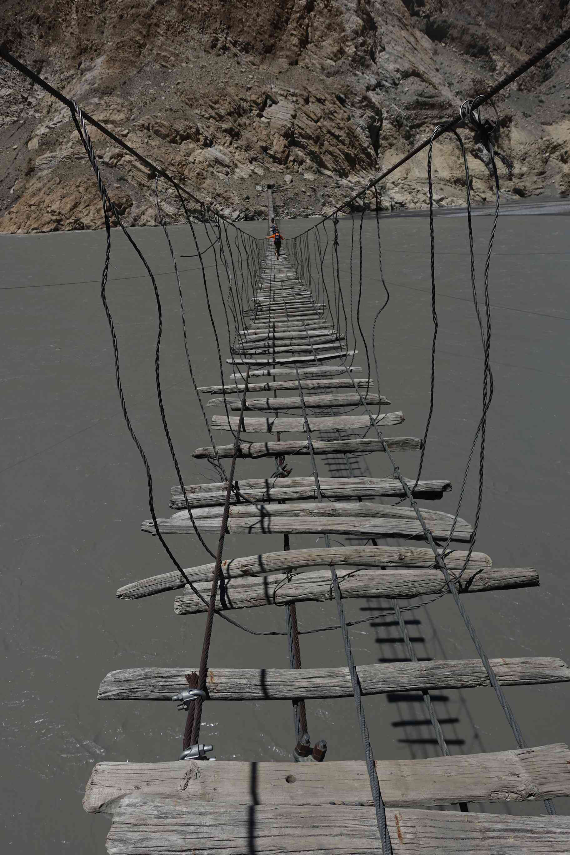 8 Uhr Frühstück, 9 Uhr Start mit dem Bus ein paar Kilometer, ab wo wir unsere Wanderung heute starten sollten, um uns ein wenig zu akklimatisieren. Es ging über zwei ellenlange wackelige Hängebrücken mit sehr vielen Lücken und durch tolle Landschaften – Kennenlernen der dortigen Natur und der saftigen reifen Aprikosen direkt vom Baum. Wir machten Teepause bei einem alten Mann und bekamen im Anschluß Essen bei Imtiaz‘ Familie in Passu. Irgendwann würde ich wohl platzen bei so viel Essen, das immer unheimlich lecker war. Zurück im Hotel gab’s eine kalte Dusche und wieder etwas packen. Volker schien wieder fit zu sein, Johanna einigermaßen.