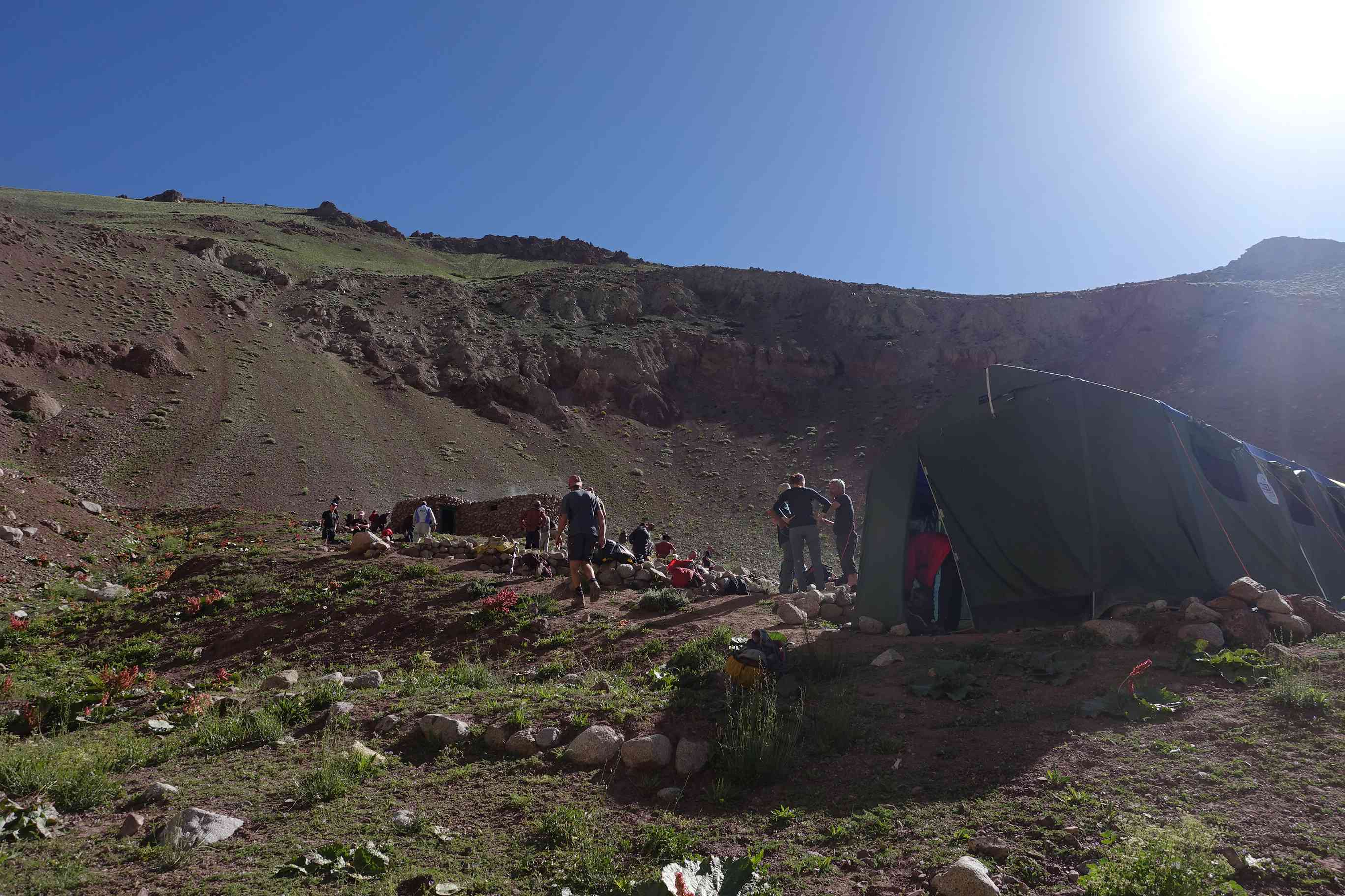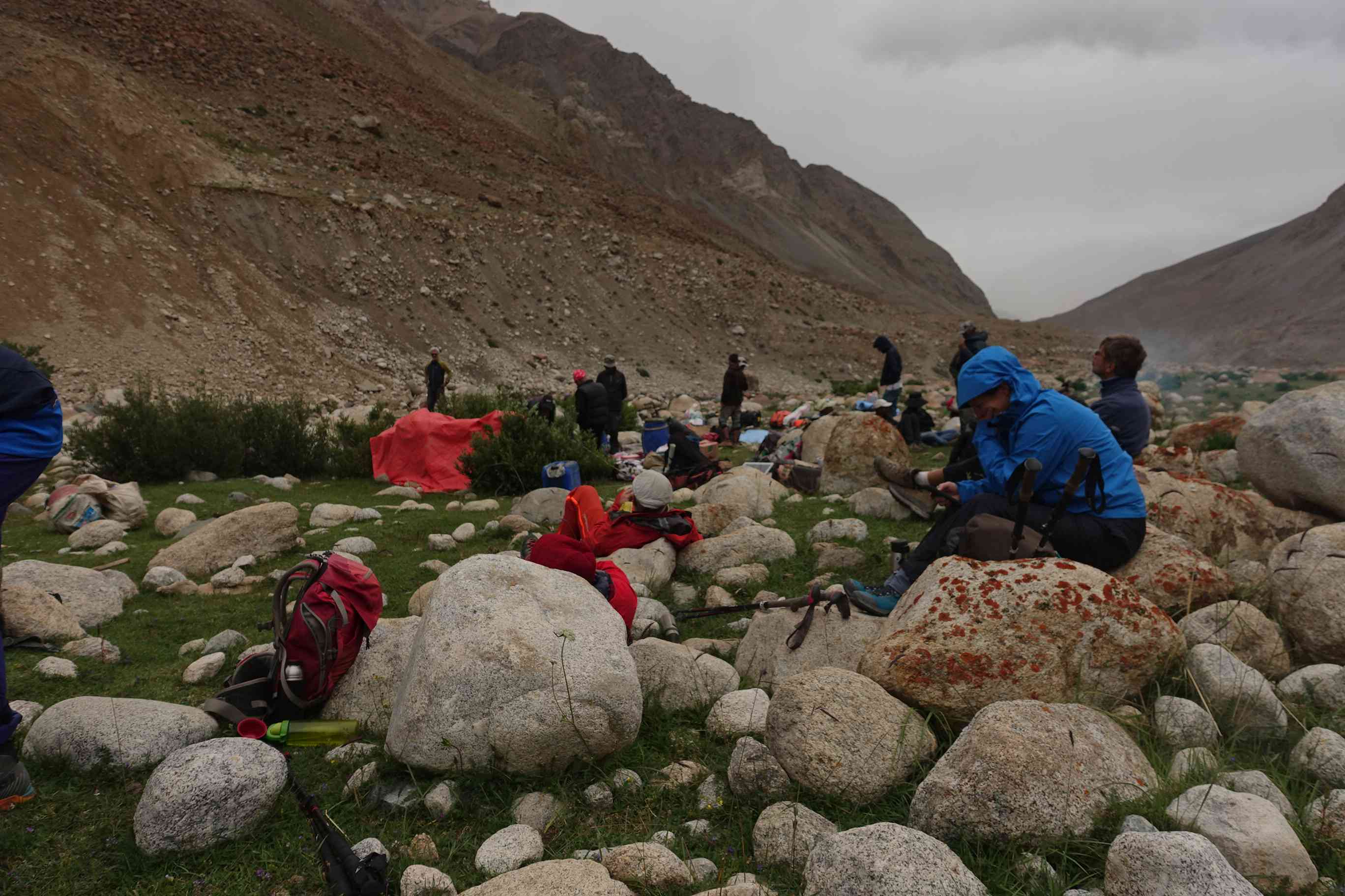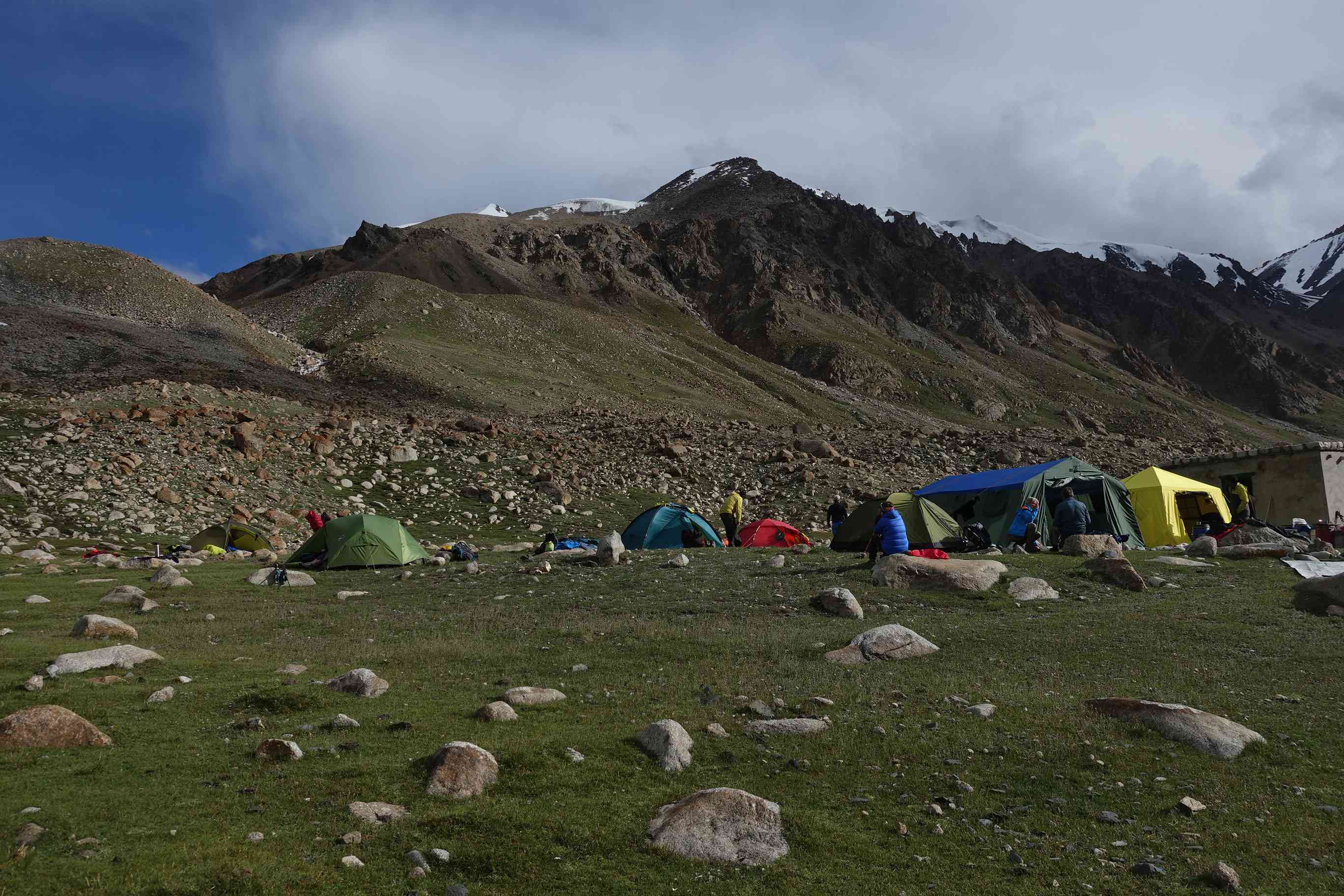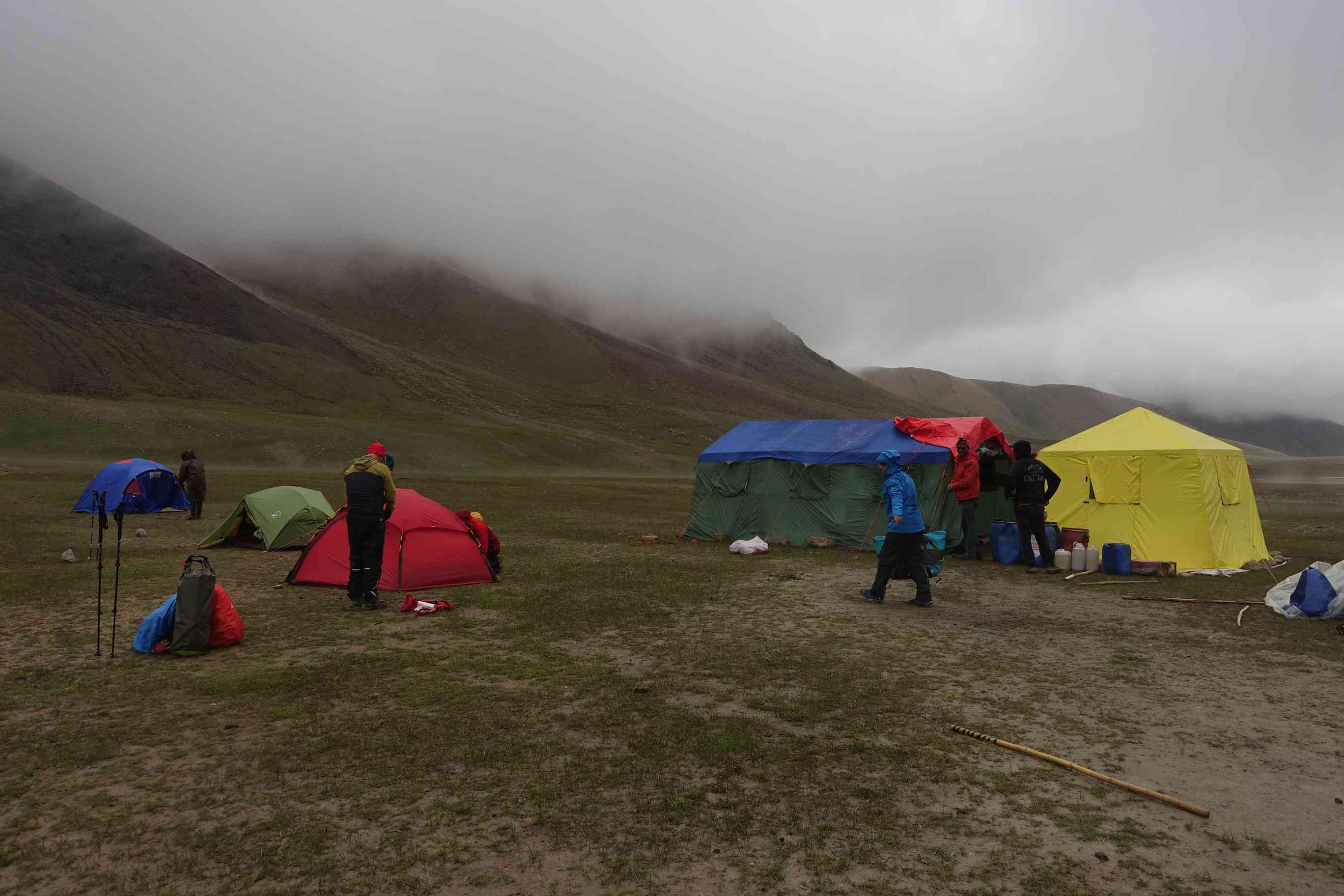 Heute standen erstmal nur 300hm hoch an bis zum Lager, von dem der Gipfel bestiegen werden sollte. Dennoch standen wir um 6 Uhr auf, da evtl. noch der Gang bis zum Hochlager auf 5800m anstand. Es regnete. Wir bauten unsere Zelte auf, Hochlager war nicht mehr angedacht. Nach dem Mittagessen schliefen die meisten von uns ein wenig. Danach schien wieder die Sonne und jeder ging für sich ein paar Meter spazieren und machte Fotos.