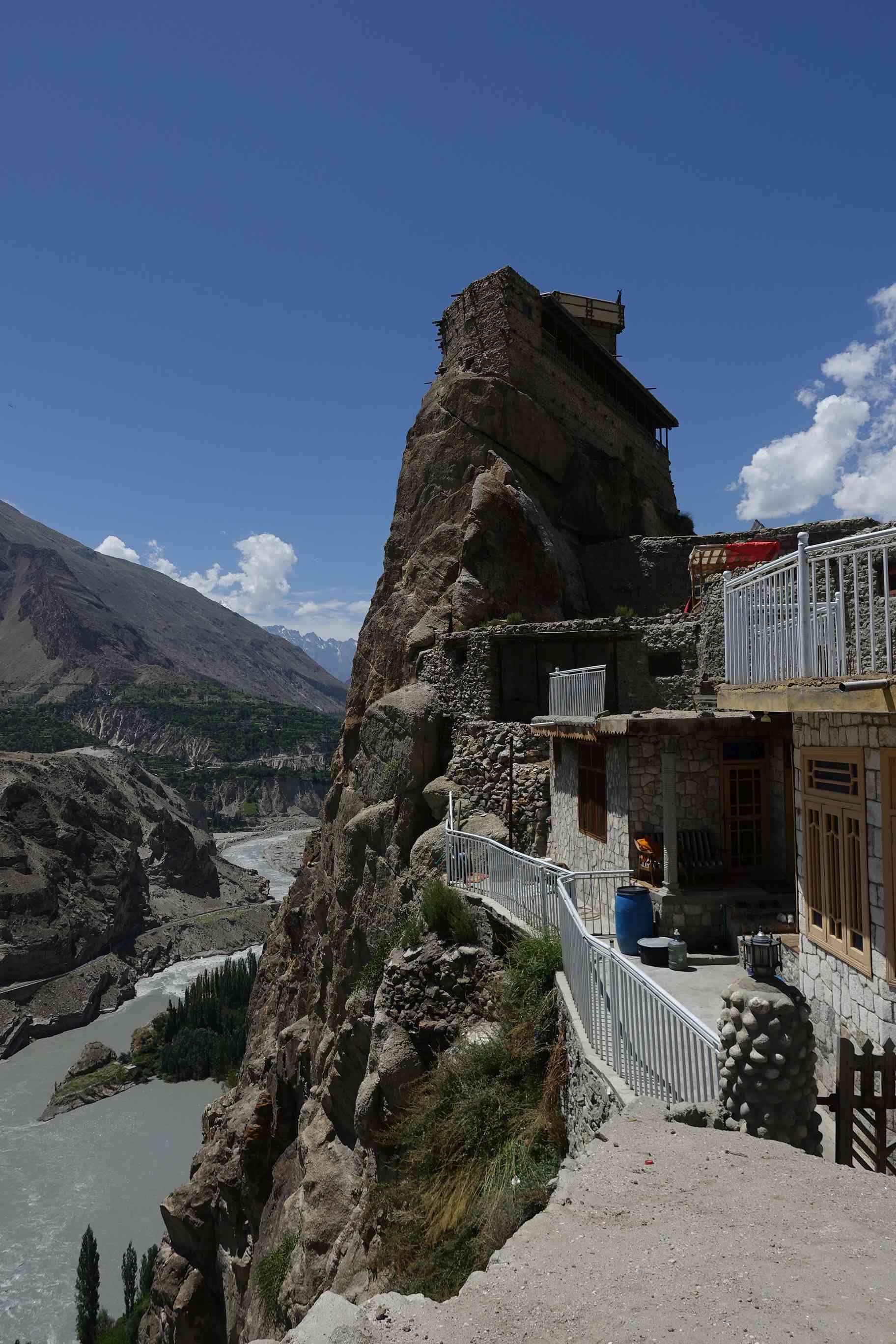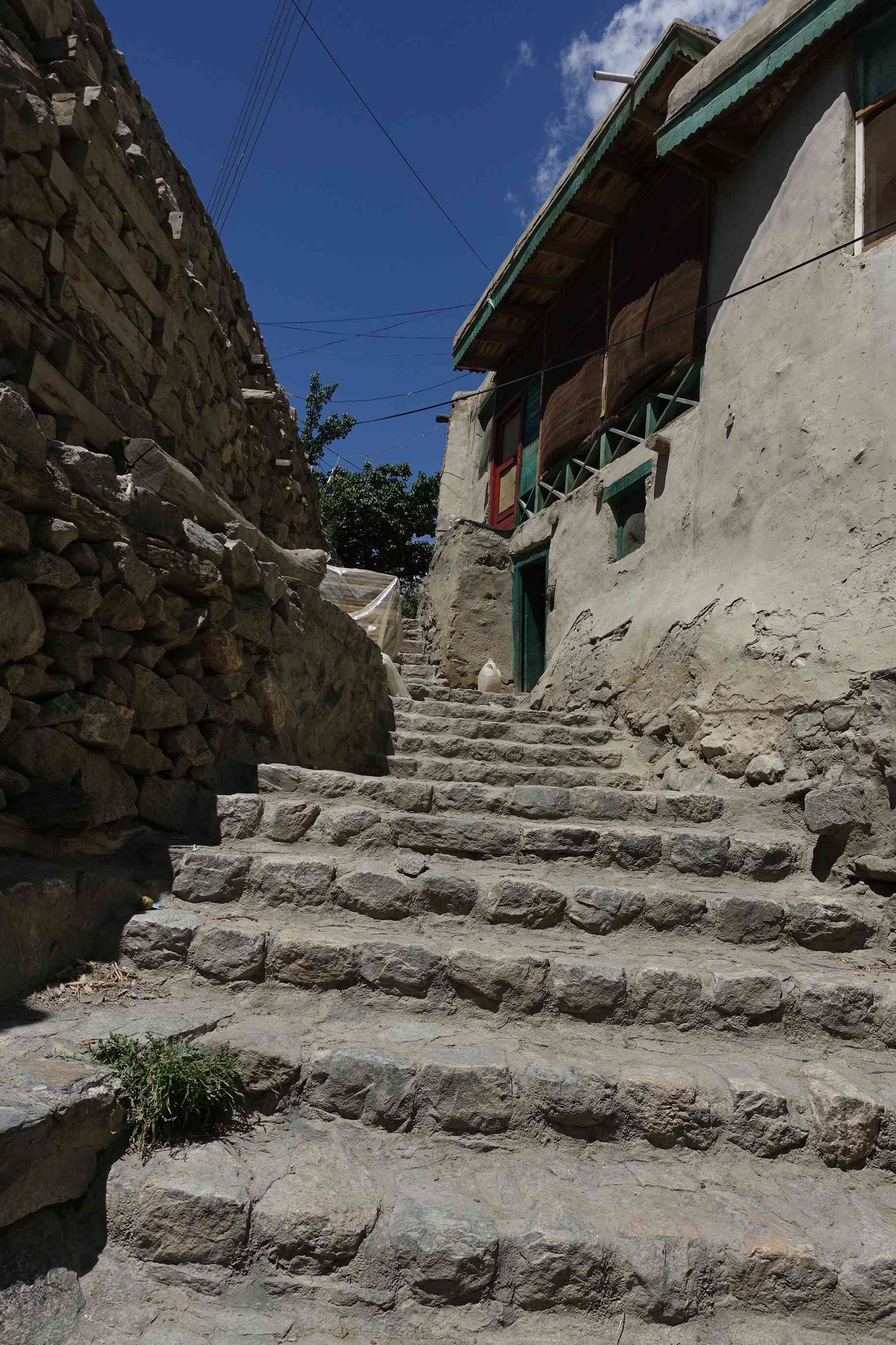 Heute ging es nach dem Frühstück nach unten per Bus und zu Fuß zum Altit Fort, der Winterresidenz des Königs, der im Sommer im Baltit Fort auf dem Berg gewesen sein soll. Danach aßen wir zu Mittag irgendwelche gefüllte Teigtaschen und tranken wieder einen Lassi oder Milchshake. Ab heute waren wir in einem anderen Hotel untergebracht, das direkt in dieser Altstadt lag. So ging ich nachmittags mit Volker und Peter shoppen bzw. die Läden angucken. Getrocknete Maulbeeren waren das Ziel. Danach saßen wir einfach auf dem Balkon des Hotelzimmers und genossen die Berge um uns rum. Wir hatten noch Aprikosen und Pflaumen, die wir irgendwo geerntet hatten.
