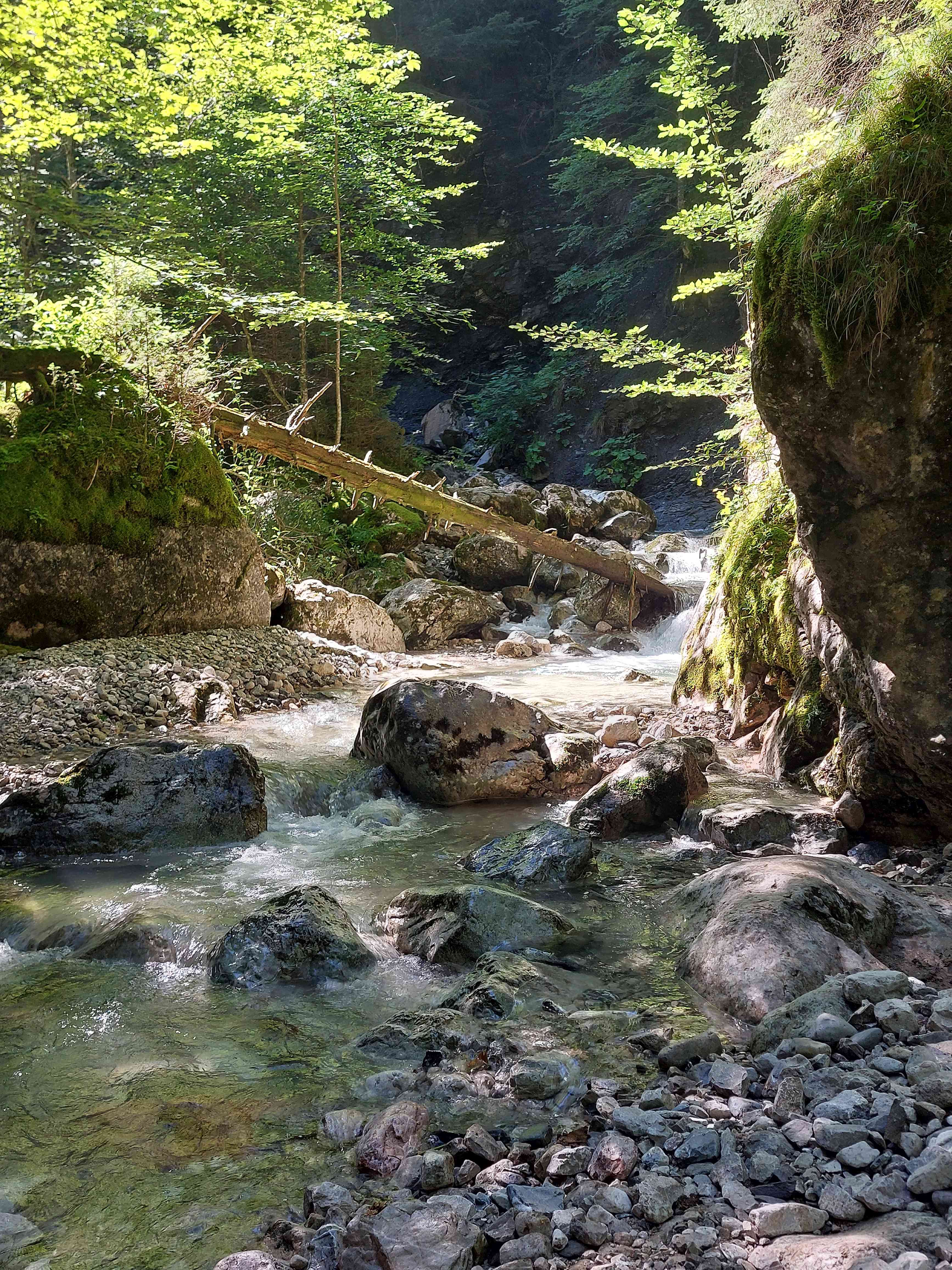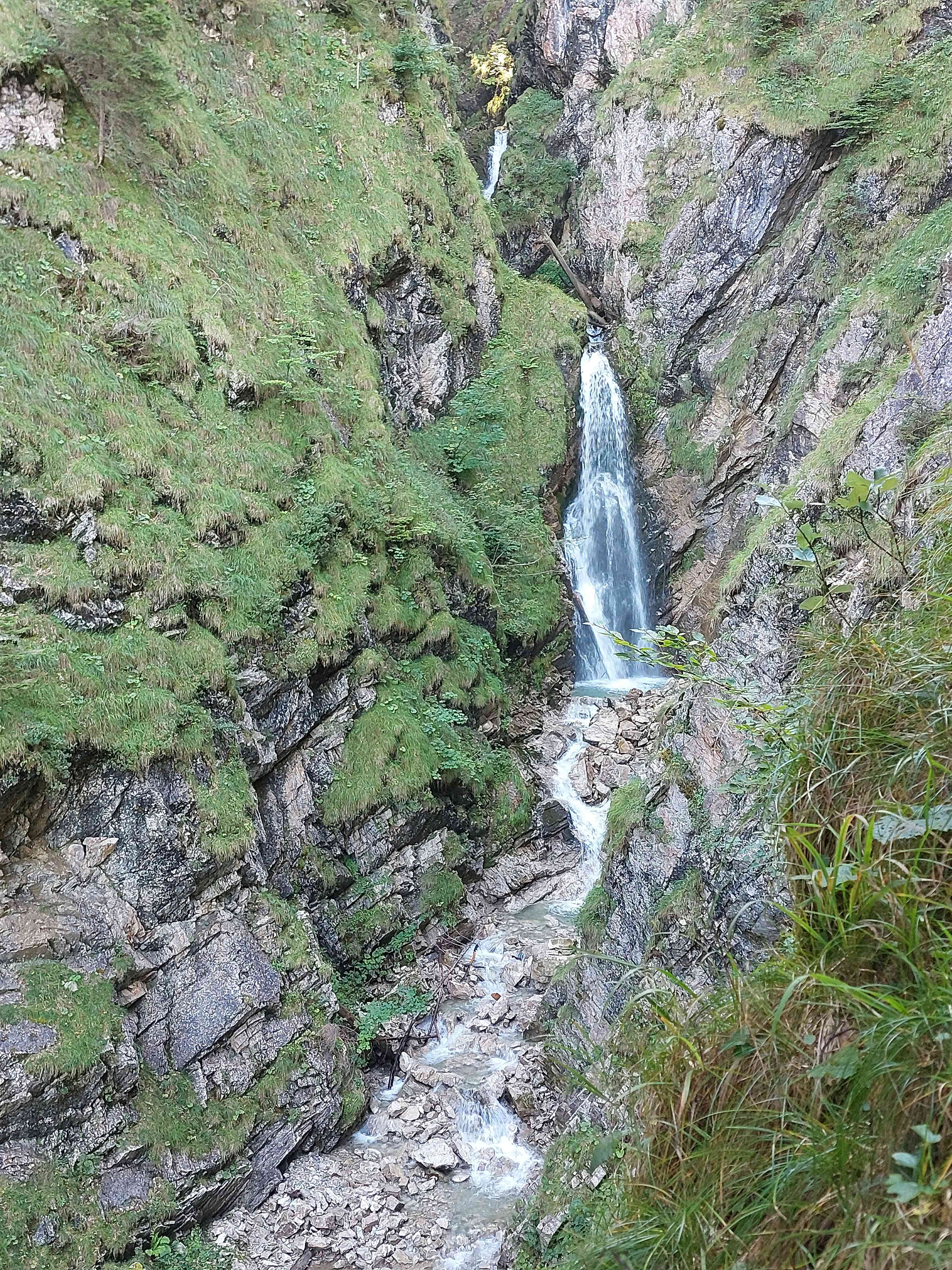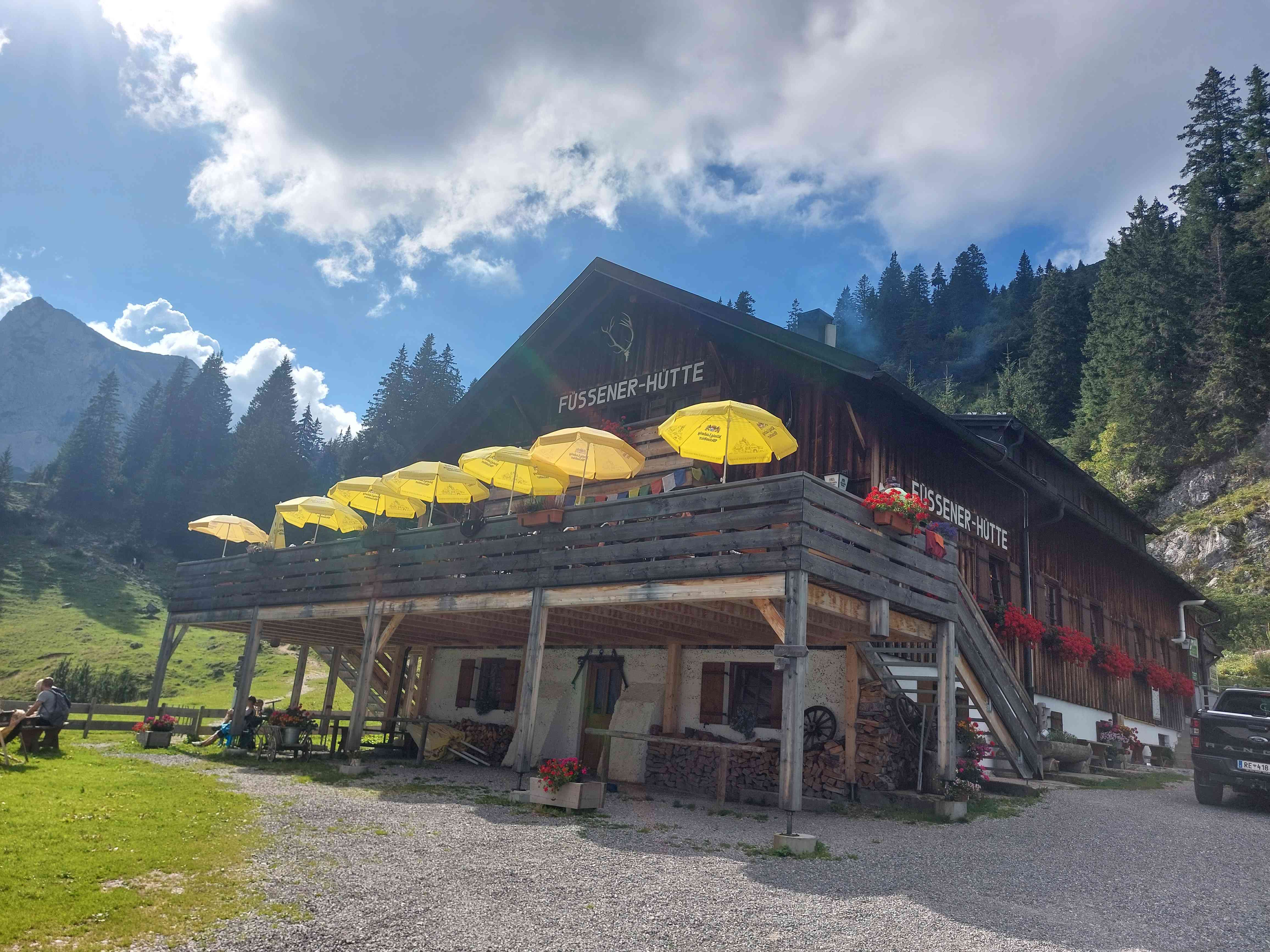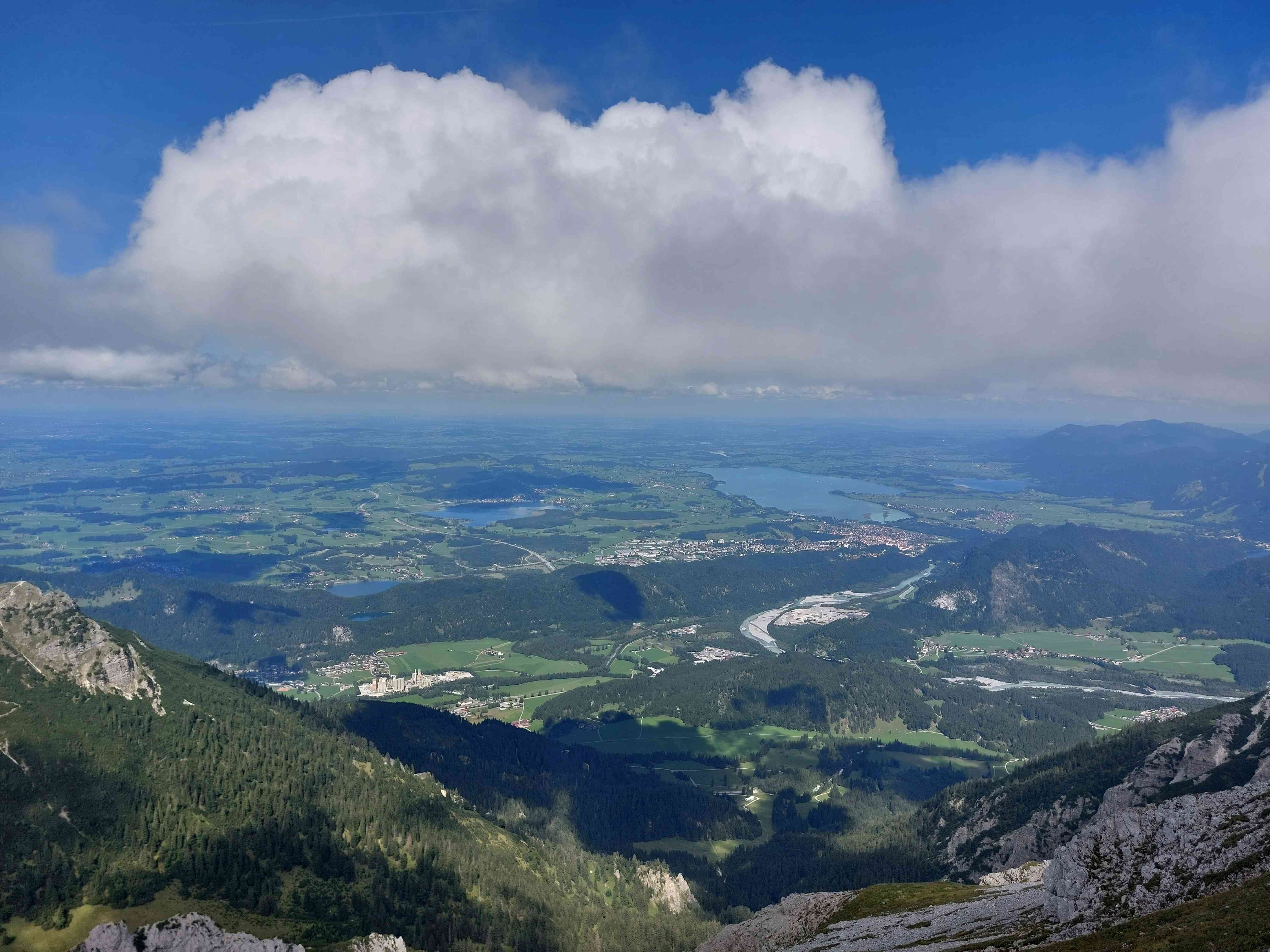 Das Aufstehen war ein wenig beschwerlicher als gewohnt, aber um 7 Uhr saßen wir beim Frühstück und gingen kurz nach 8 Uhr los zum Aggenstein hoch ohne Rucksack, dem Hausberg der Bad Kissinger Hütte auf 1987m. Das Wetter war heute wieder bombastisch, die Wolken hingen noch über dem Schwangau und darüber blauer Himmel und Sonnenschein. Danach Abstieg, nochmal Sonnenterrasse genießen auf der Hütte und runter durch die Reichenbachklamm nach Pfronten, wo es teilweise recht rutschig und steil war.