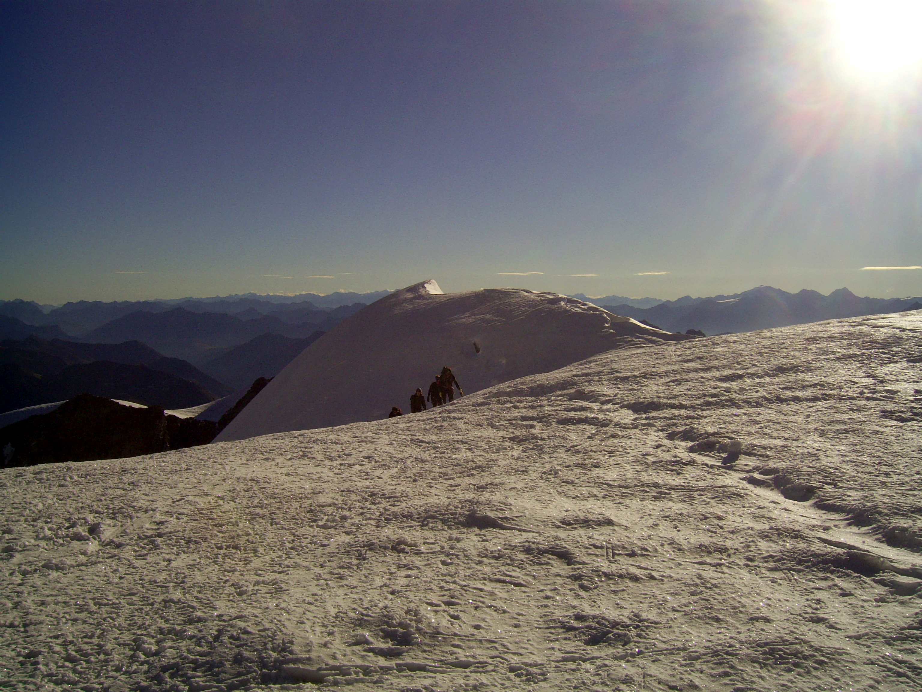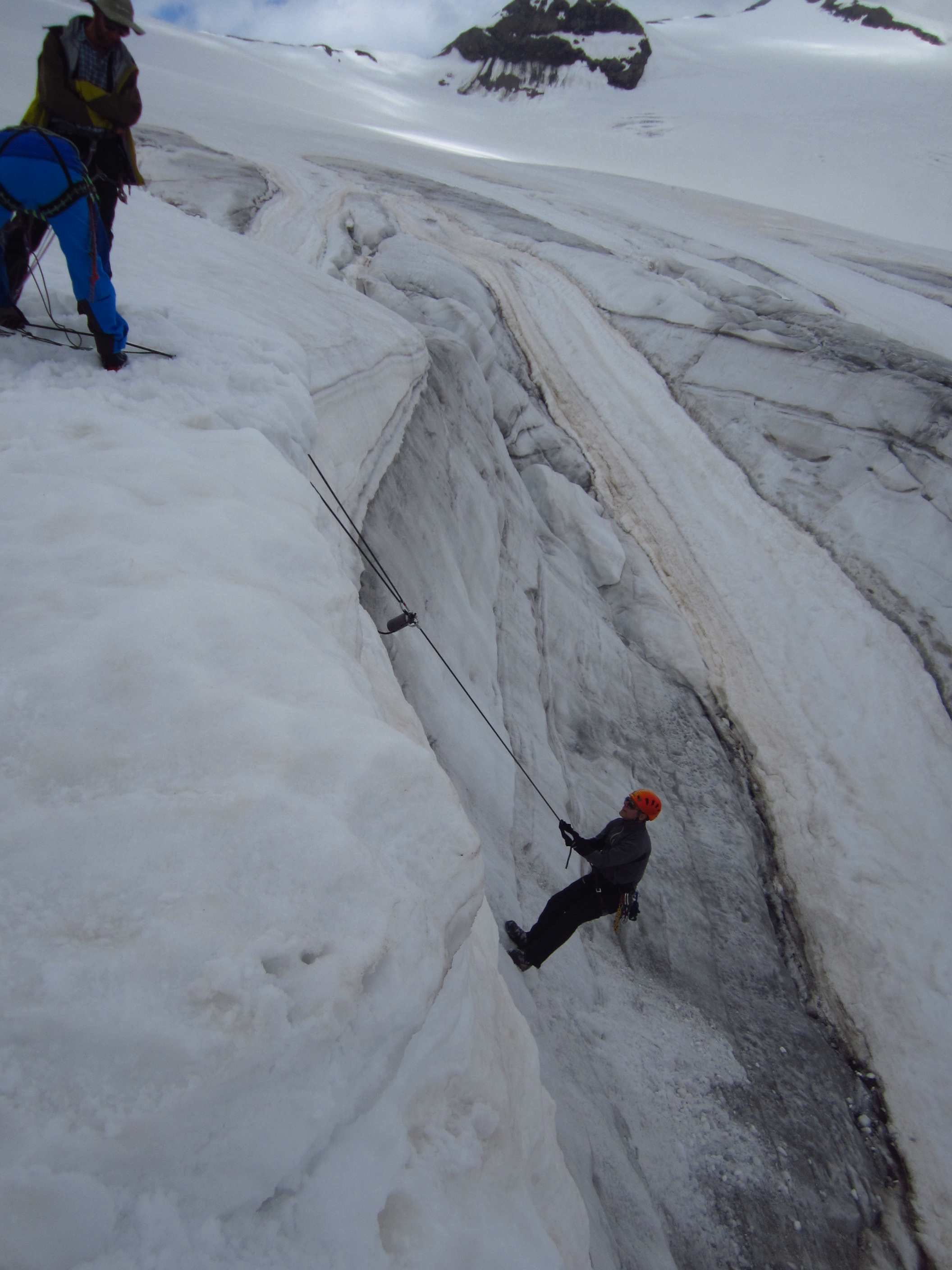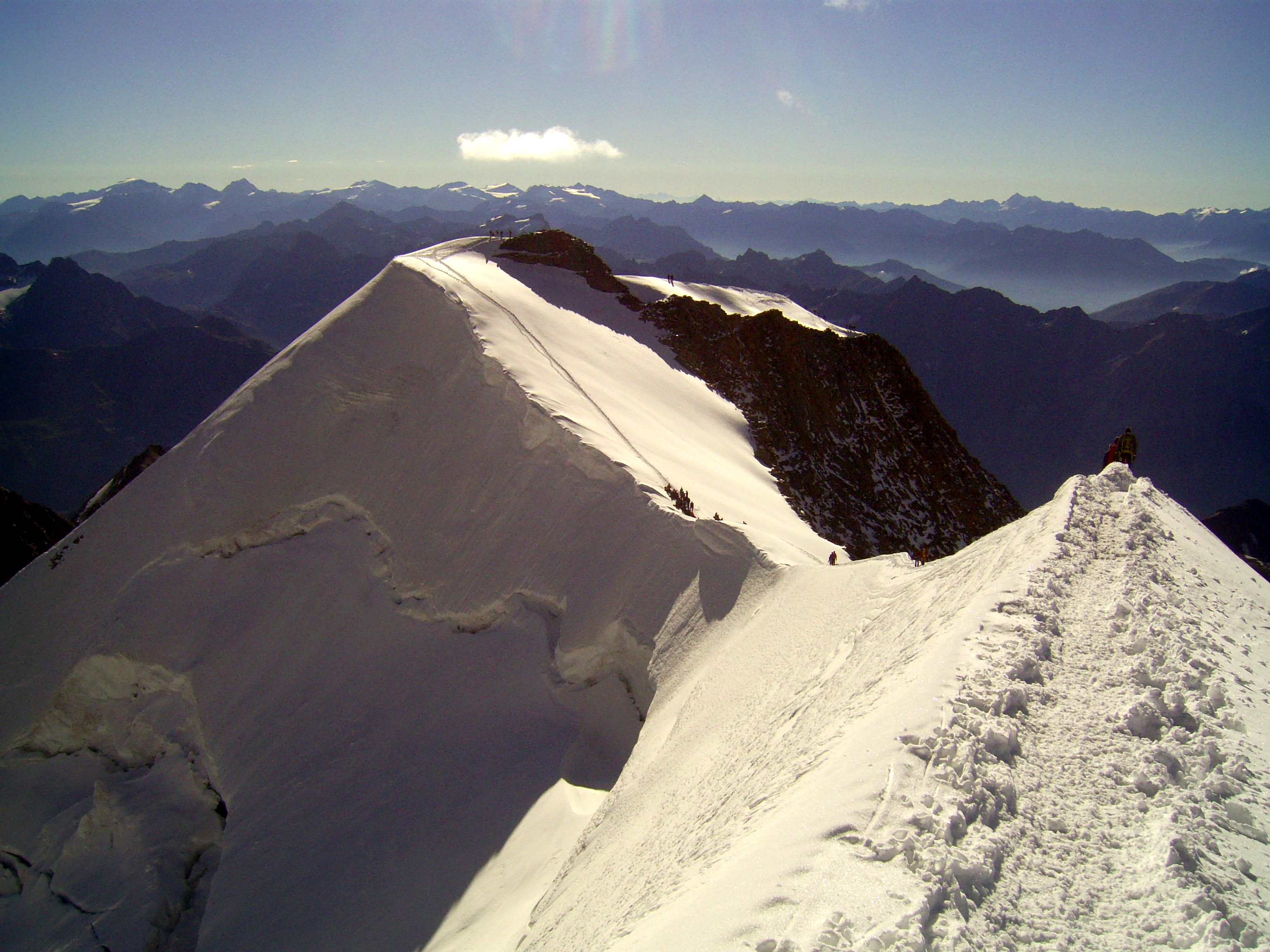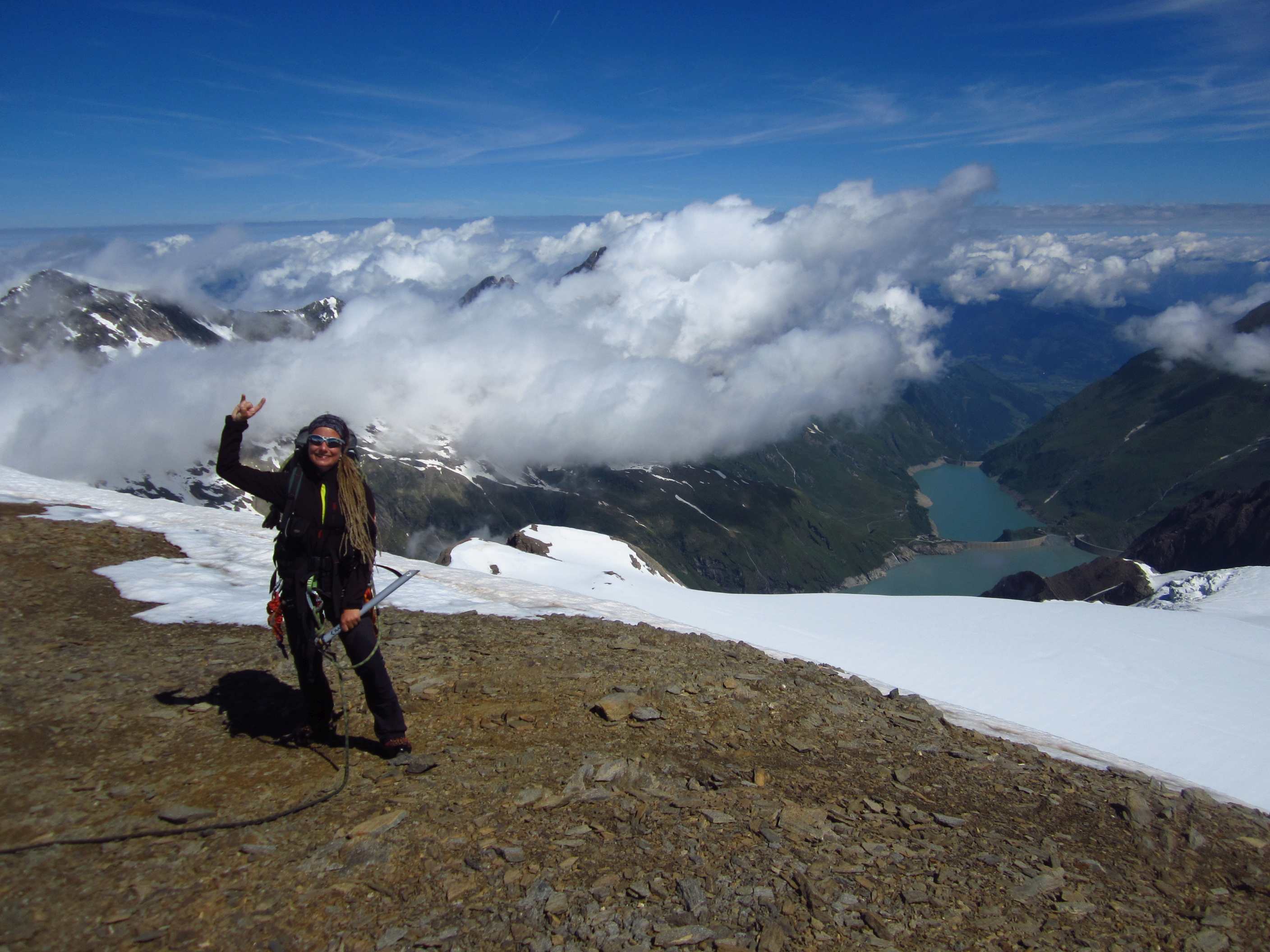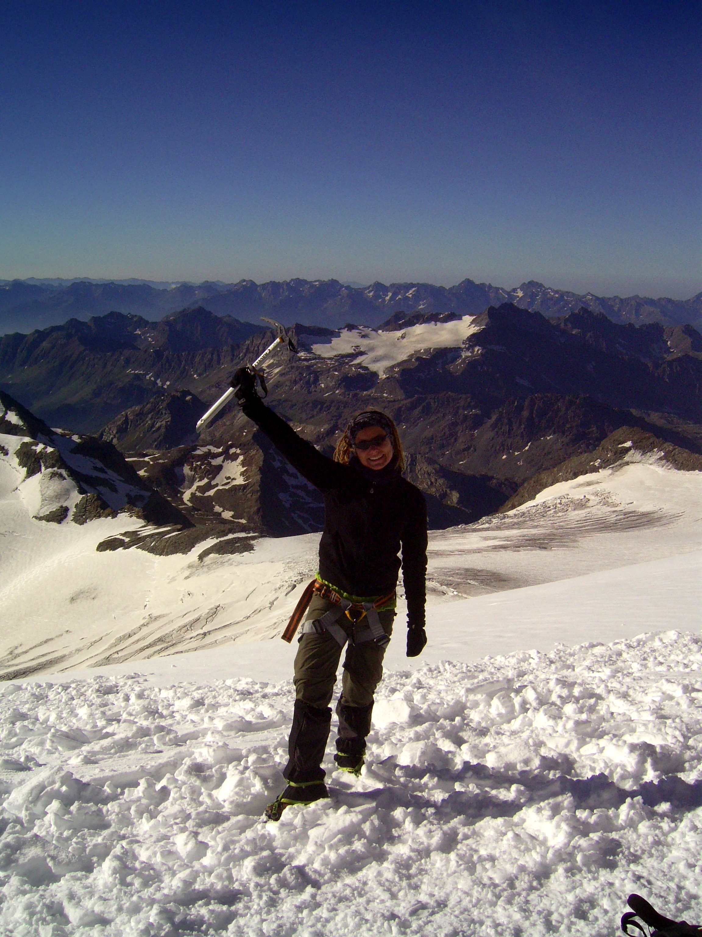 Aufstieg von Vent zur Martin-Busch-Hütte, dort Arbeitseinsatz auf dem Dach der Hütte. Besteigung Kreuzspitze bis ca. 50m vorm Gipfelkreuz weil Gewitter. Übergang zur Similaun Hütte über die Ötzi Fundstelle, Hochferner, Hochjochhospiz zur Breslauer Hütte. Versuch Besteigung Wildspitze bis Mitterkarjoch, dann Umdrehen wegen Schneesturm. Abstieg nach Vent.