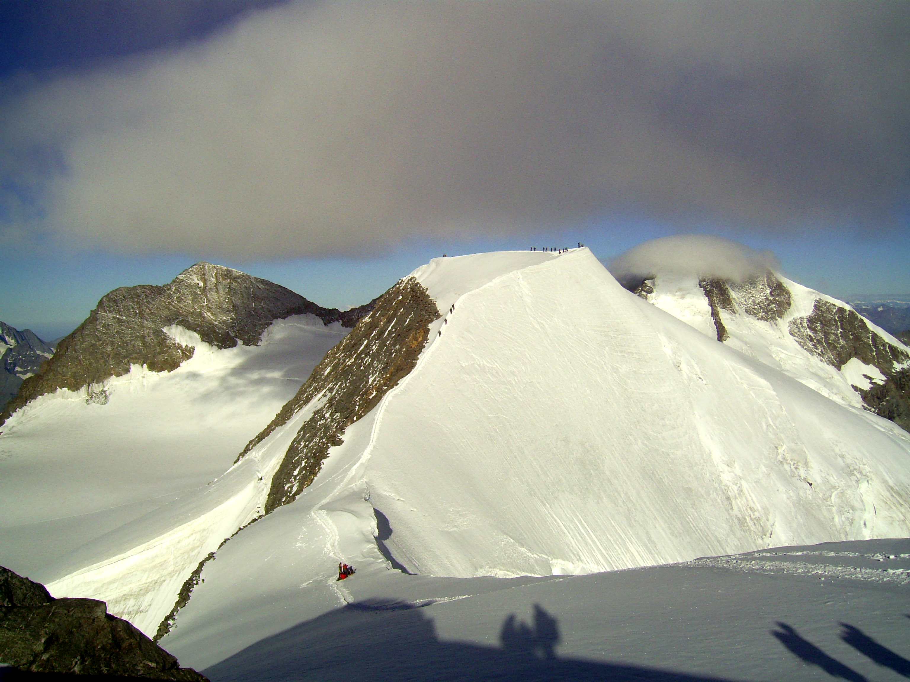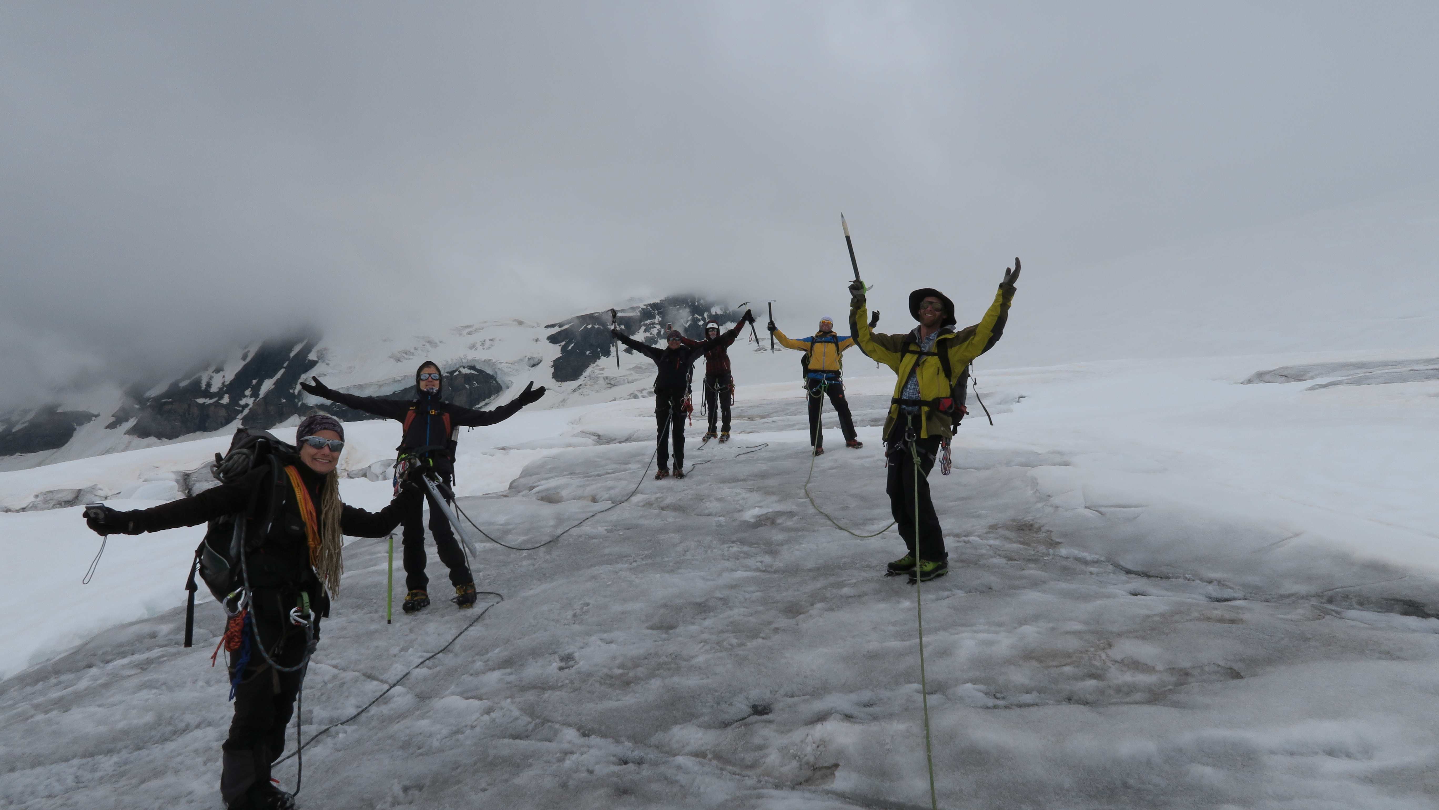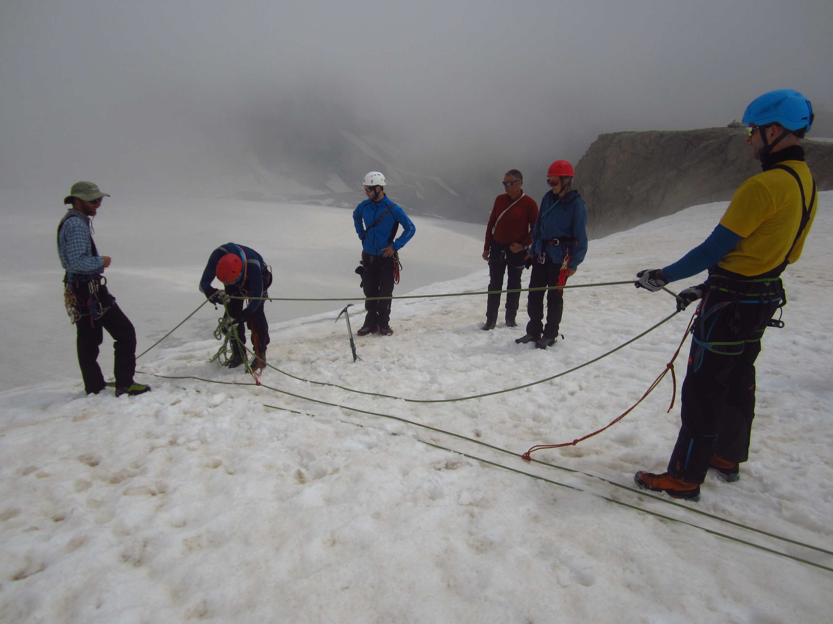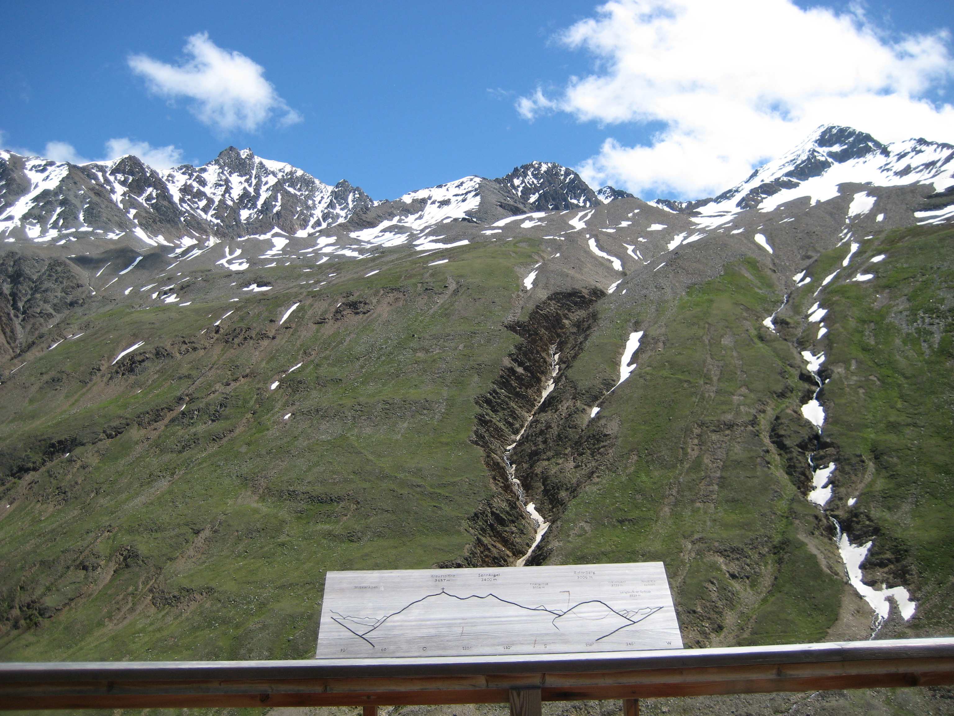 Aufstieg von Vent zur Martin-Busch-Hütte, dort Arbeitseinsatz auf dem Dach der Hütte. Besteigung Kreuzspitze bis ca. 50m vorm Gipfelkreuz weil Gewitter. Übergang zur Similaun Hütte über die Ötzi Fundstelle, Hochferner, Hochjochhospiz zur Breslauer Hütte. Versuch Besteigung Wildspitze bis Mitterkarjoch, dann Umdrehen wegen Schneesturm. Abstieg nach Vent.