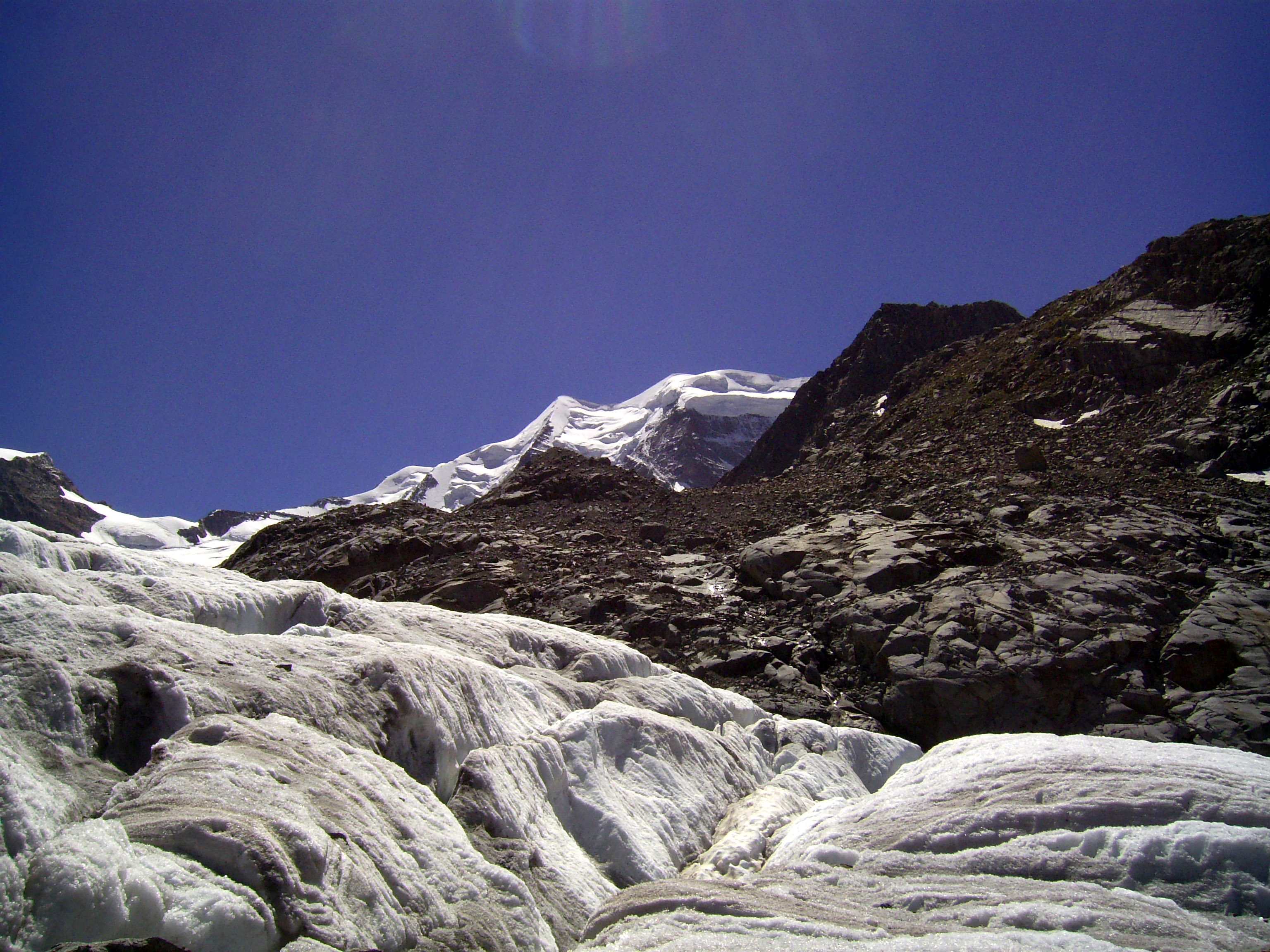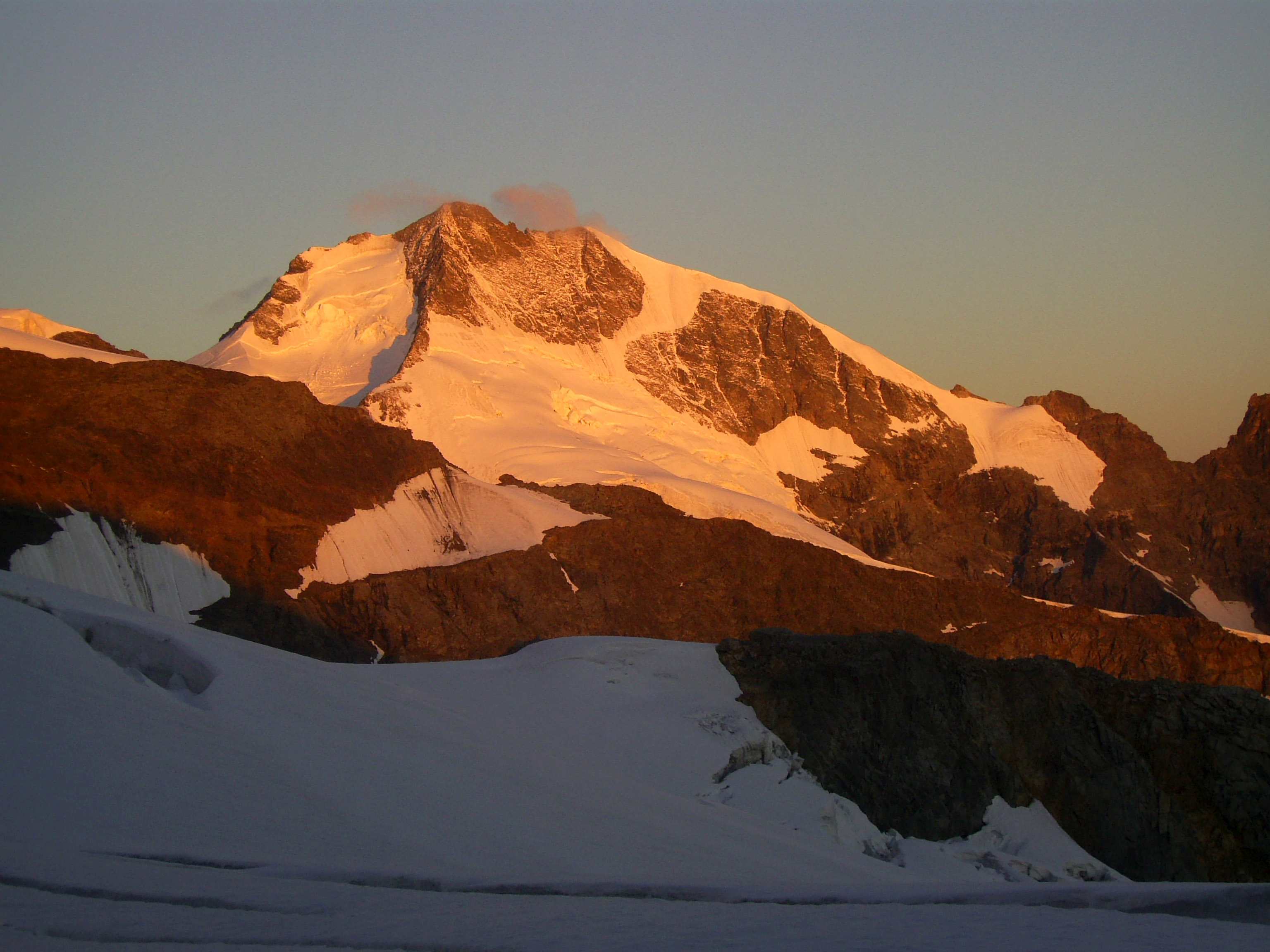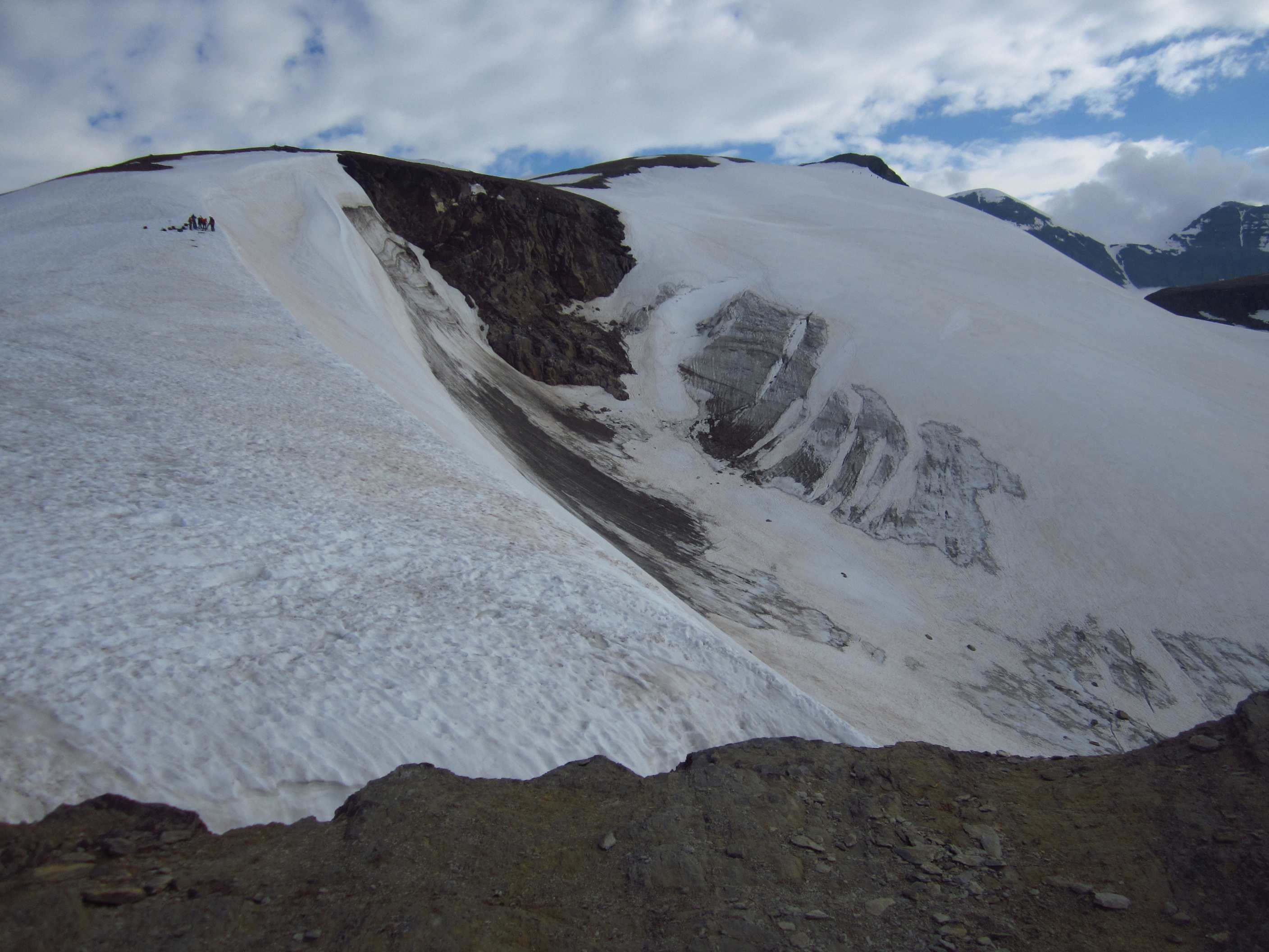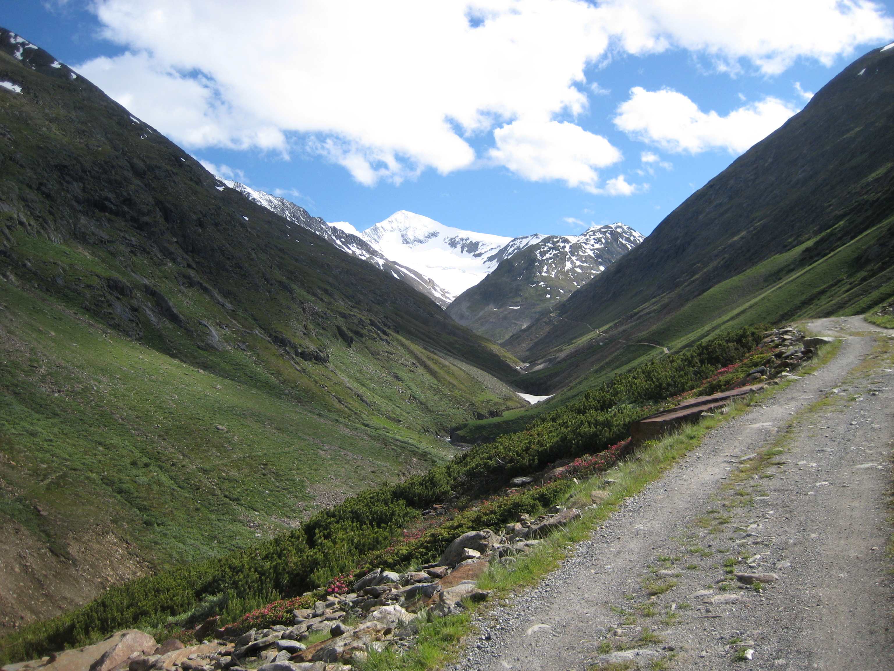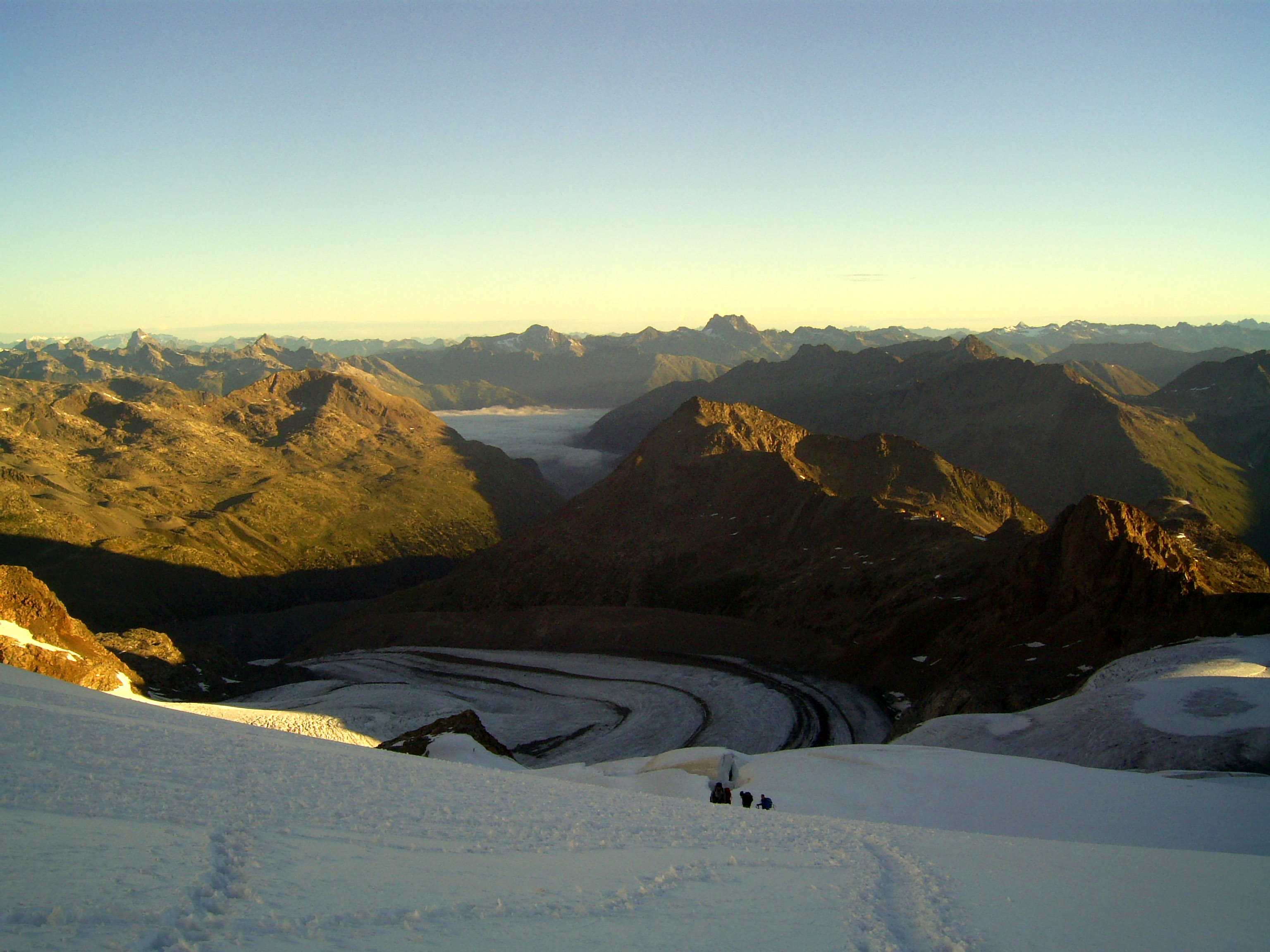 Aufstieg von Vent zur Martin-Busch-Hütte, dort Arbeitseinsatz auf dem Dach der Hütte. Besteigung Kreuzspitze bis ca. 50m vorm Gipfelkreuz weil Gewitter. Übergang zur Similaun Hütte über die Ötzi Fundstelle, Hochferner, Hochjochhospiz zur Breslauer Hütte. Versuch Besteigung Wildspitze bis Mitterkarjoch, dann Umdrehen wegen Schneesturm. Abstieg nach Vent.