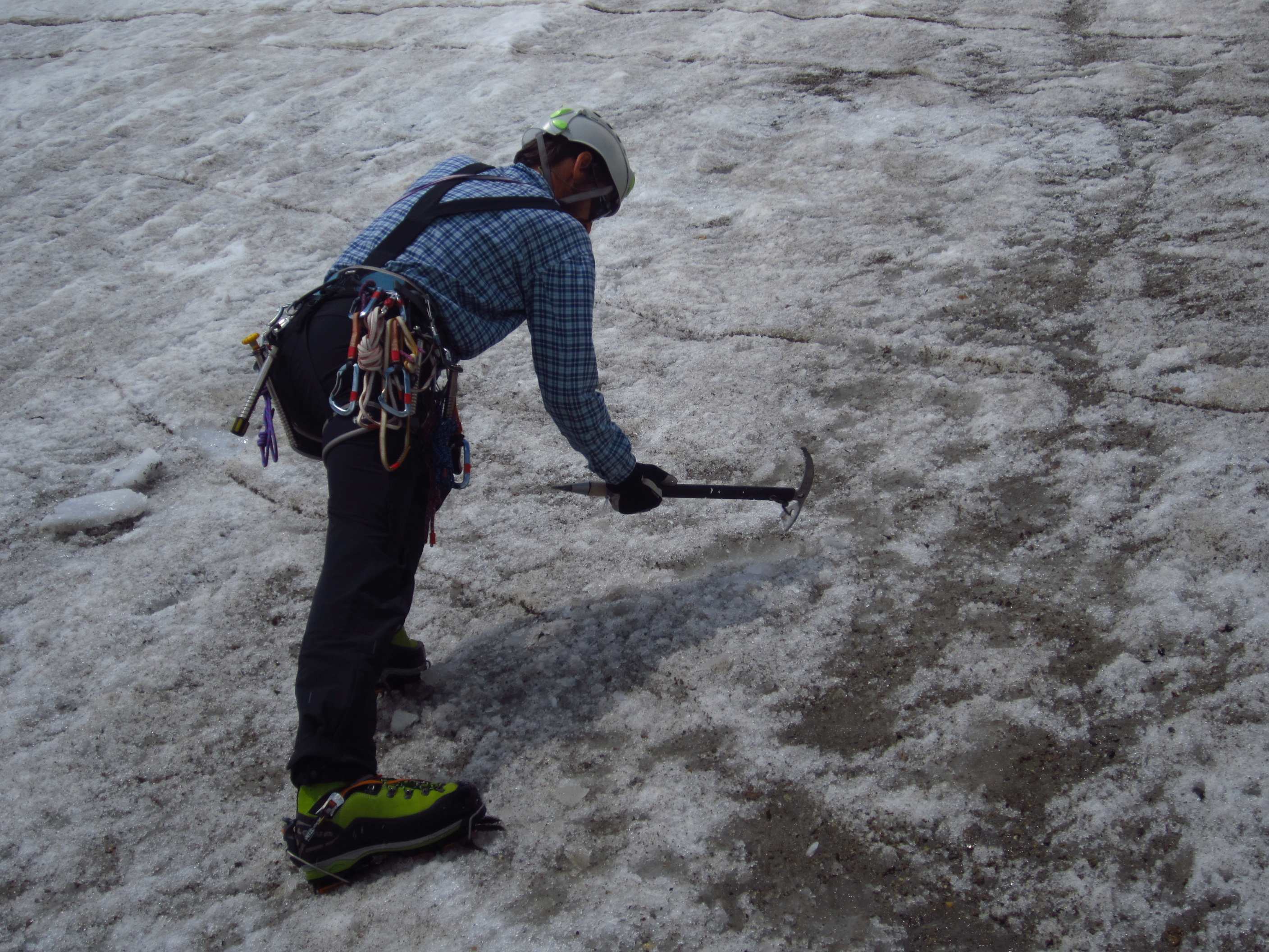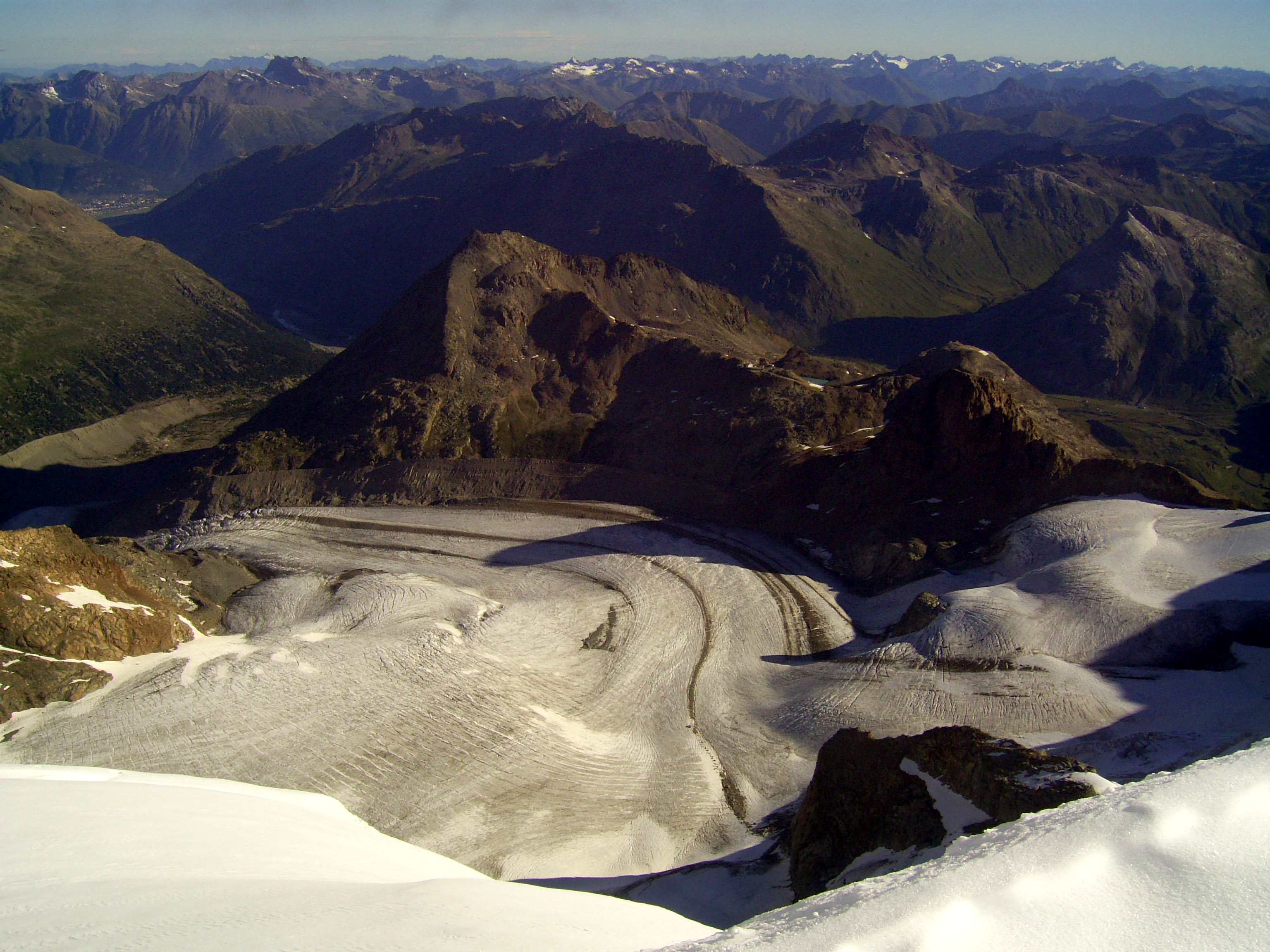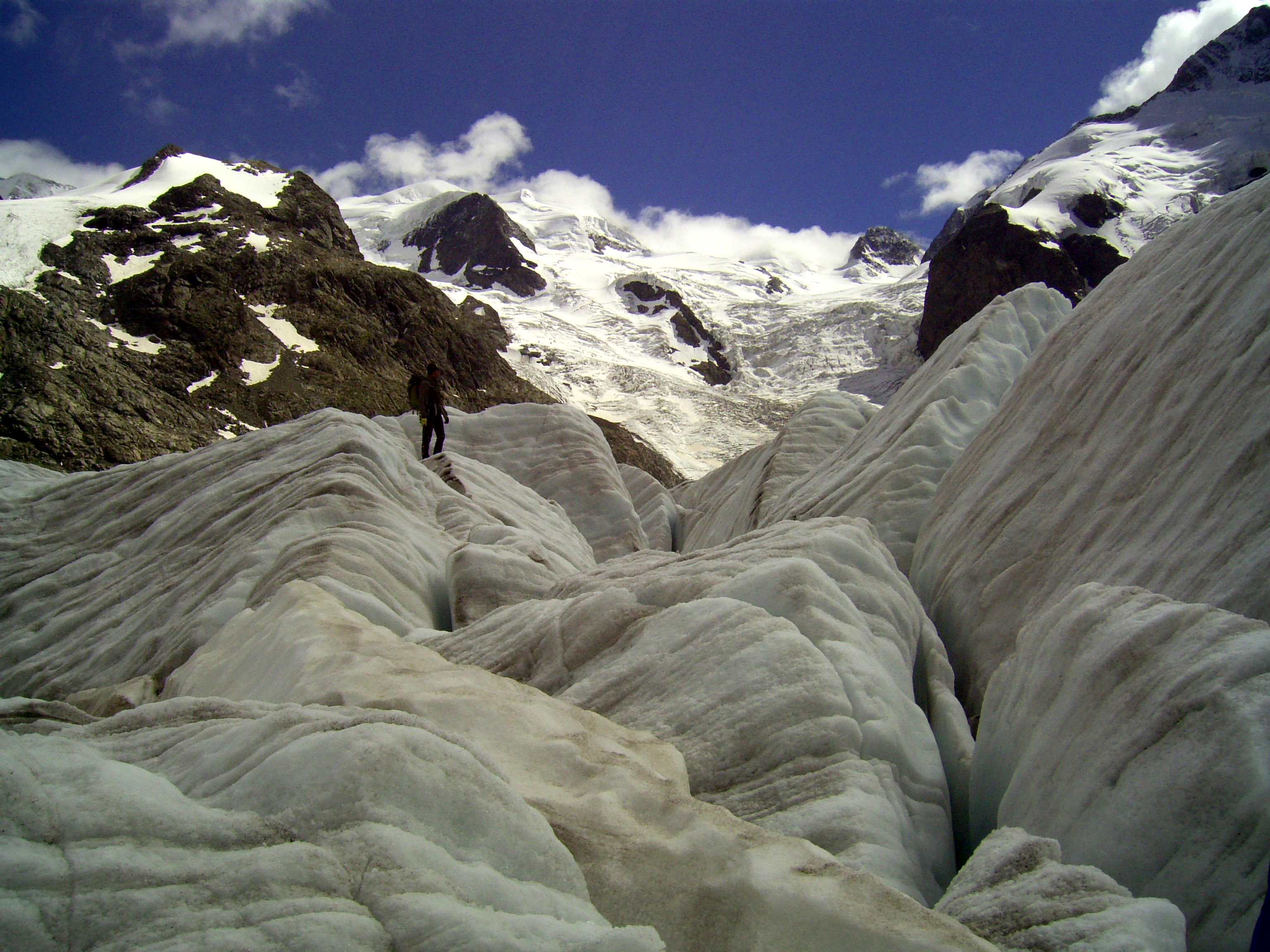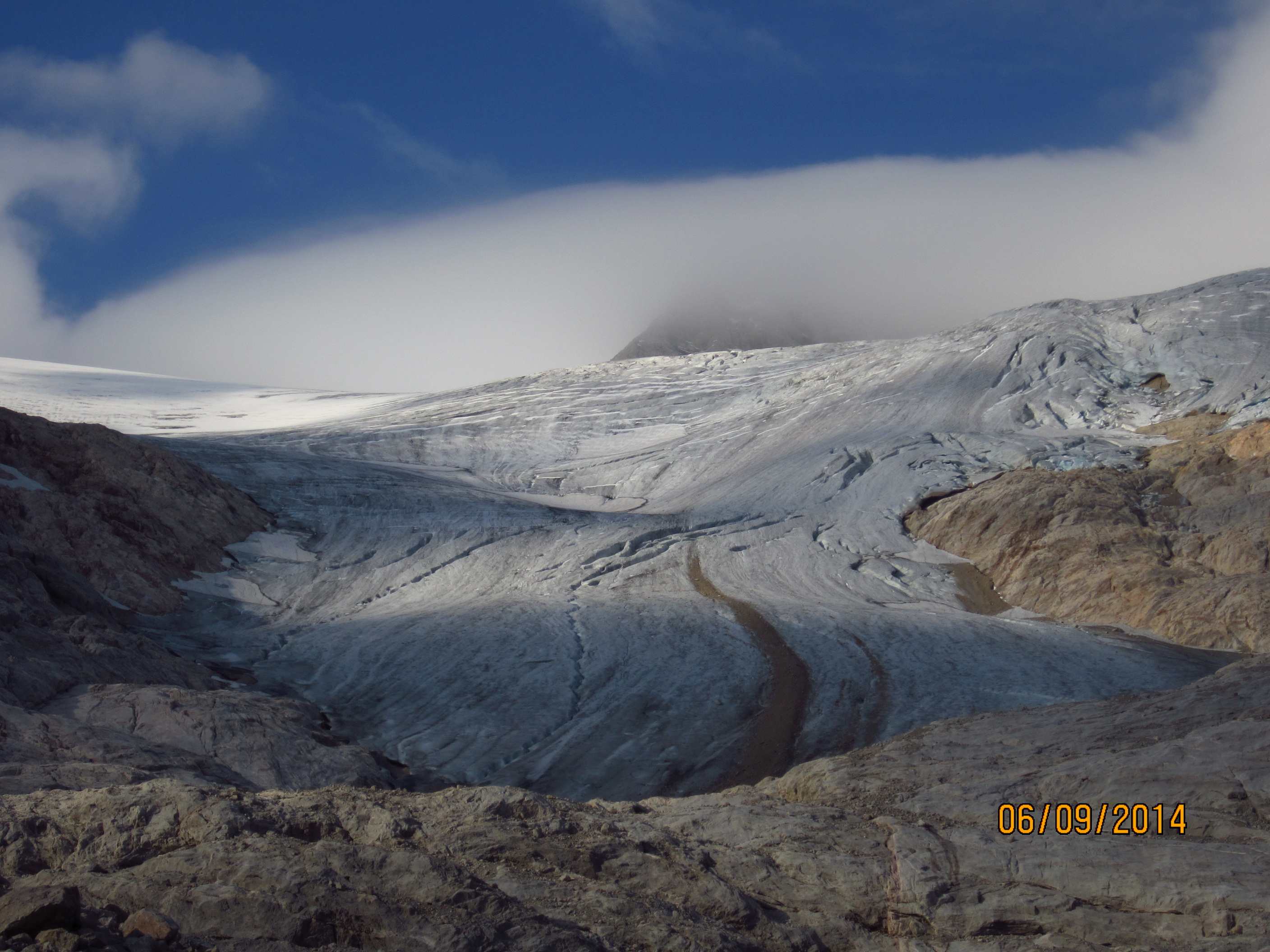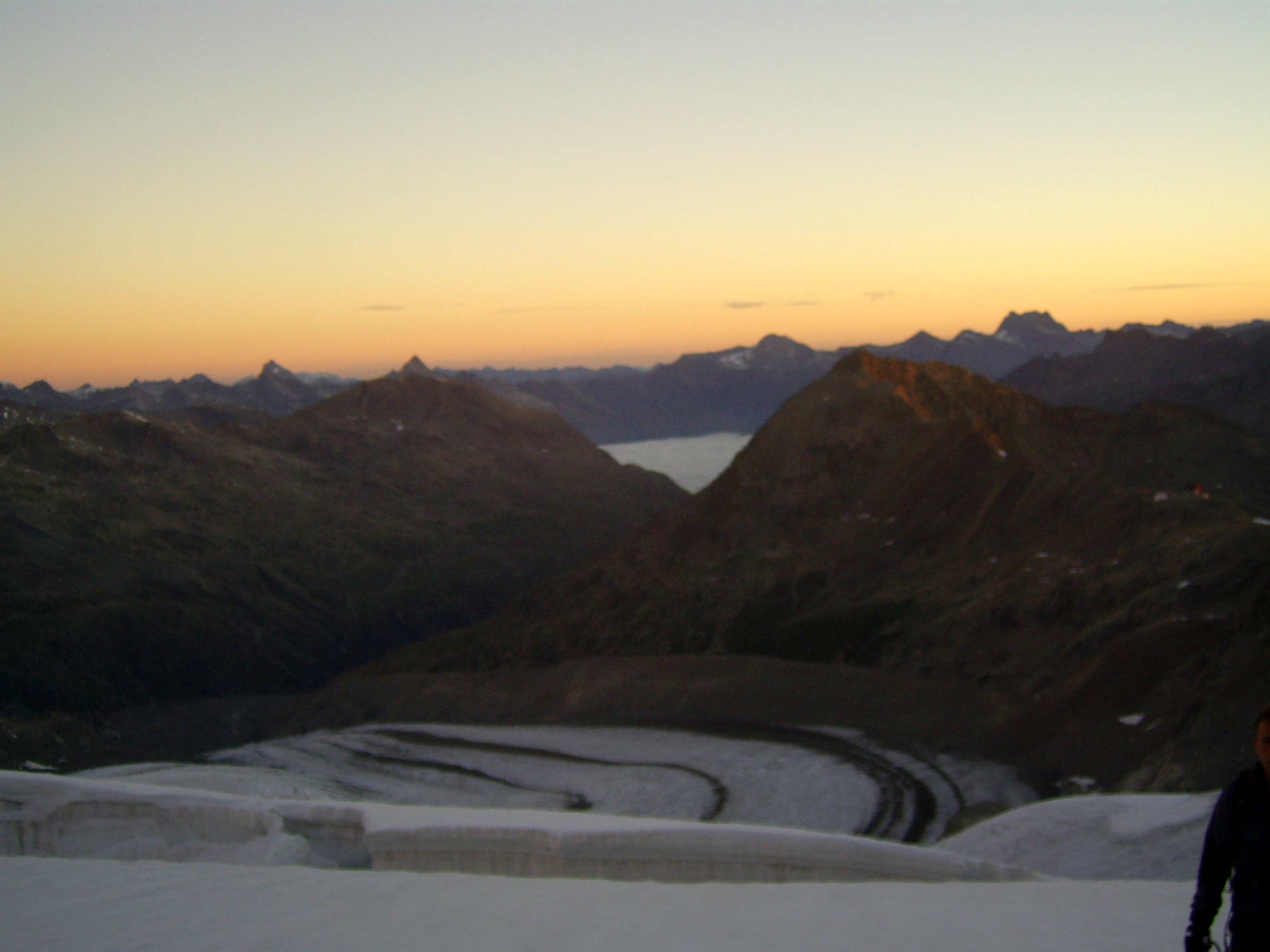 Aufstieg von Vent zur Martin-Busch-Hütte, dort Arbeitseinsatz auf dem Dach der Hütte. Besteigung Kreuzspitze bis ca. 50m vorm Gipfelkreuz weil Gewitter. Übergang zur Similaun Hütte über die Ötzi Fundstelle, Hochferner, Hochjochhospiz zur Breslauer Hütte. Versuch Besteigung Wildspitze bis Mitterkarjoch, dann Umdrehen wegen Schneesturm. Abstieg nach Vent.