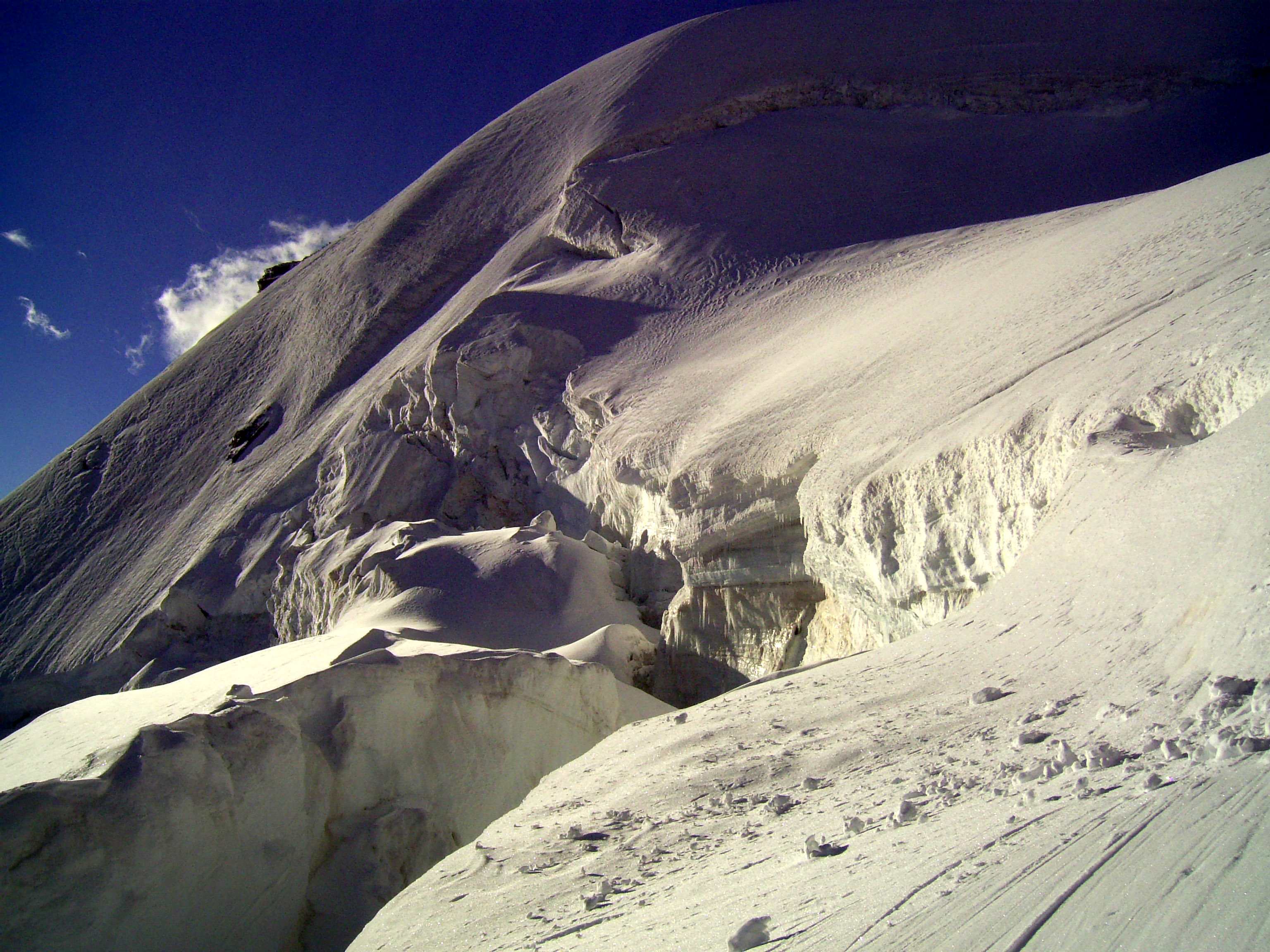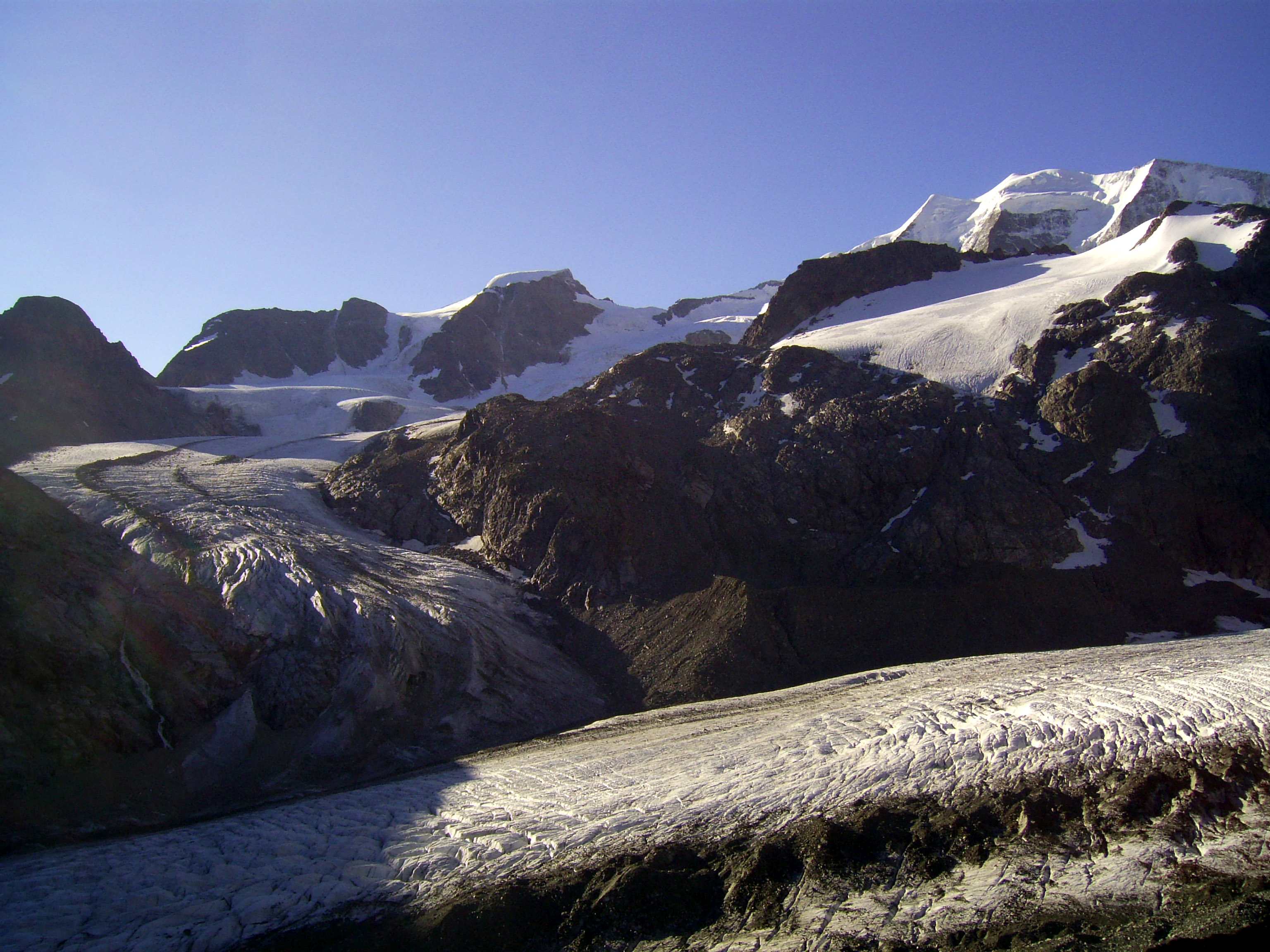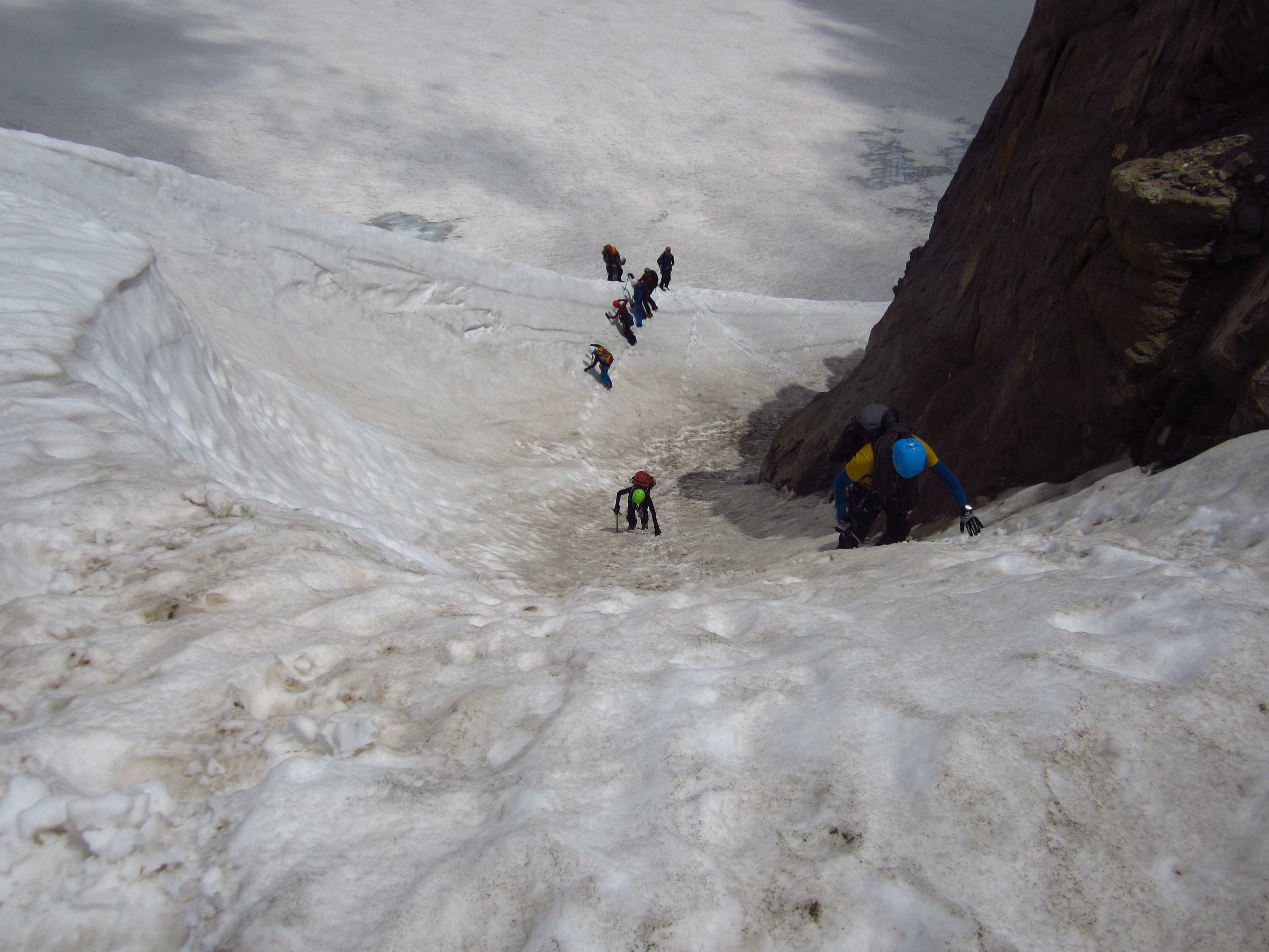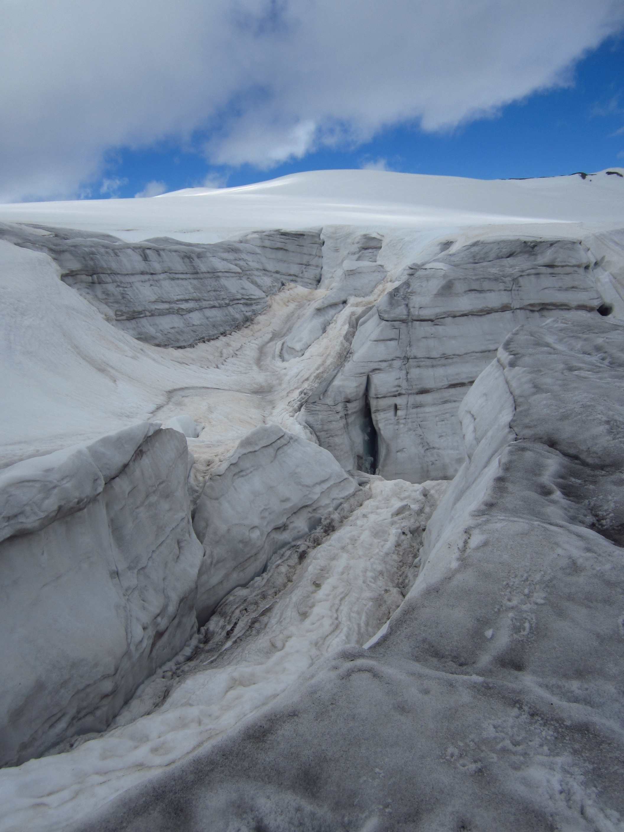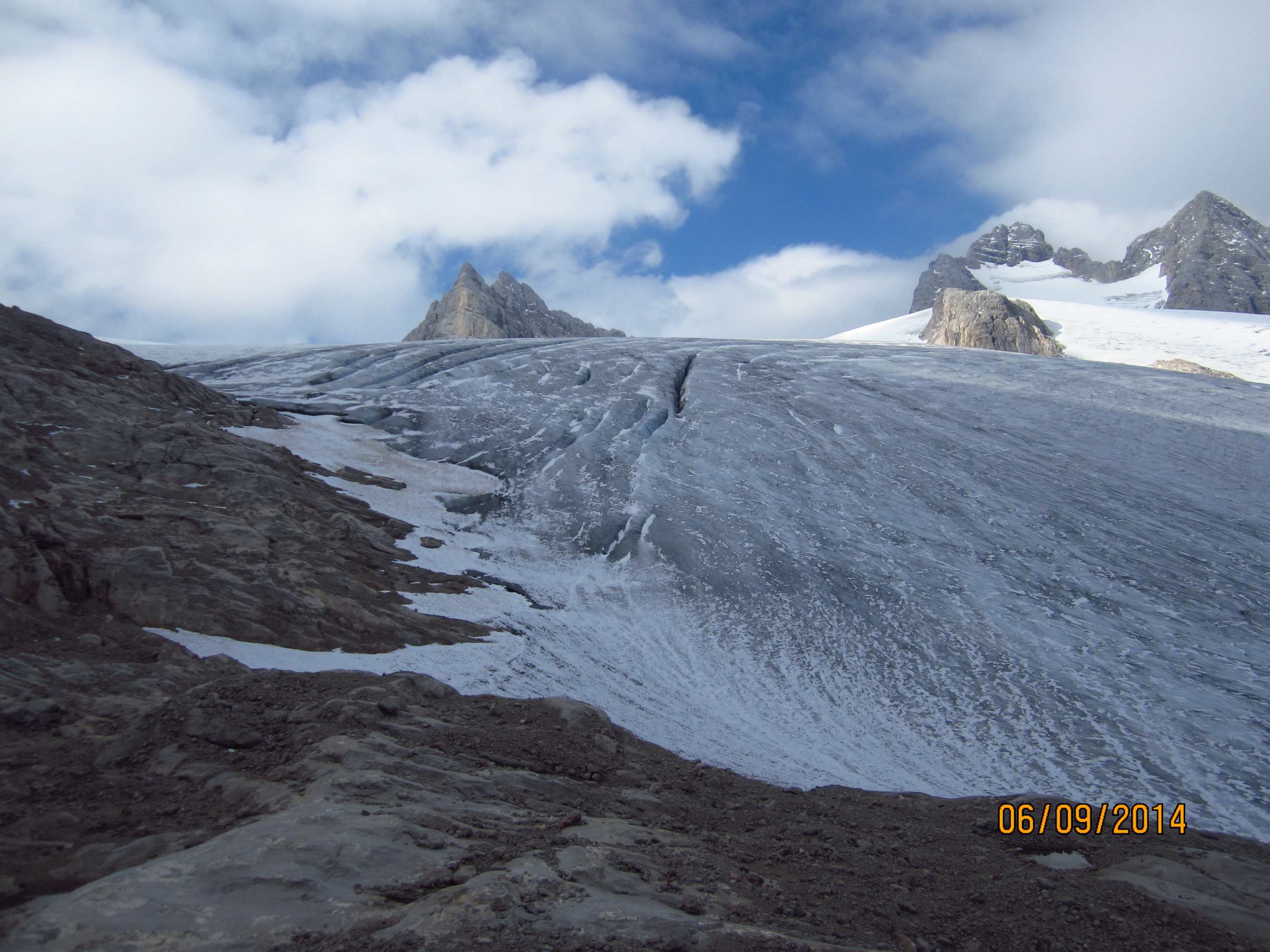 Aufstieg von Vent zur Martin-Busch-Hütte, dort Arbeitseinsatz auf dem Dach der Hütte. Besteigung Kreuzspitze bis ca. 50m vorm Gipfelkreuz weil Gewitter. Übergang zur Similaun Hütte über die Ötzi Fundstelle, Hochferner, Hochjochhospiz zur Breslauer Hütte. Versuch Besteigung Wildspitze bis Mitterkarjoch, dann Umdrehen wegen Schneesturm. Abstieg nach Vent.