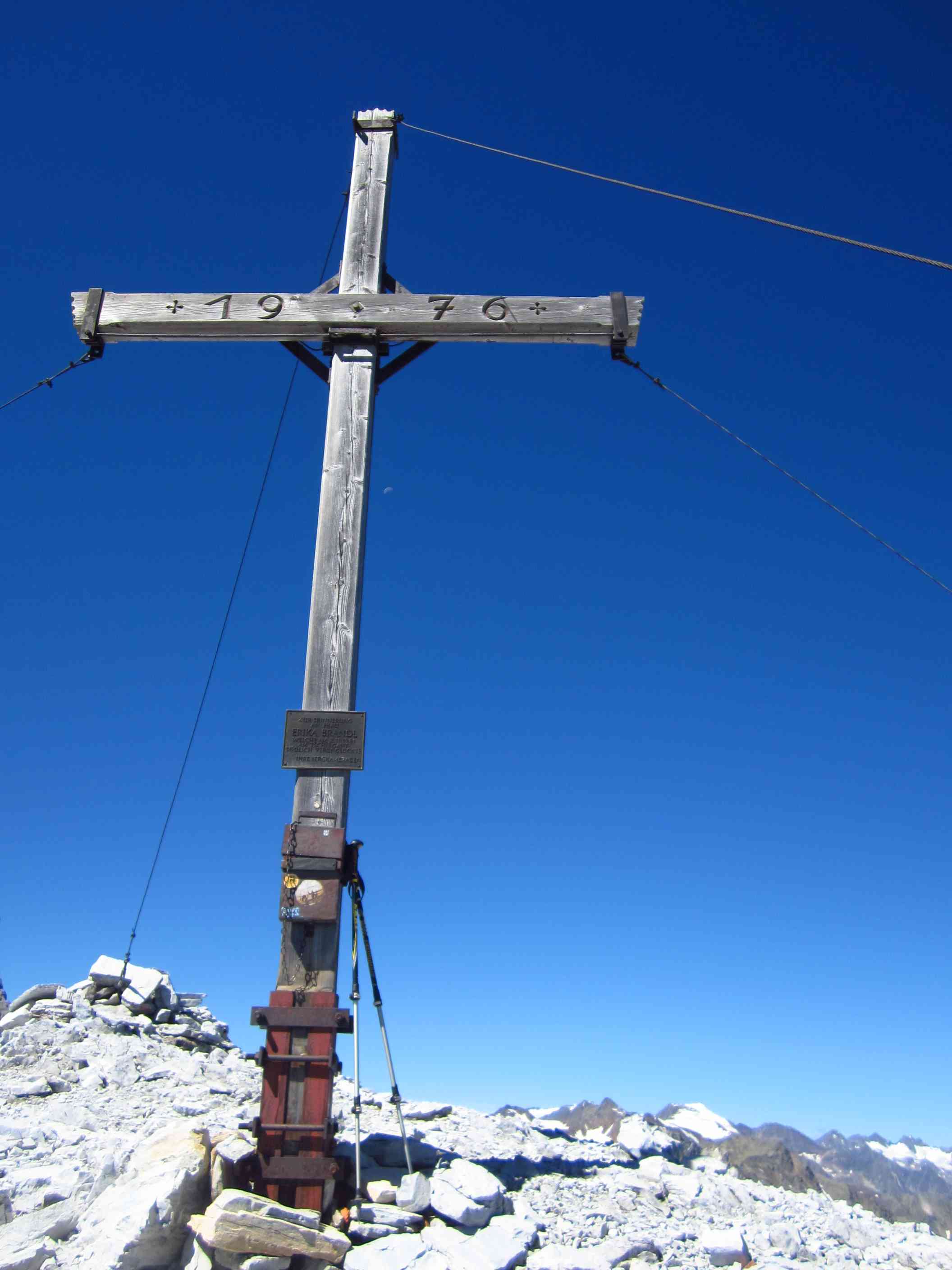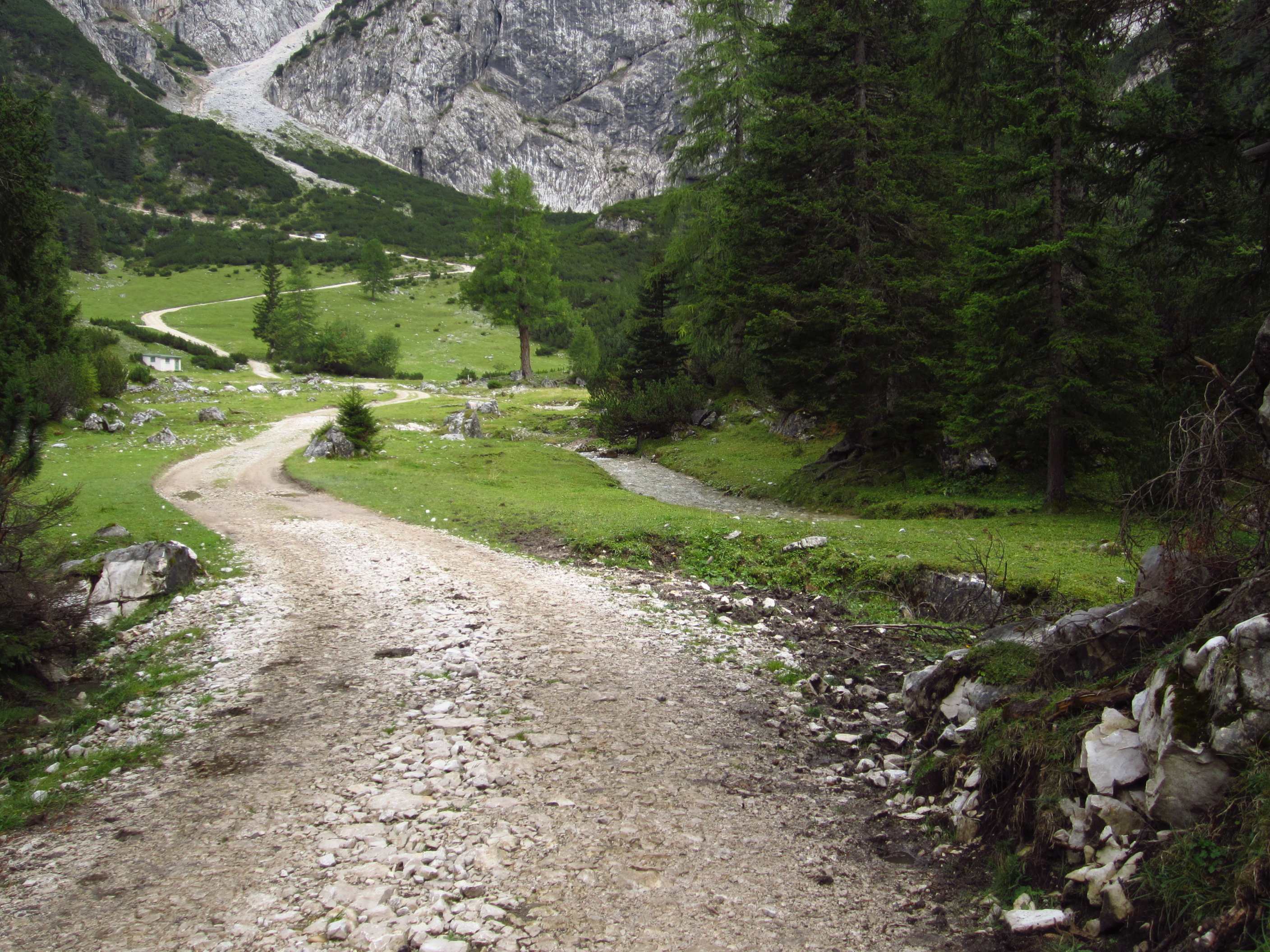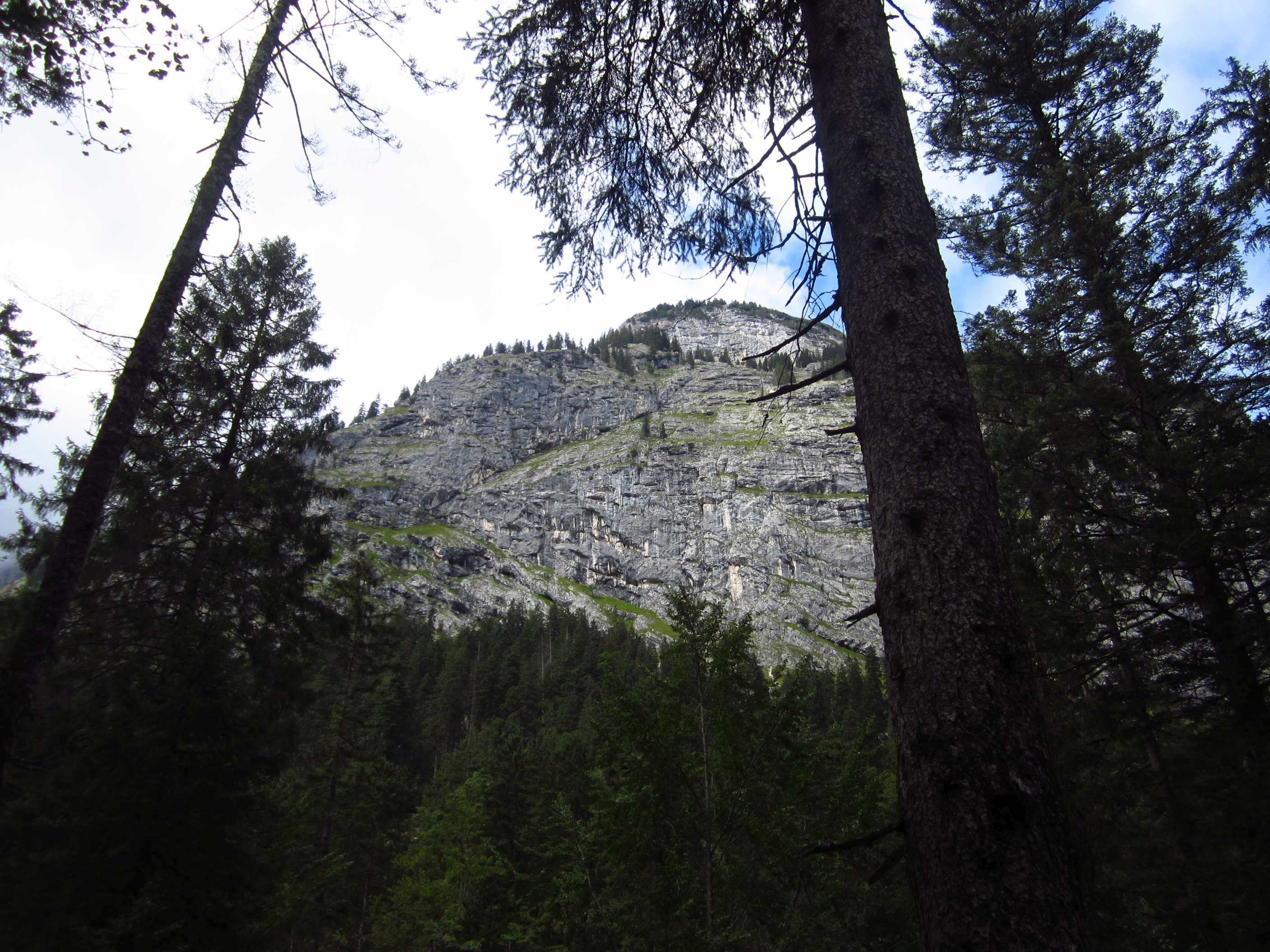 Dann weiter am Hang entlang und dann eine Schotterrinne rauf in Serpentinen, dann über Wiesen und Bäume entlang und dann durch Wald Abstieg, dort an ner kleinen Alm war ein Pärchen die uns auf ein Bier einluden, der erklärte uns dann dass er vor 30 Jahren das Kreuz unterhalb des Lafatscher Jochs im Andenken an Kameraden mit aufstellte, vorher war dort da eines aus Holz und verrottet…