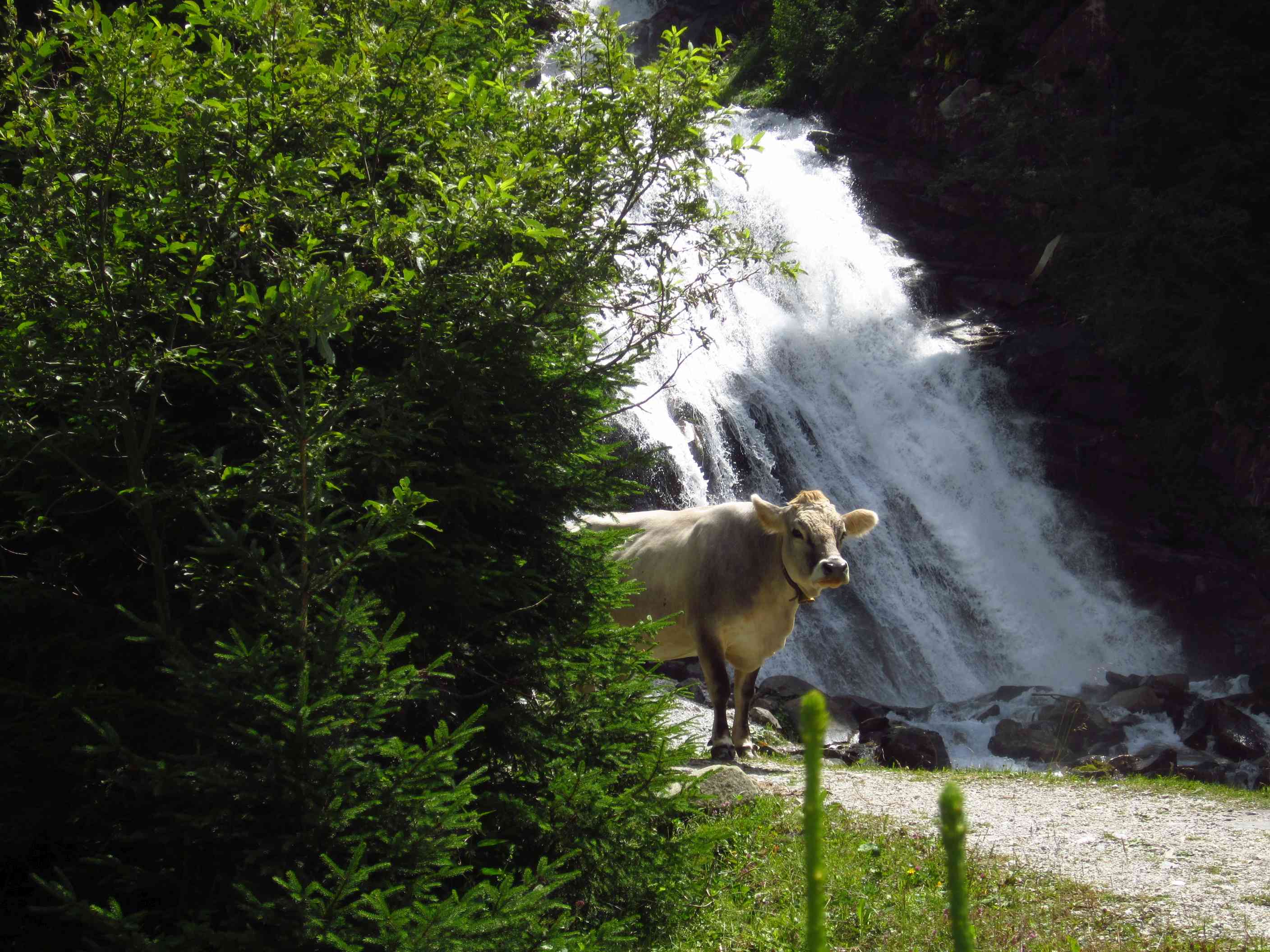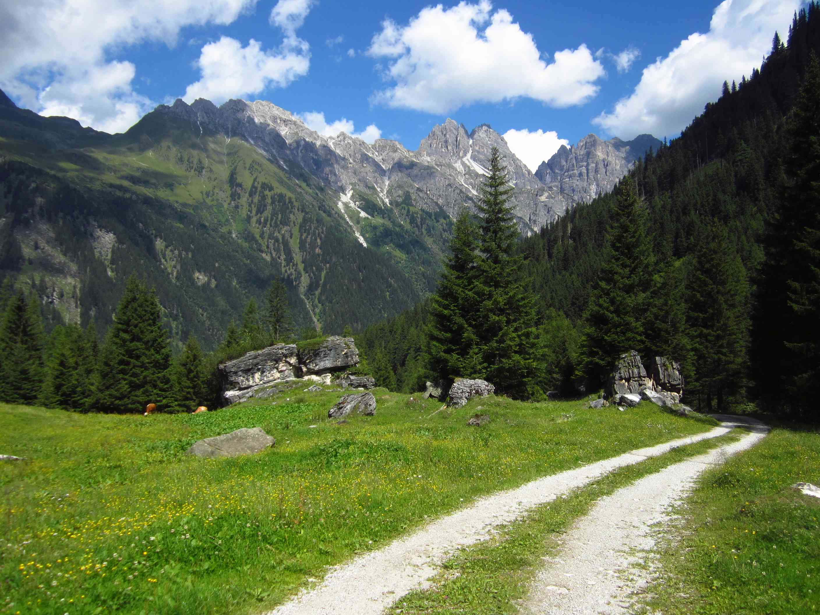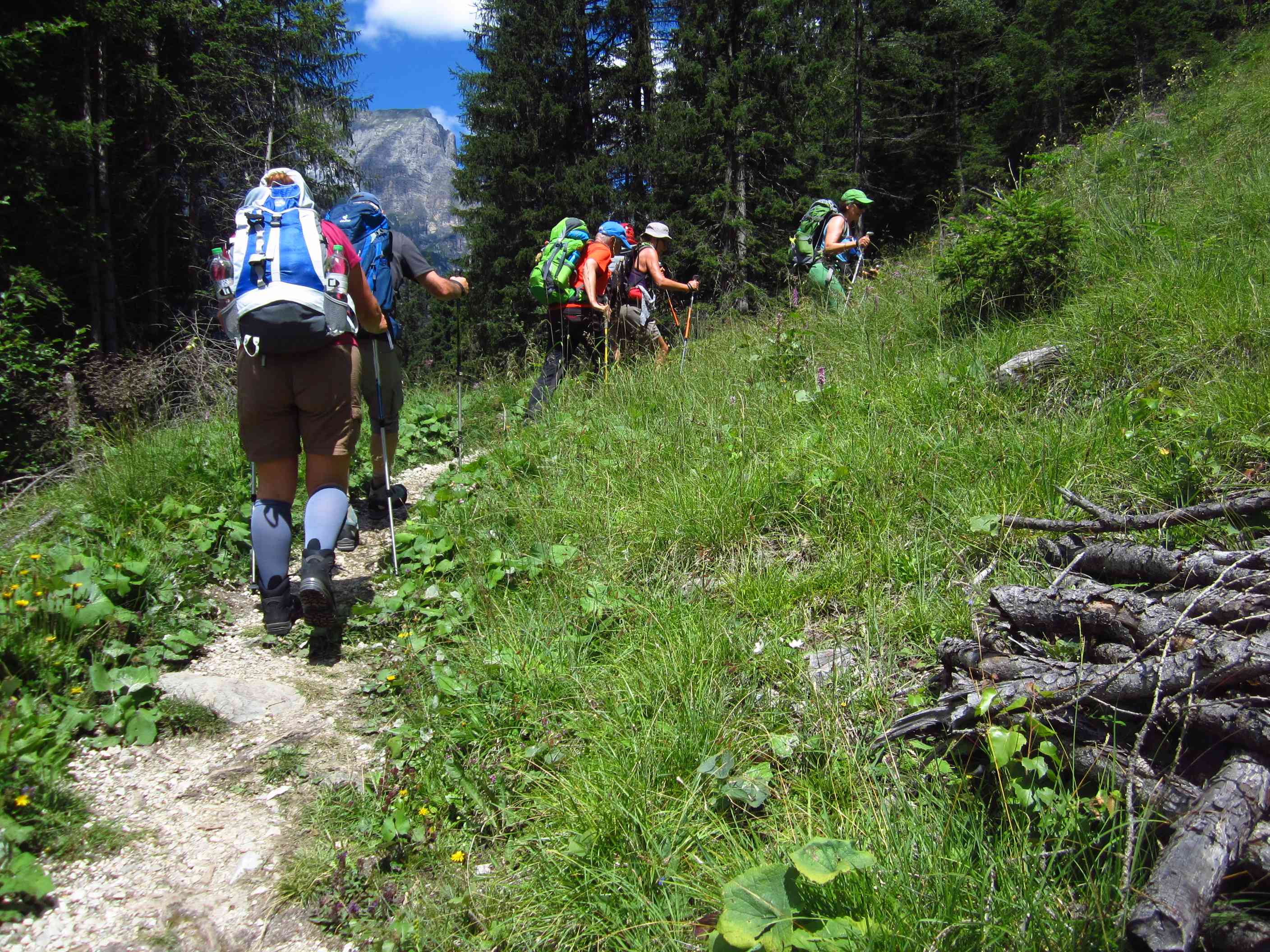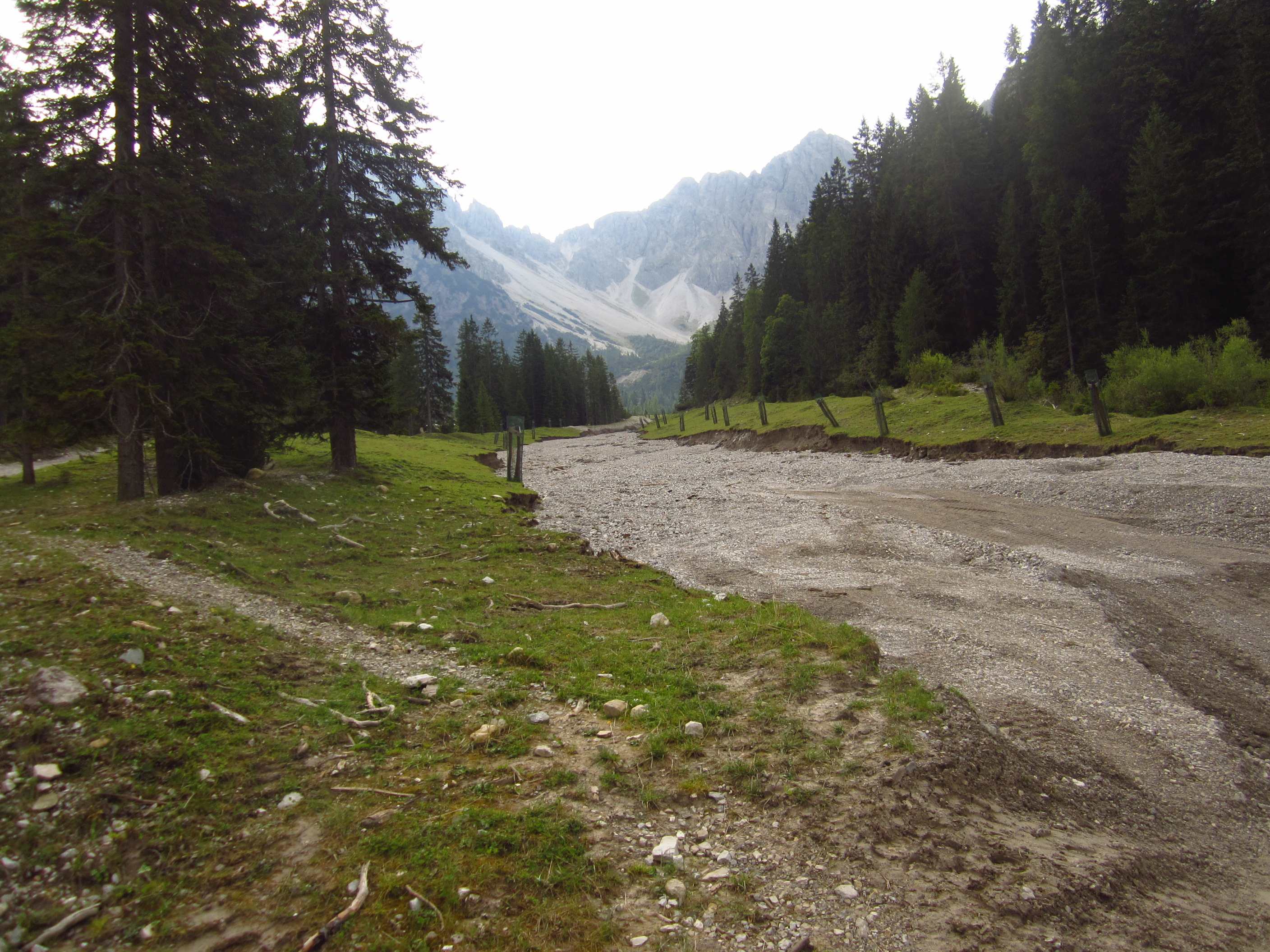 Dann weiter am Hang entlang und dann eine Schotterrinne rauf in Serpentinen, dann über Wiesen und Bäume entlang und dann durch Wald Abstieg, dort an ner kleinen Alm war ein Pärchen die uns auf ein Bier einluden, der erklärte uns dann dass er vor 30 Jahren das Kreuz unterhalb des Lafatscher Jochs im Andenken an Kameraden mit aufstellte, vorher war dort da eines aus Holz und verrottet…