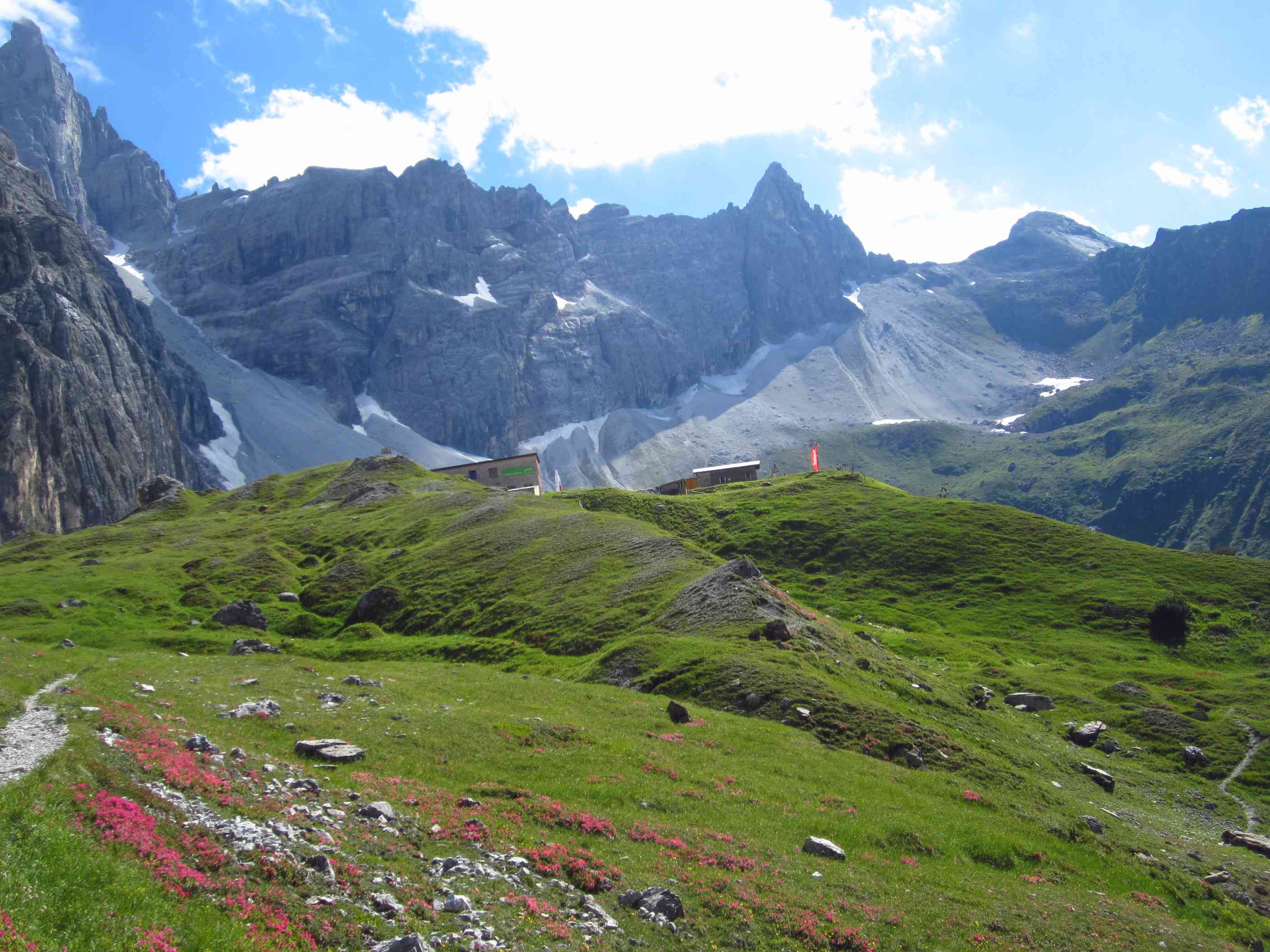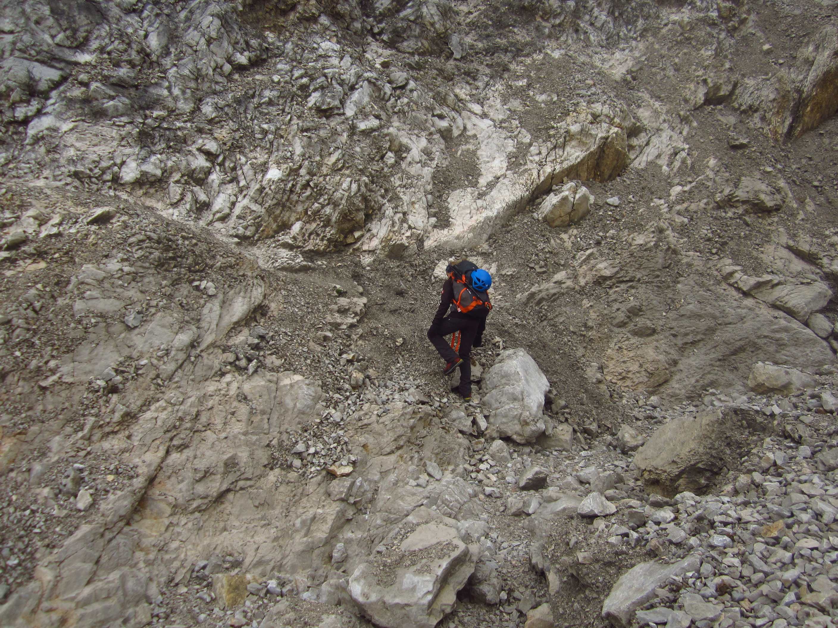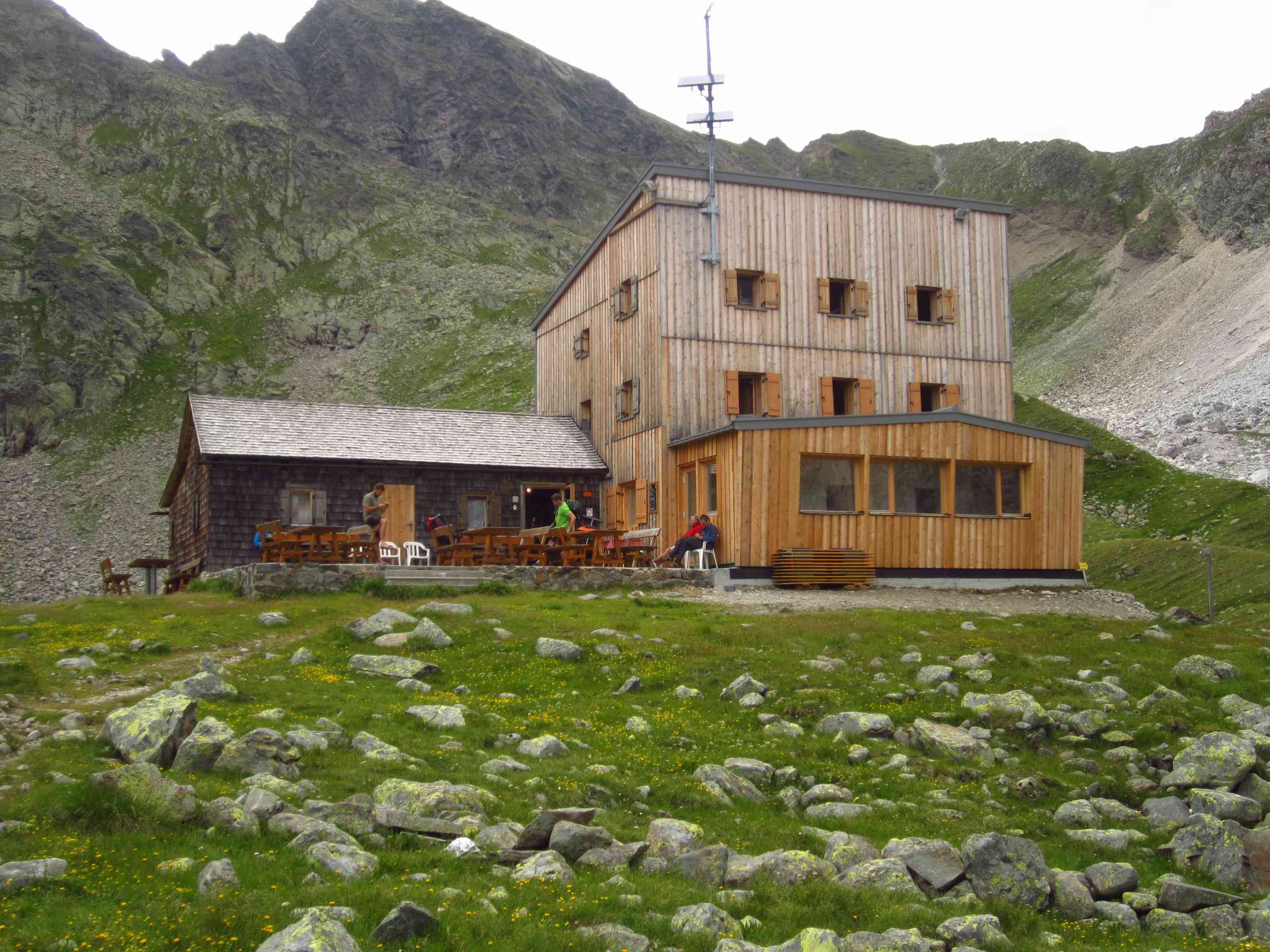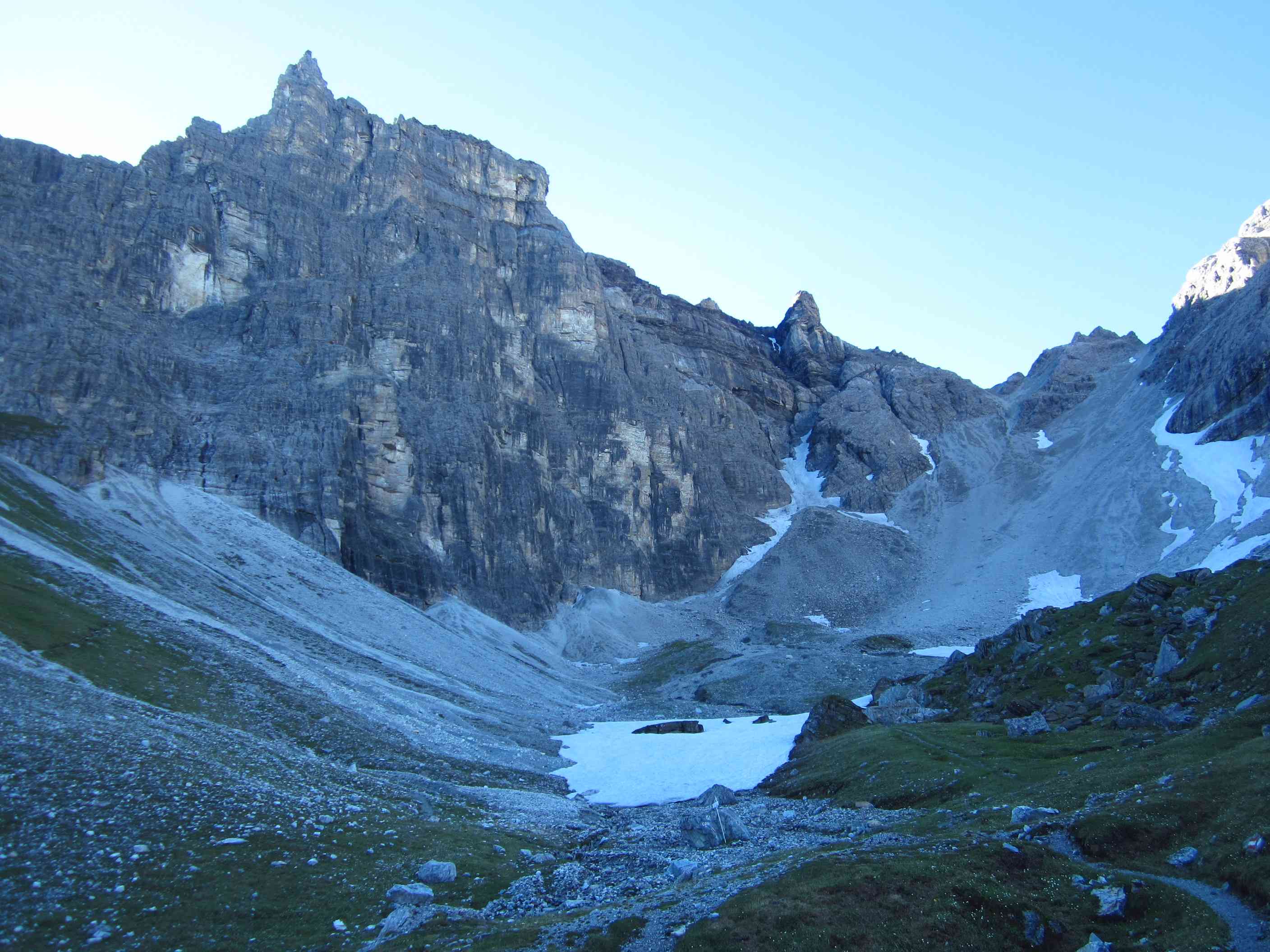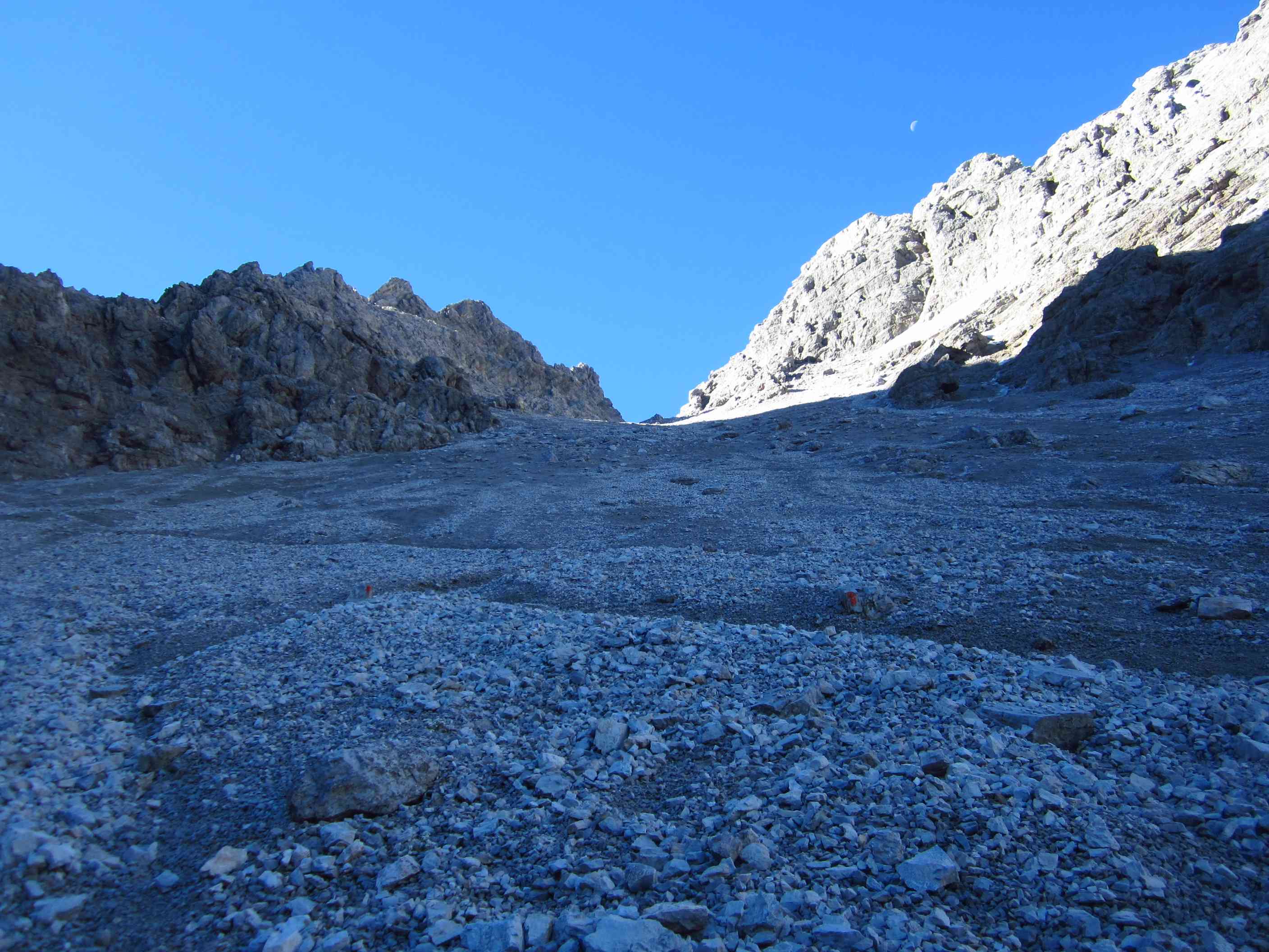 Also von der Hütte zunächst über Bergwege und dann in Serpentinen den Geröllhang hoch zur Scharte, dann wieder Geröllhangabstieg.