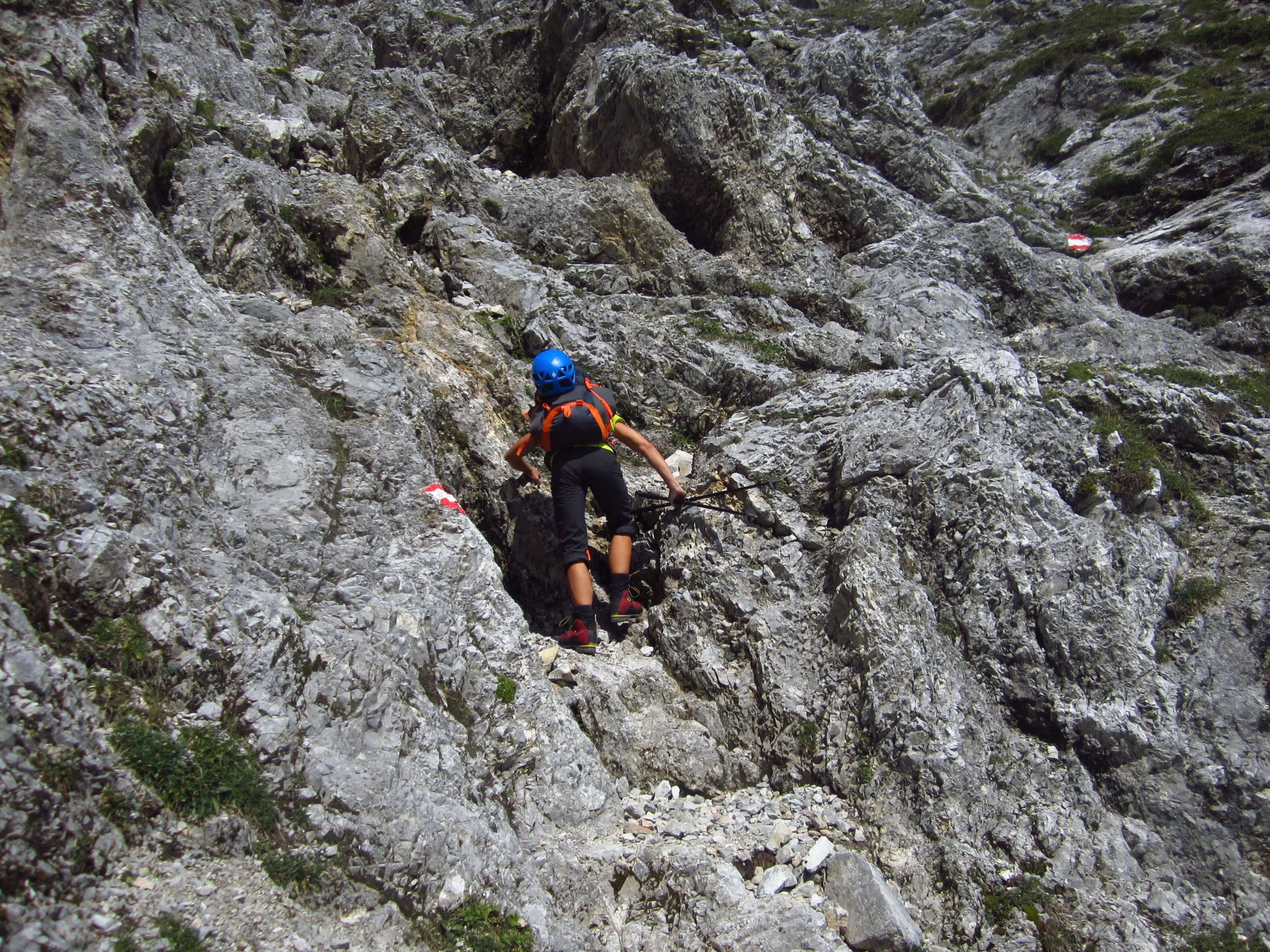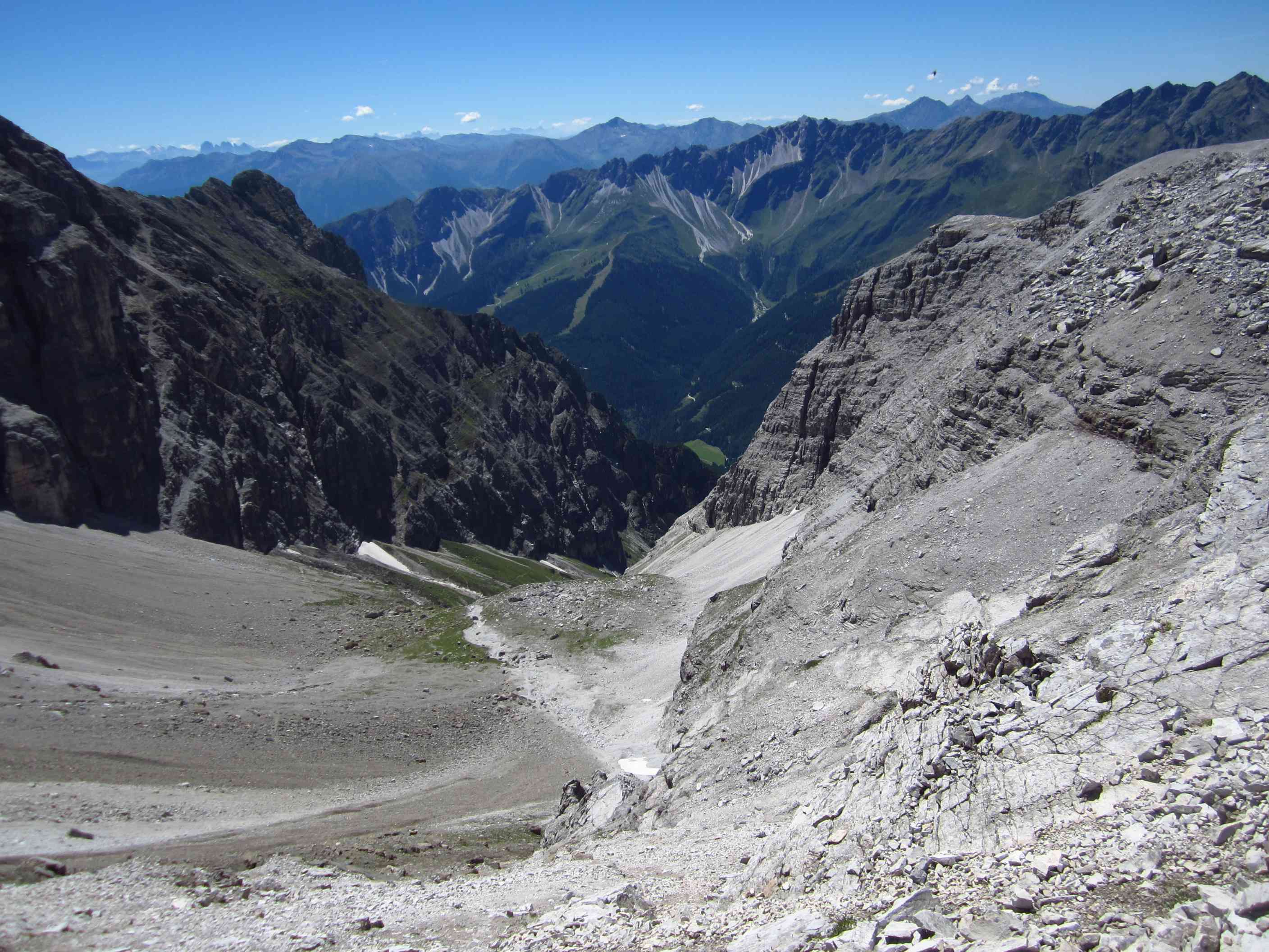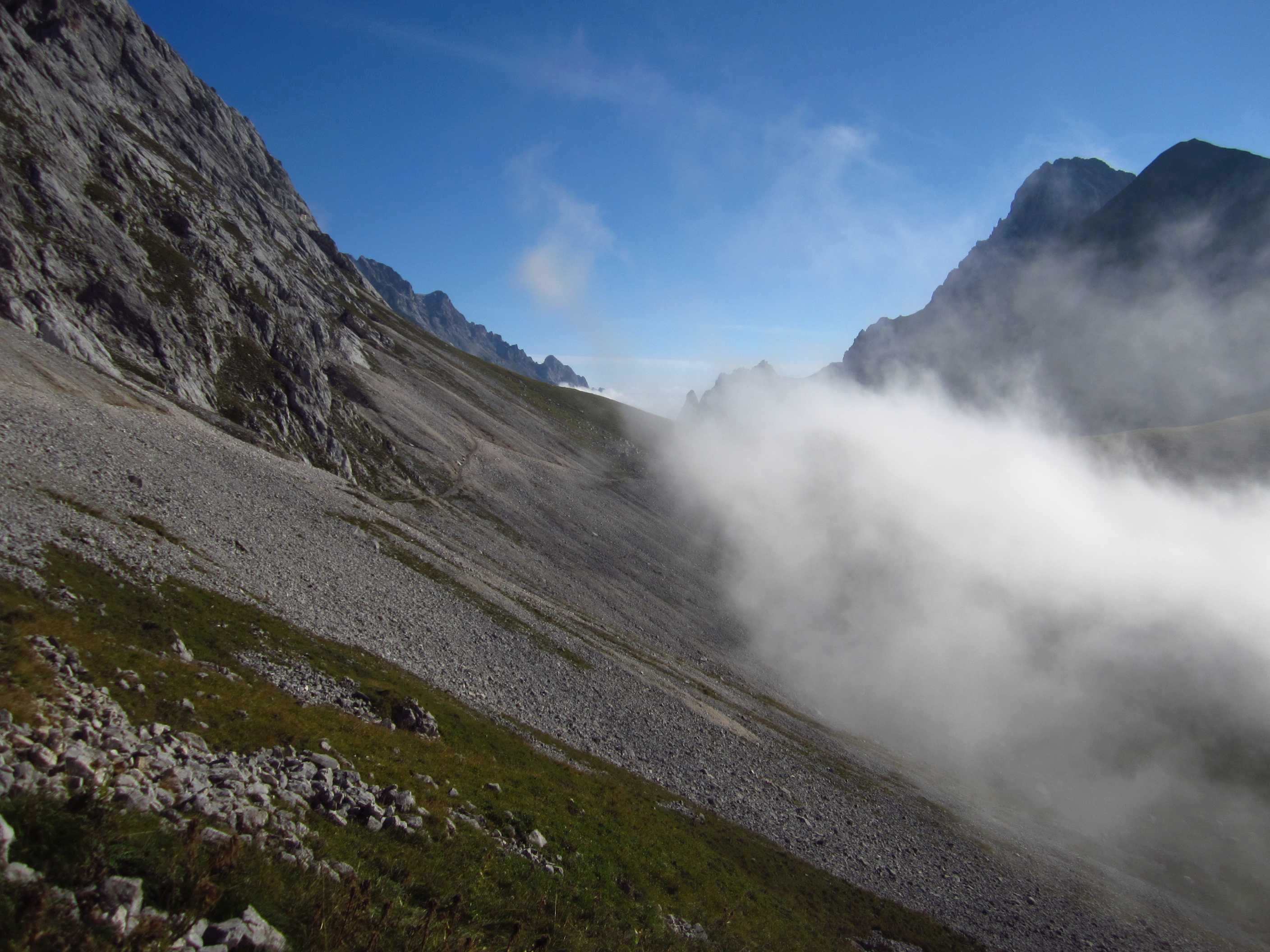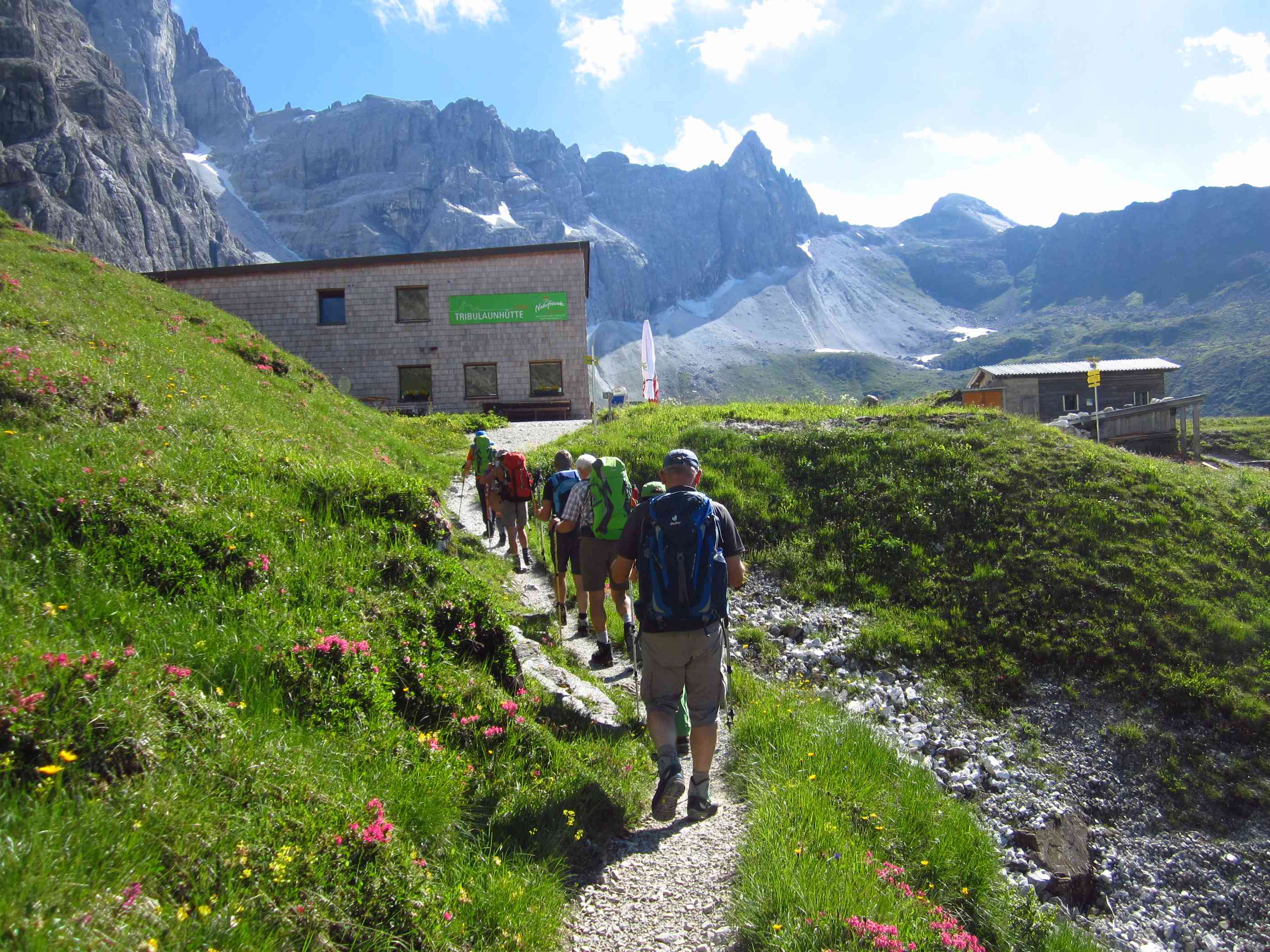 Also von der Hütte zunächst über Bergwege und dann in Serpentinen den Geröllhang hoch zur Scharte, dann wieder Geröllhangabstieg.