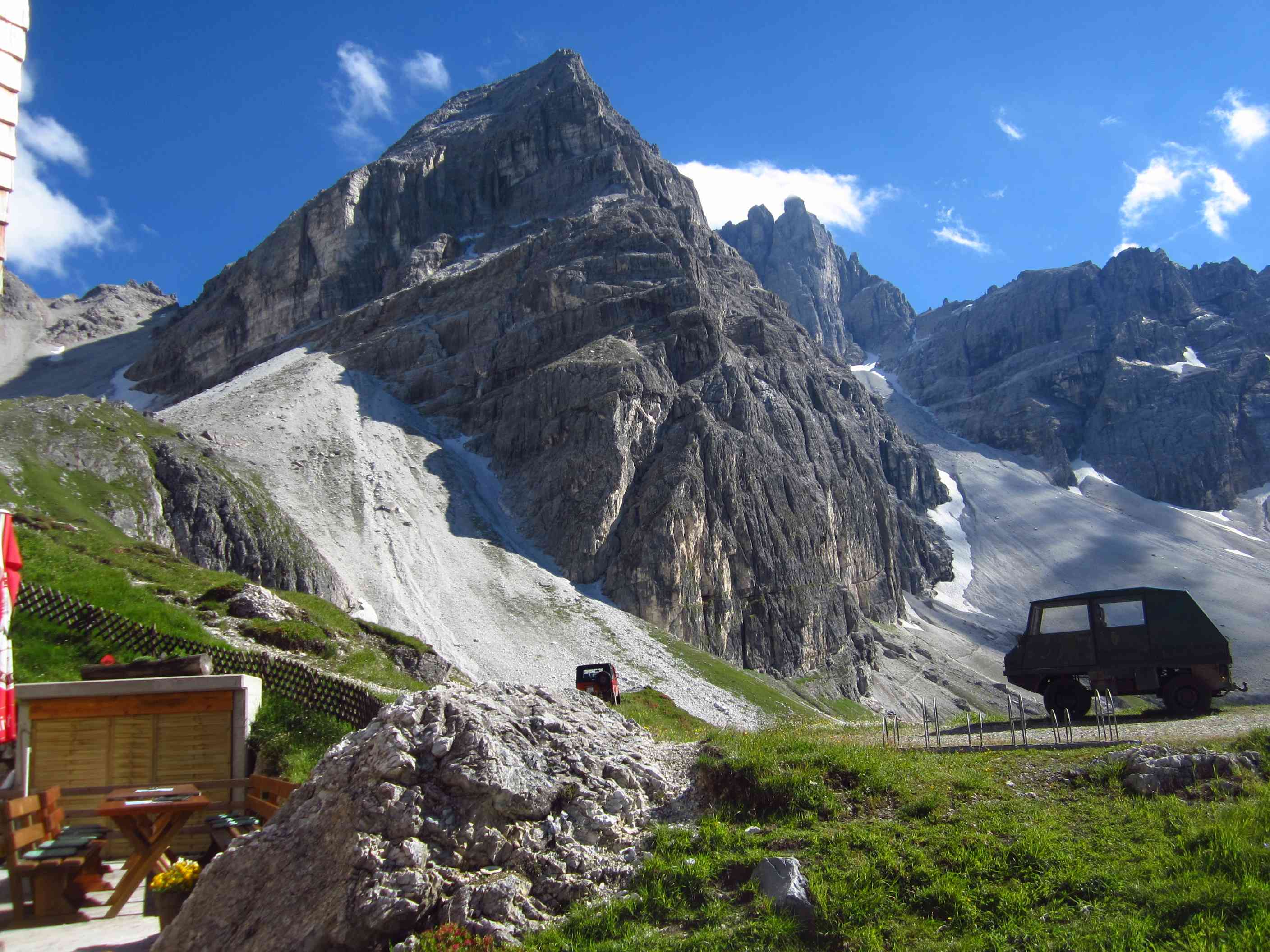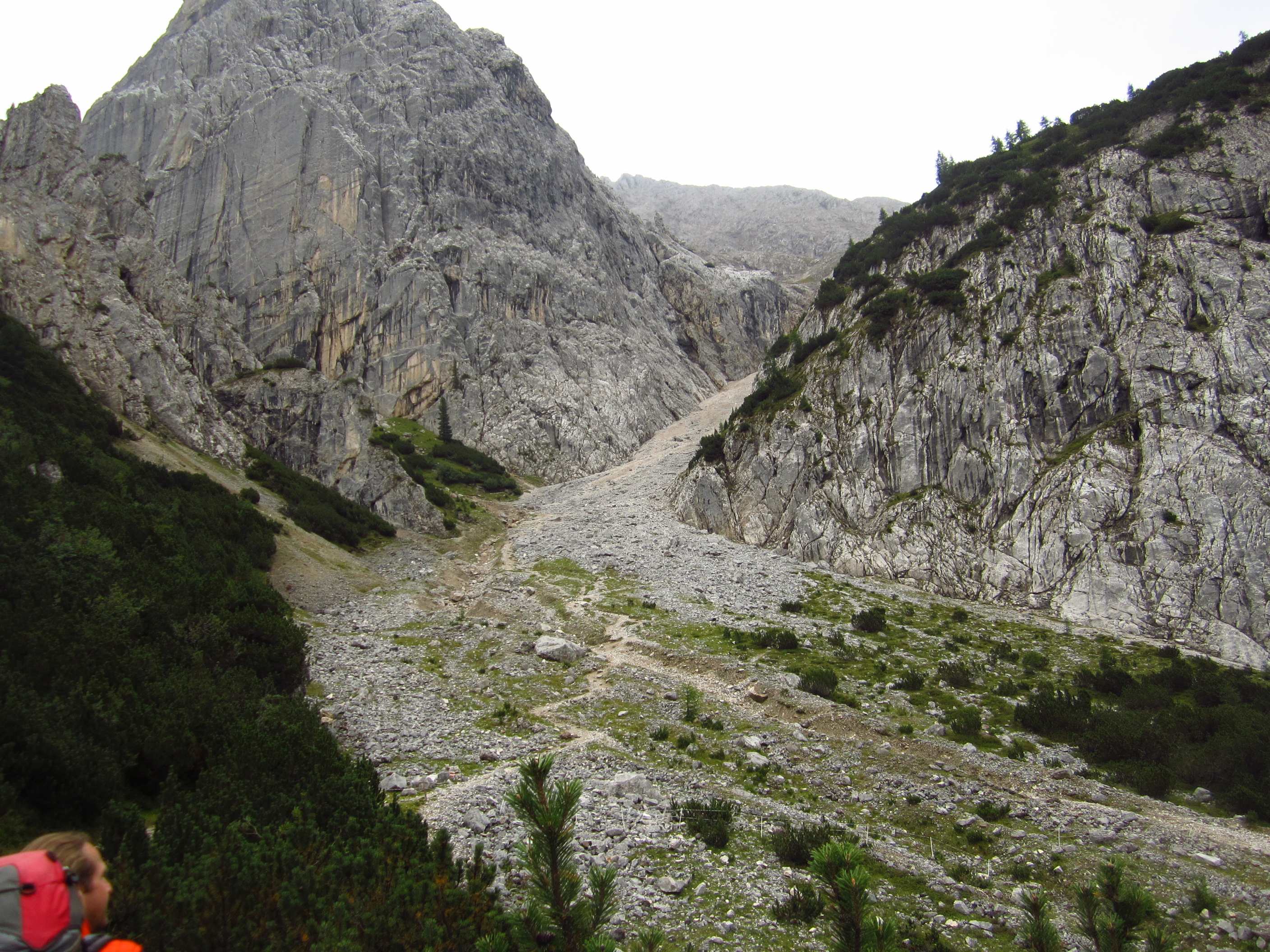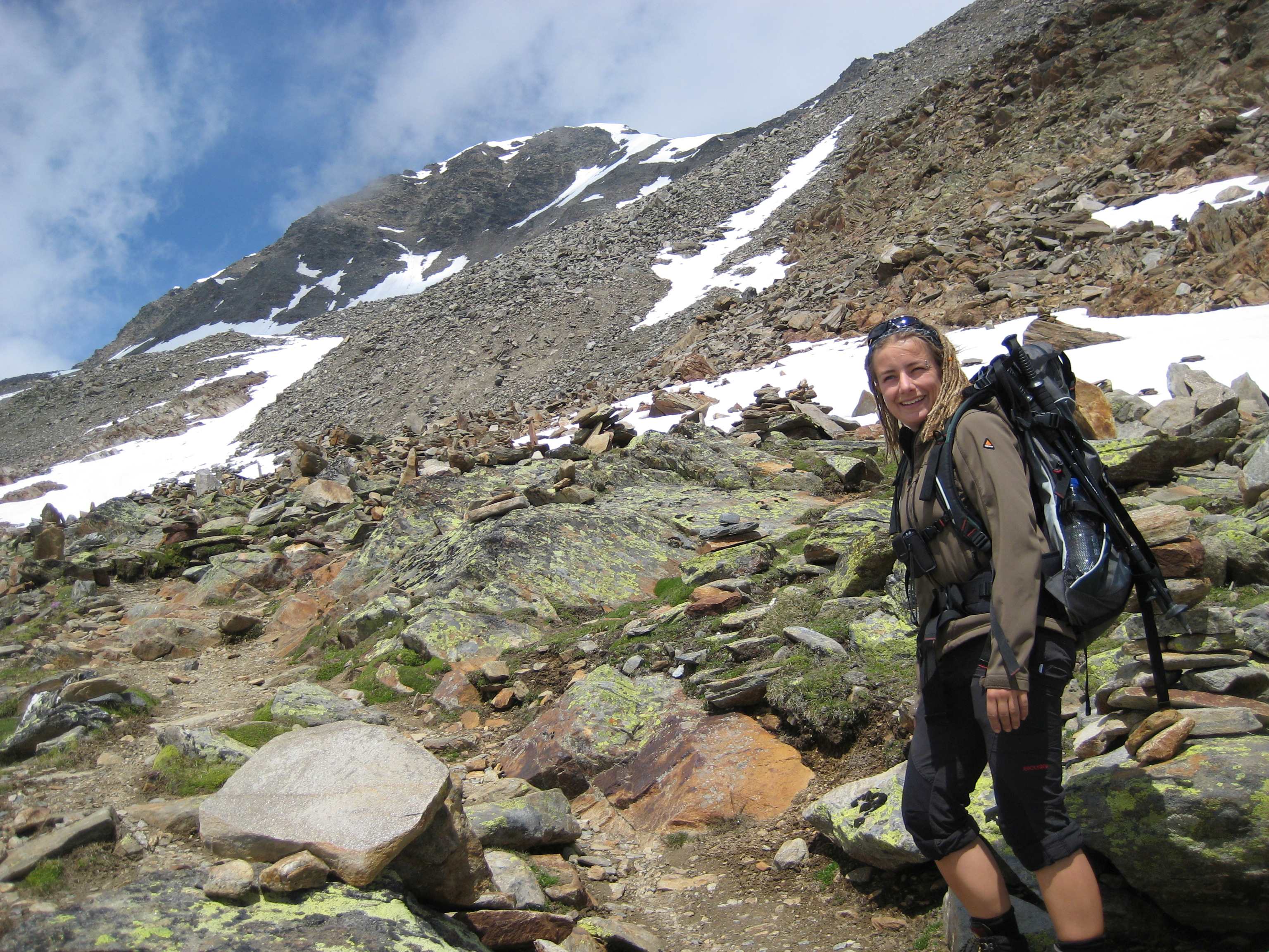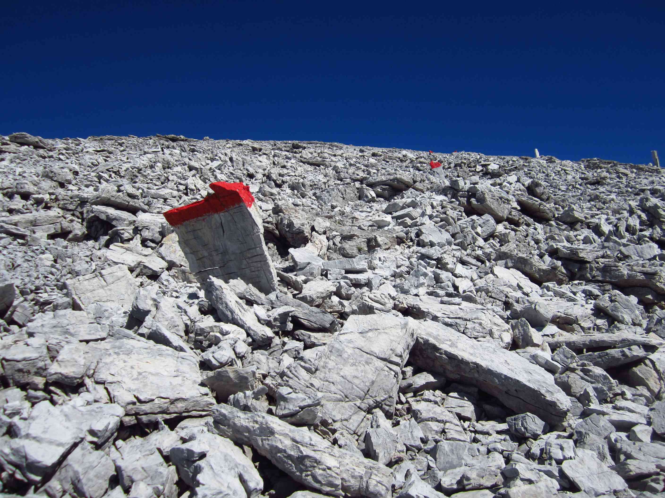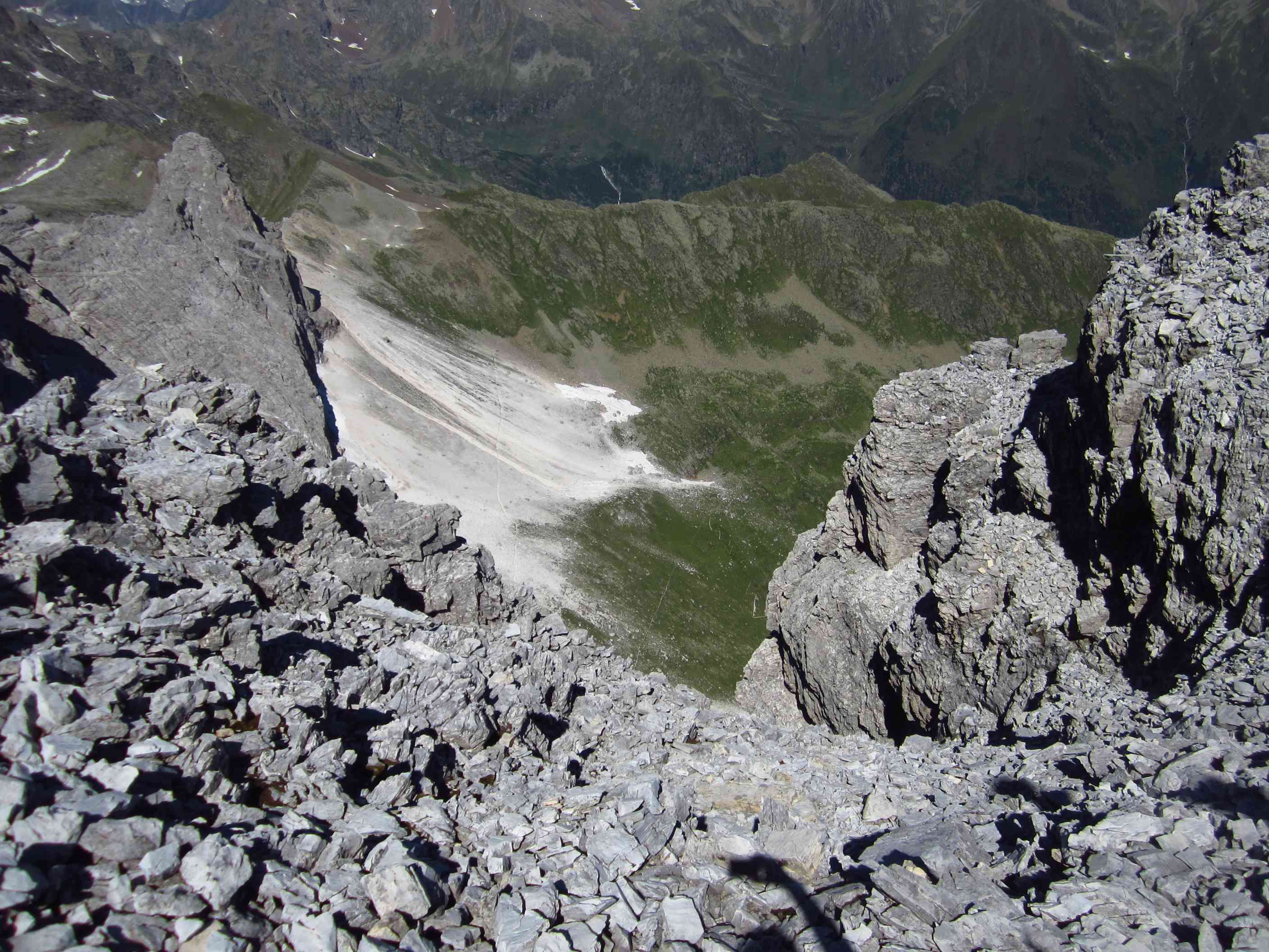 Also von der Hütte zunächst über Bergwege und dann in Serpentinen den Geröllhang hoch zur Scharte, dann wieder Geröllhangabstieg.