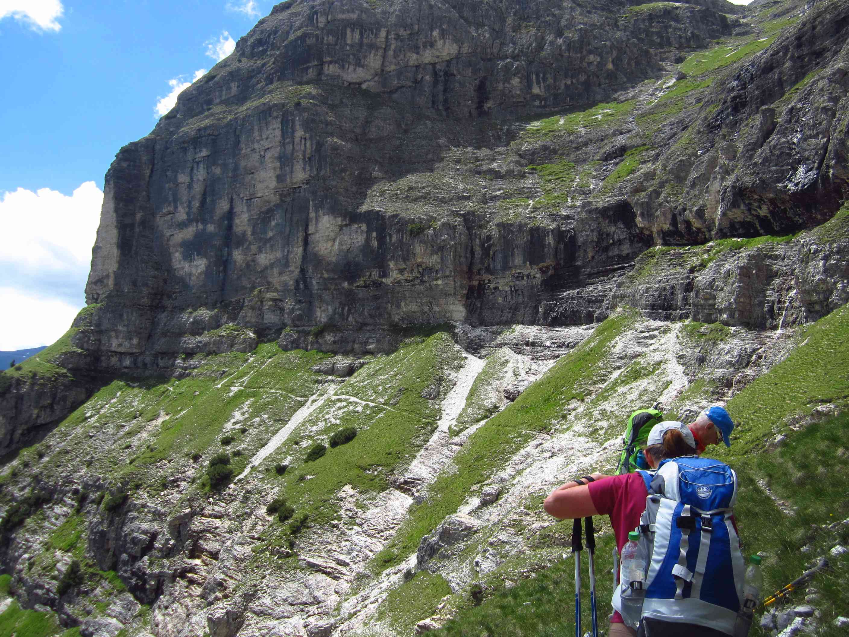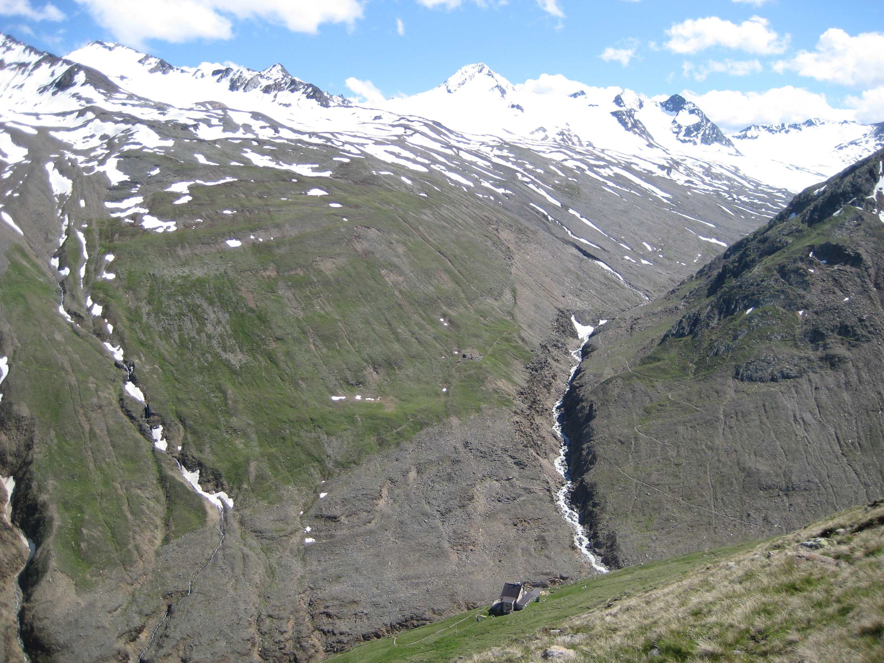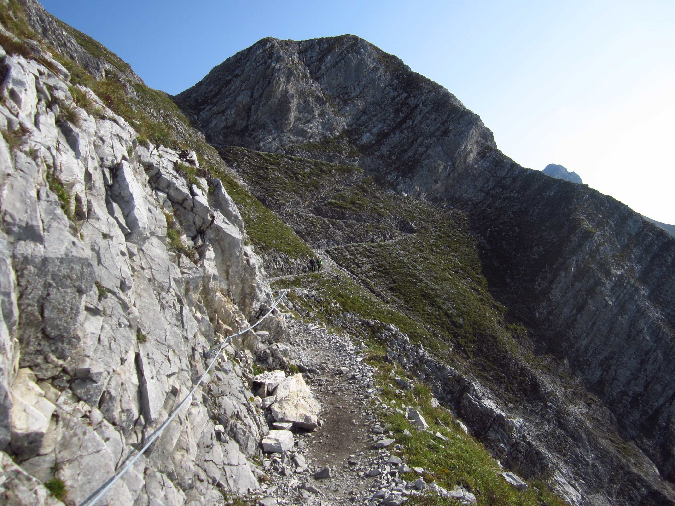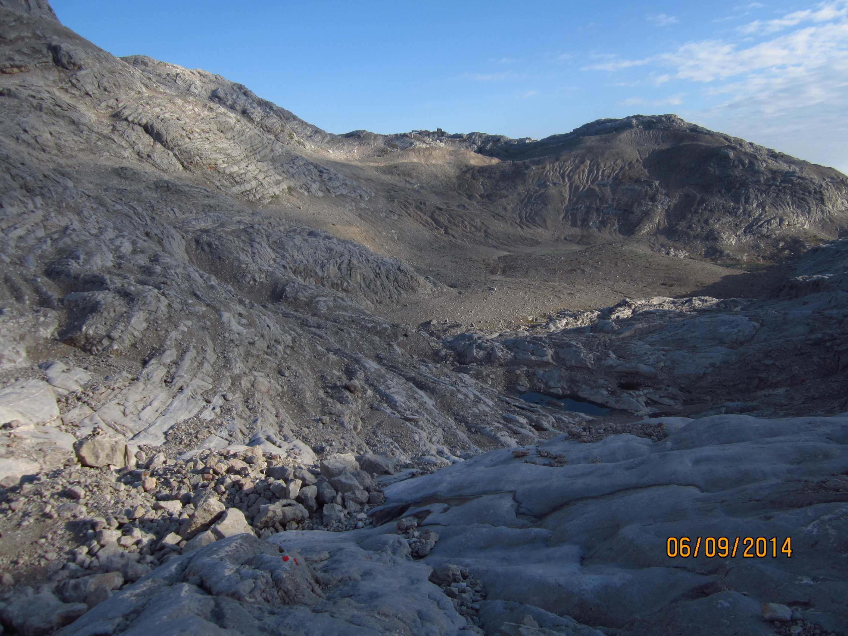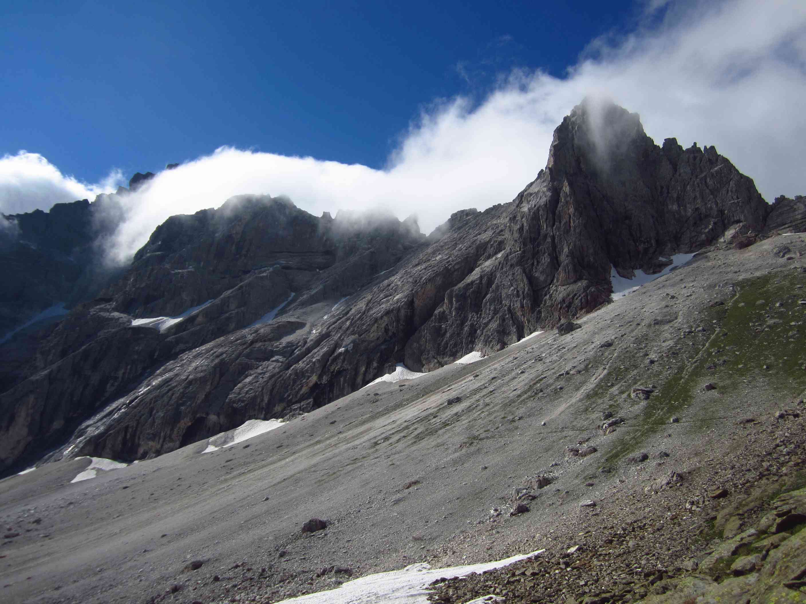 Also von der Hütte zunächst über Bergwege und dann in Serpentinen den Geröllhang hoch zur Scharte, dann wieder Geröllhangabstieg.