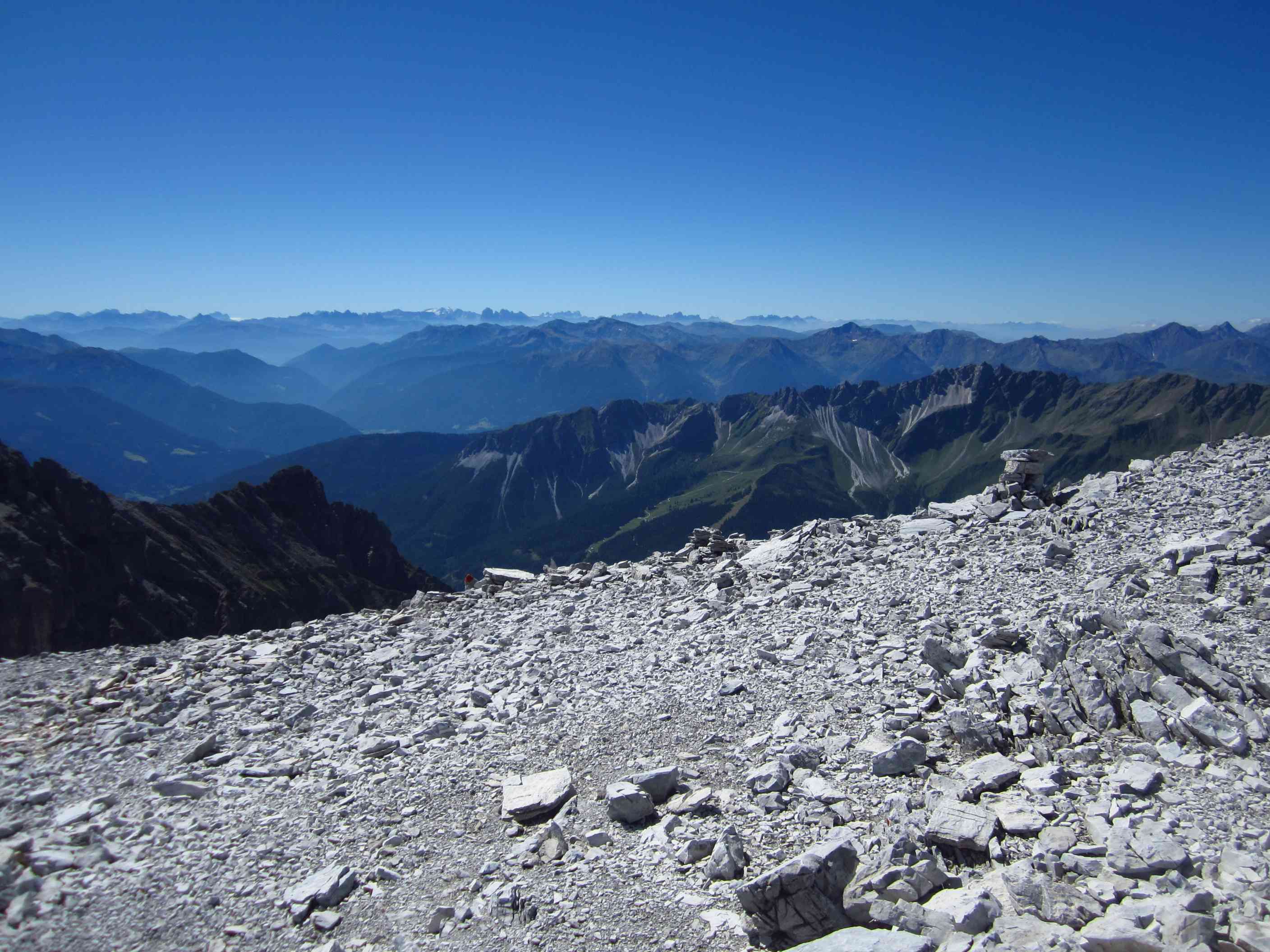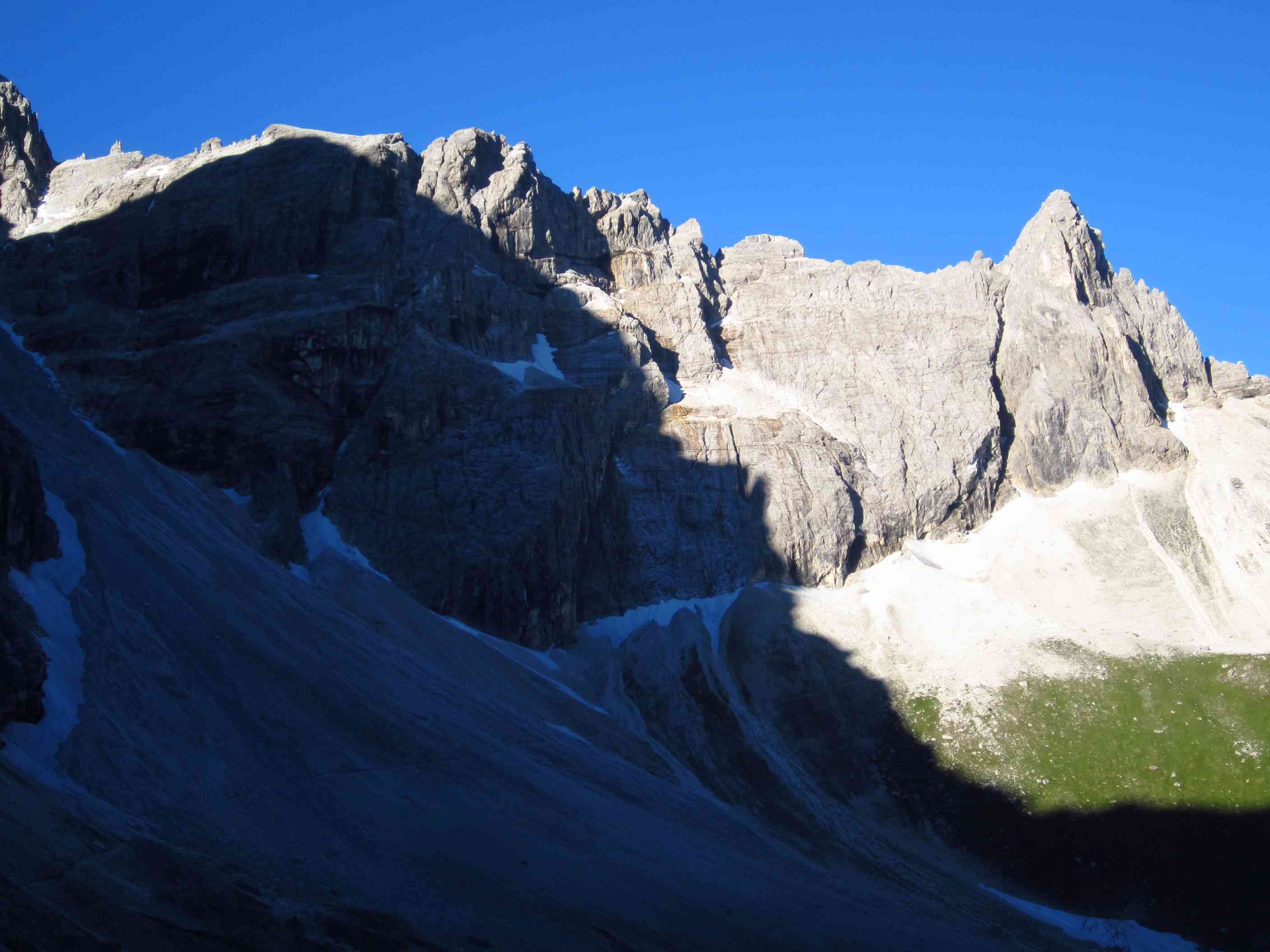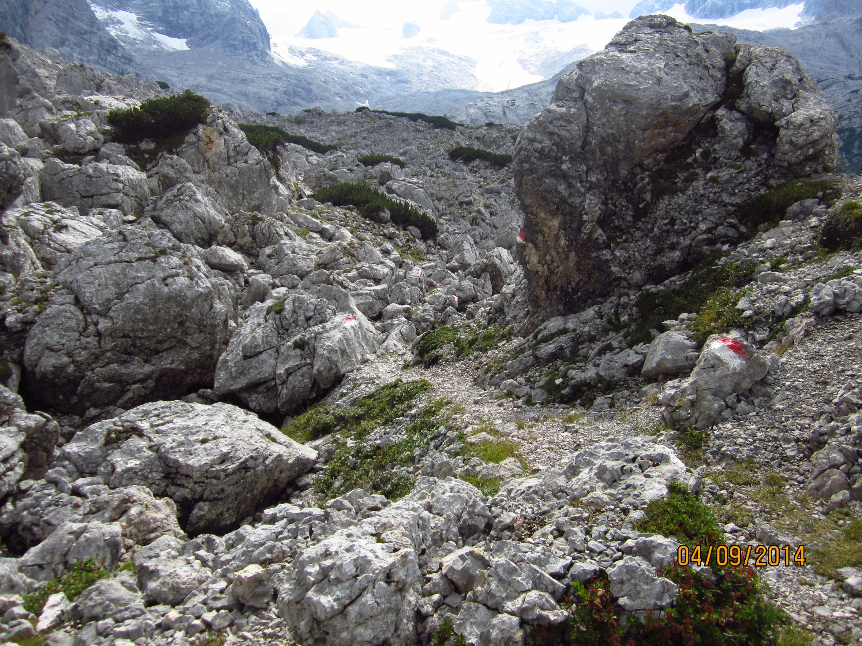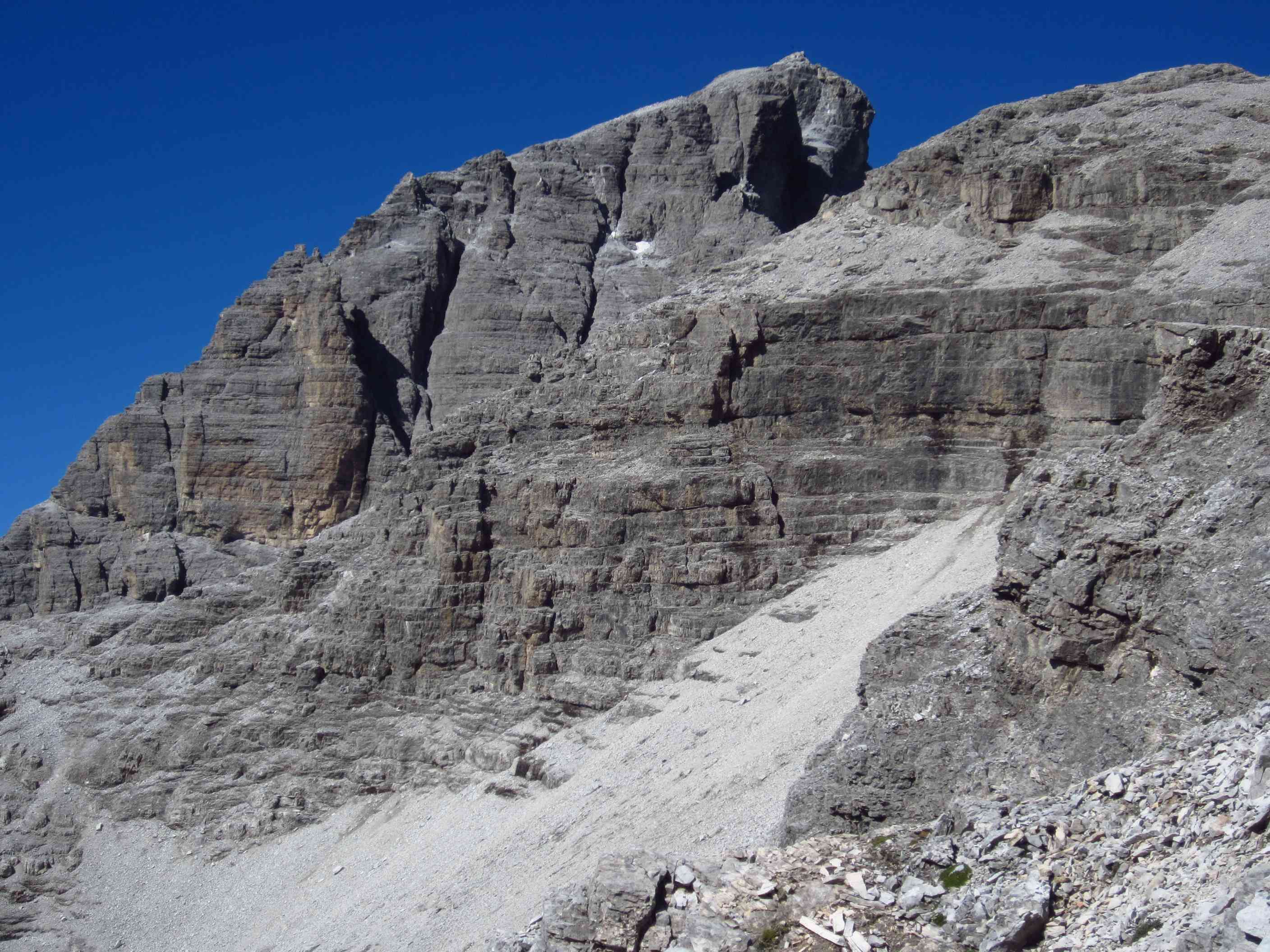 Also von der Hütte zunächst über Bergwege und dann in Serpentinen den Geröllhang hoch zur Scharte, dann wieder Geröllhangabstieg.