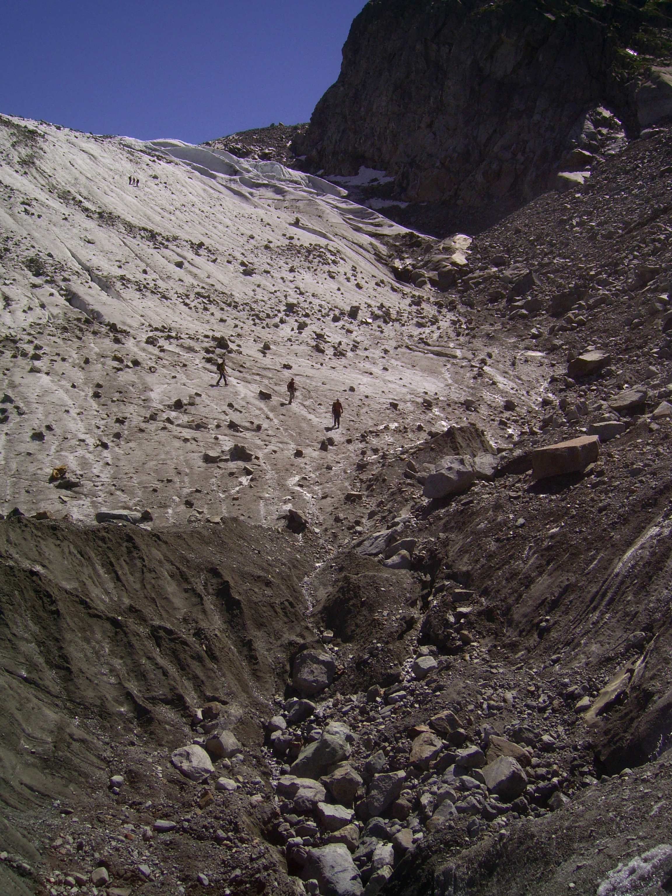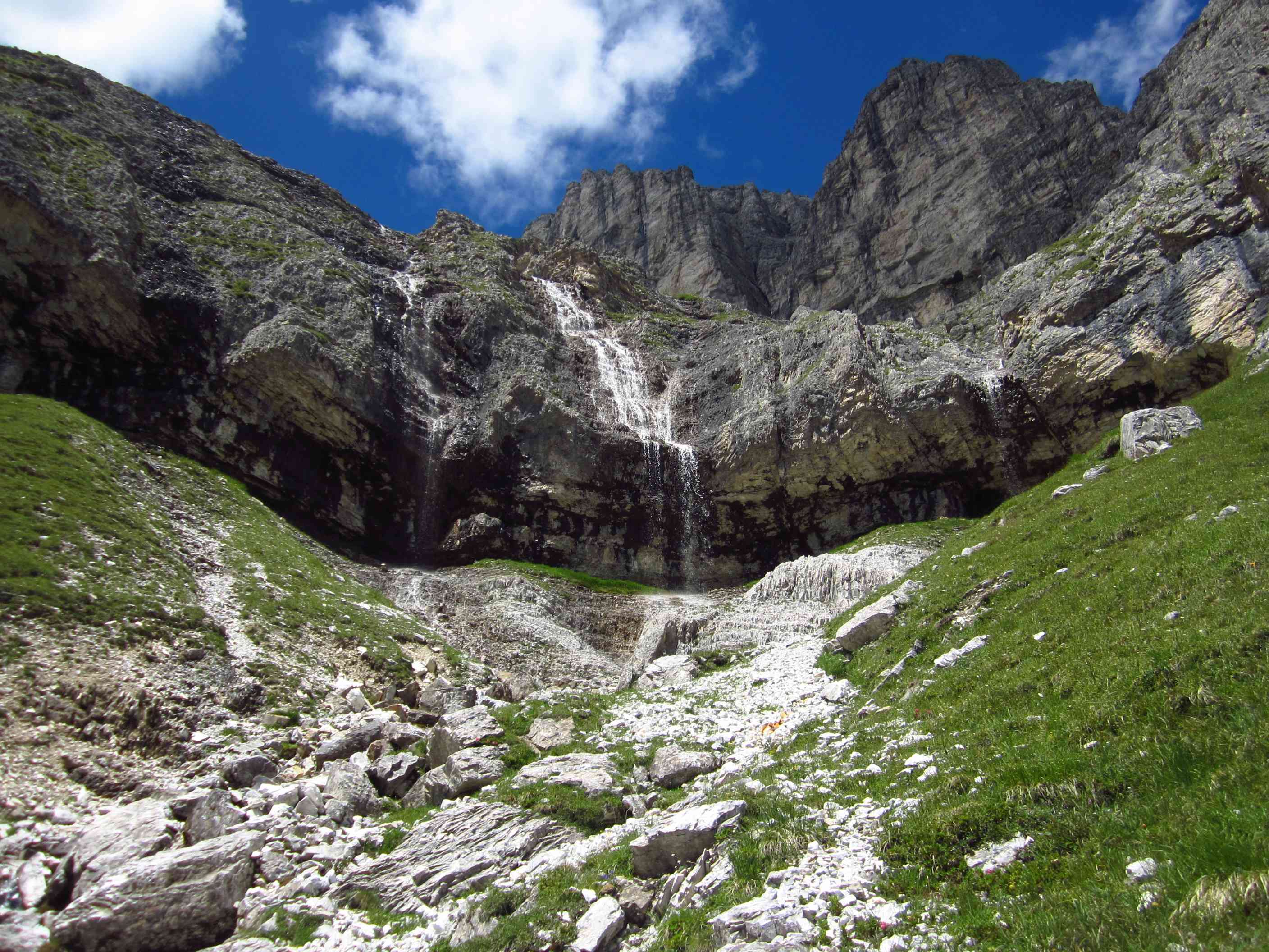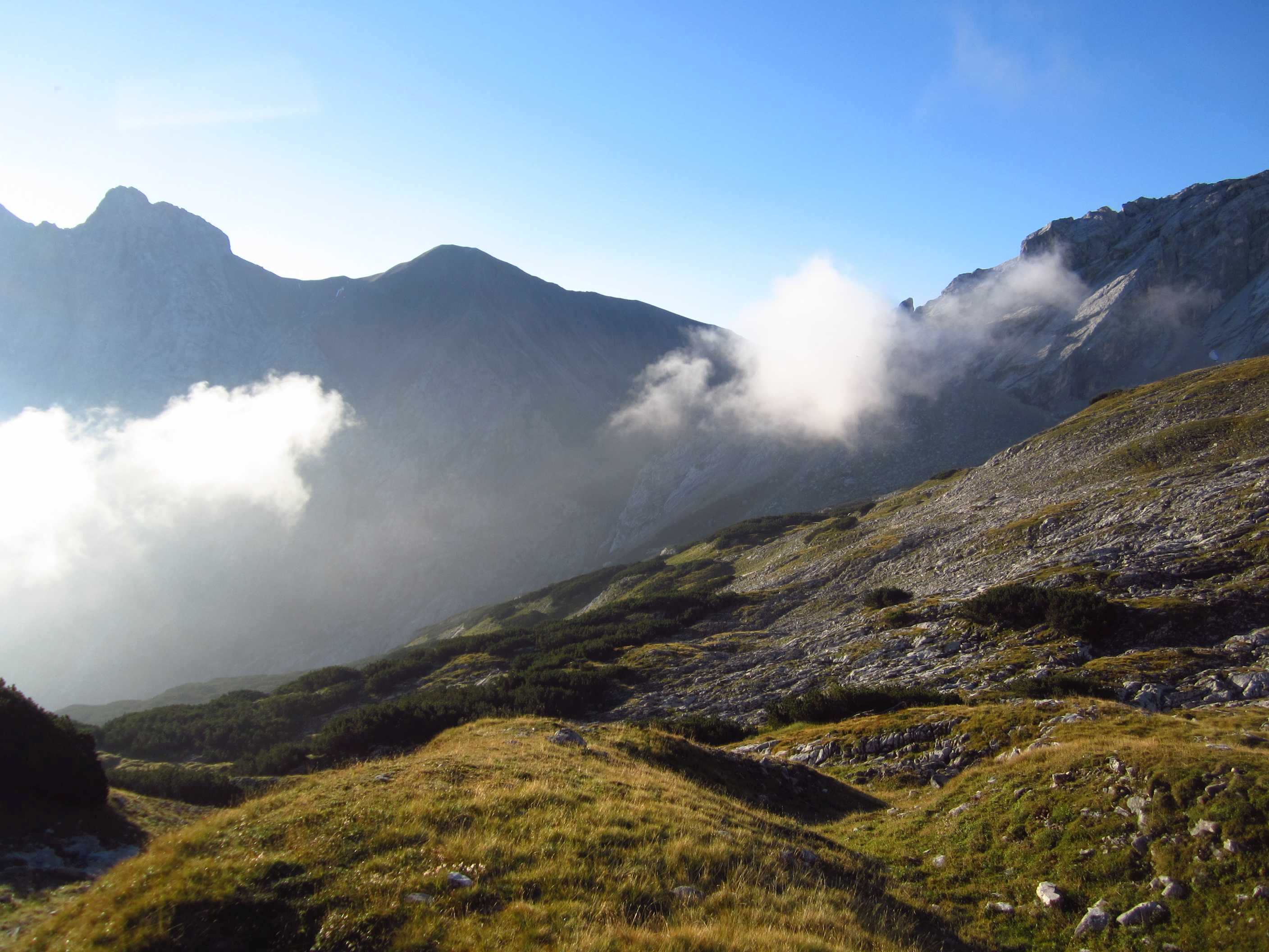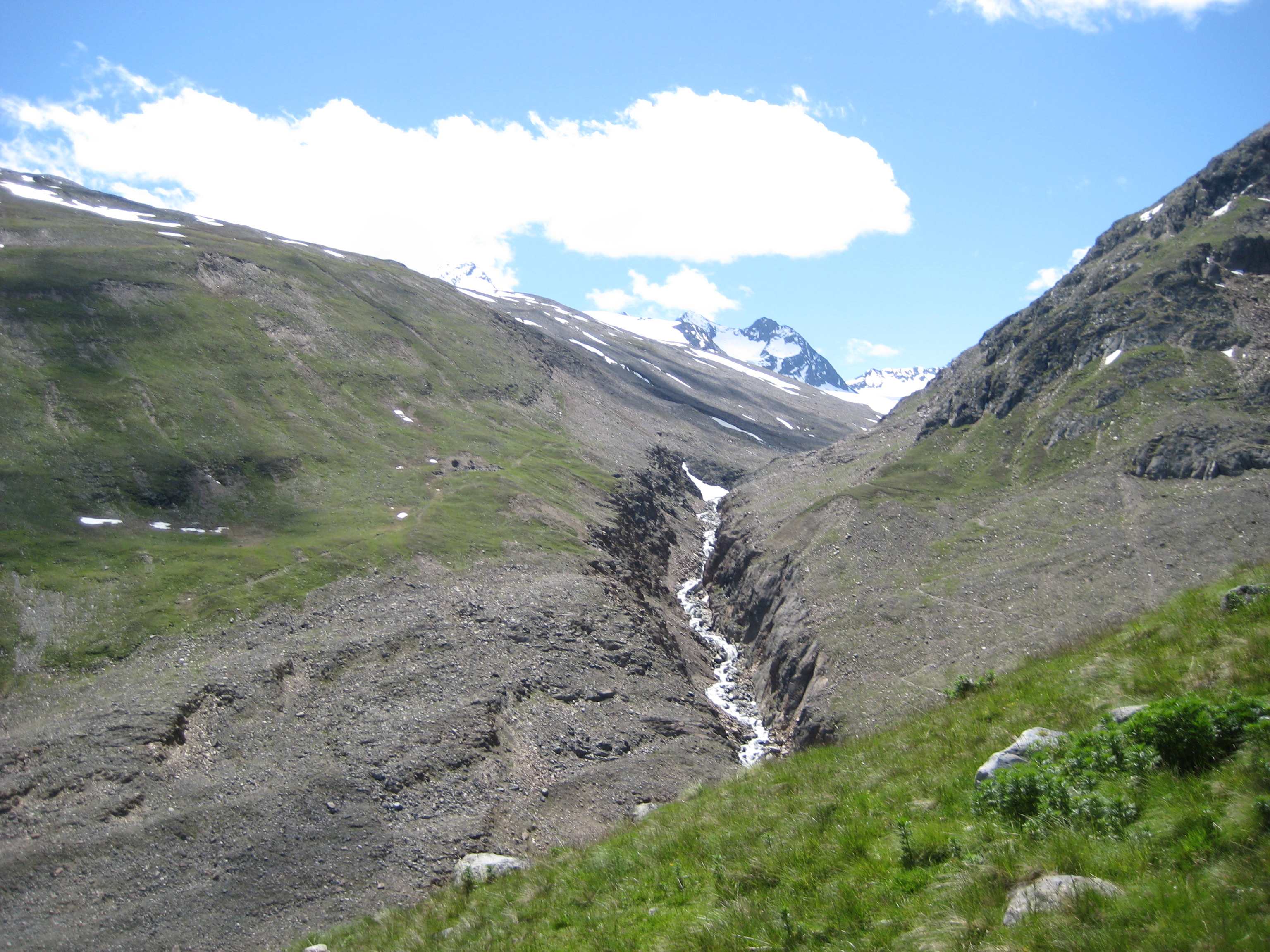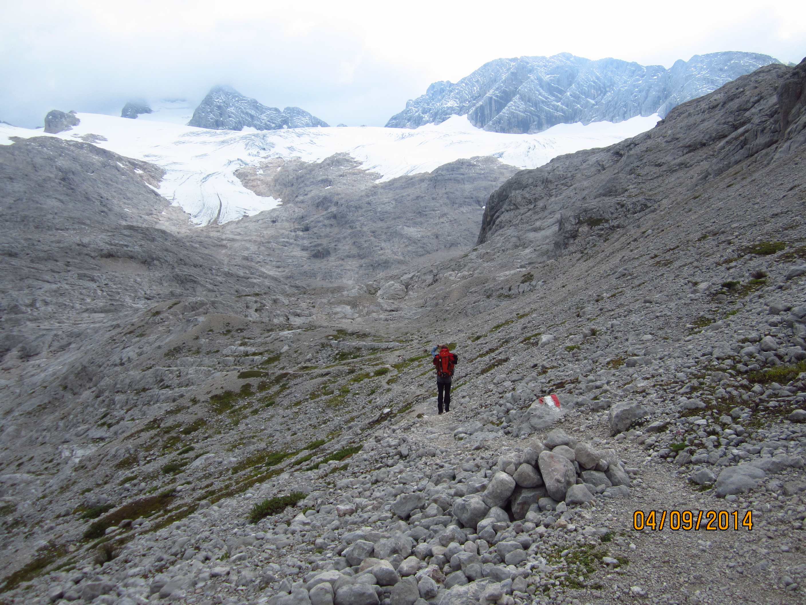 Also von der Hütte zunächst über Bergwege und dann in Serpentinen den Geröllhang hoch zur Scharte, dann wieder Geröllhangabstieg.