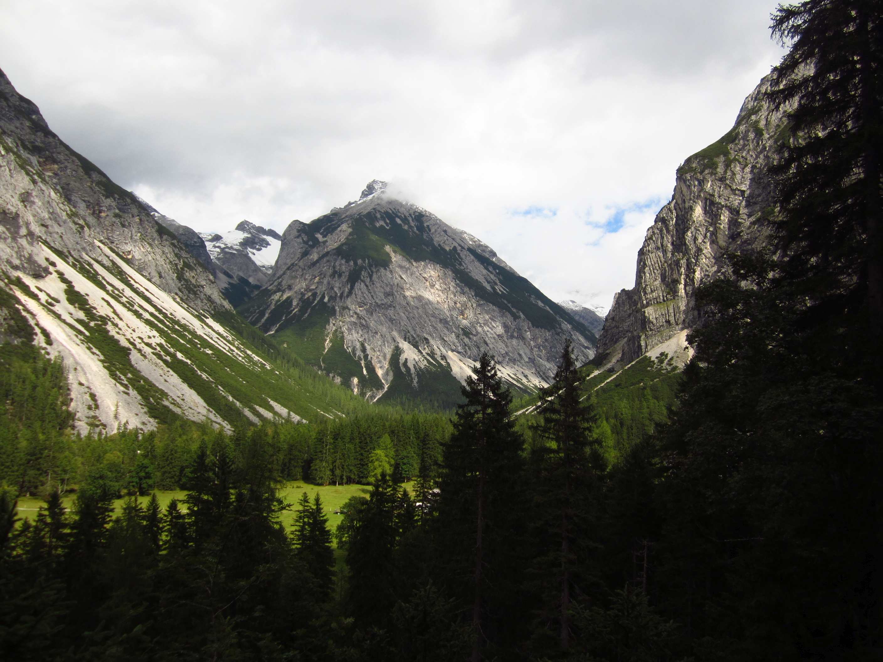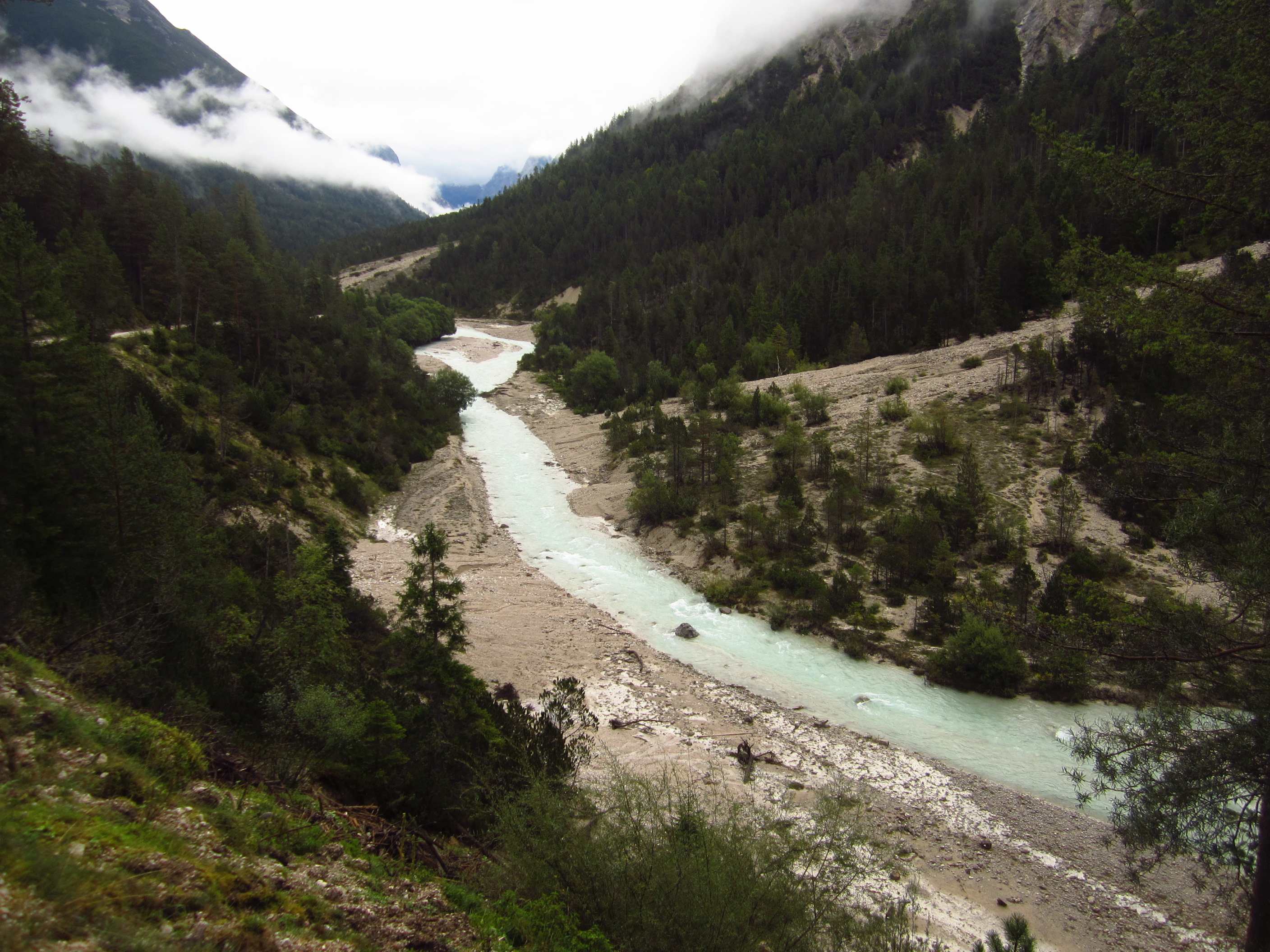 Morgens um 04:30 Uhr klingelte der Wecker und los ging es für Susan und mich mit dem Auto in Richtung Scharnitz. Wir sind super durchgekommen. Es war die ganze Zeit bewölkt und ca. 30 km vor Scharnitz setzte dann der Regen ein… Laut Wetterbericht sollte es aufhören zu regnen, was es dann auch zwischen 10 und 11 Uhr tat. Die Zeit bis dahin waren wir noch einen Kaffee trinken. Dann ging es aber endlich los, von Scharnitz aus das Isartal rauf bis zur Kastenalm, ein wunderschönes Tal mit herrlichen Blicken auf die Isar, vorbei am Isarursprung an den Flüssen… Etwas verwirrend, weil kann ja eigentlich nicht der Ursprung sein, weil da ja von weiter oben schon Wasser kommt, die eigentliche Quelle ist wohl eher oben in der Nähe der Hallerangeralm. An der Kastenalm, welche wunderschön auf einer schönen Wiese rundherum umrahmt von Bergen, liegt sind wir eingekehrt. Bei Radler und Jause konnten wir sogar draußen sitzen. Auf die musikalische Umrahmung, die in Form eines Radios mit einer Rentnertruppe eintraf, hätten wir echt verzichten können. Einer der Truppe hatte tatsächliche Blas/Volksmusik im Rucksack während der Pause und beim Wandern die ganze Zeit gespielt, unfassbar, habe ich so auch noch nicht erlebt…