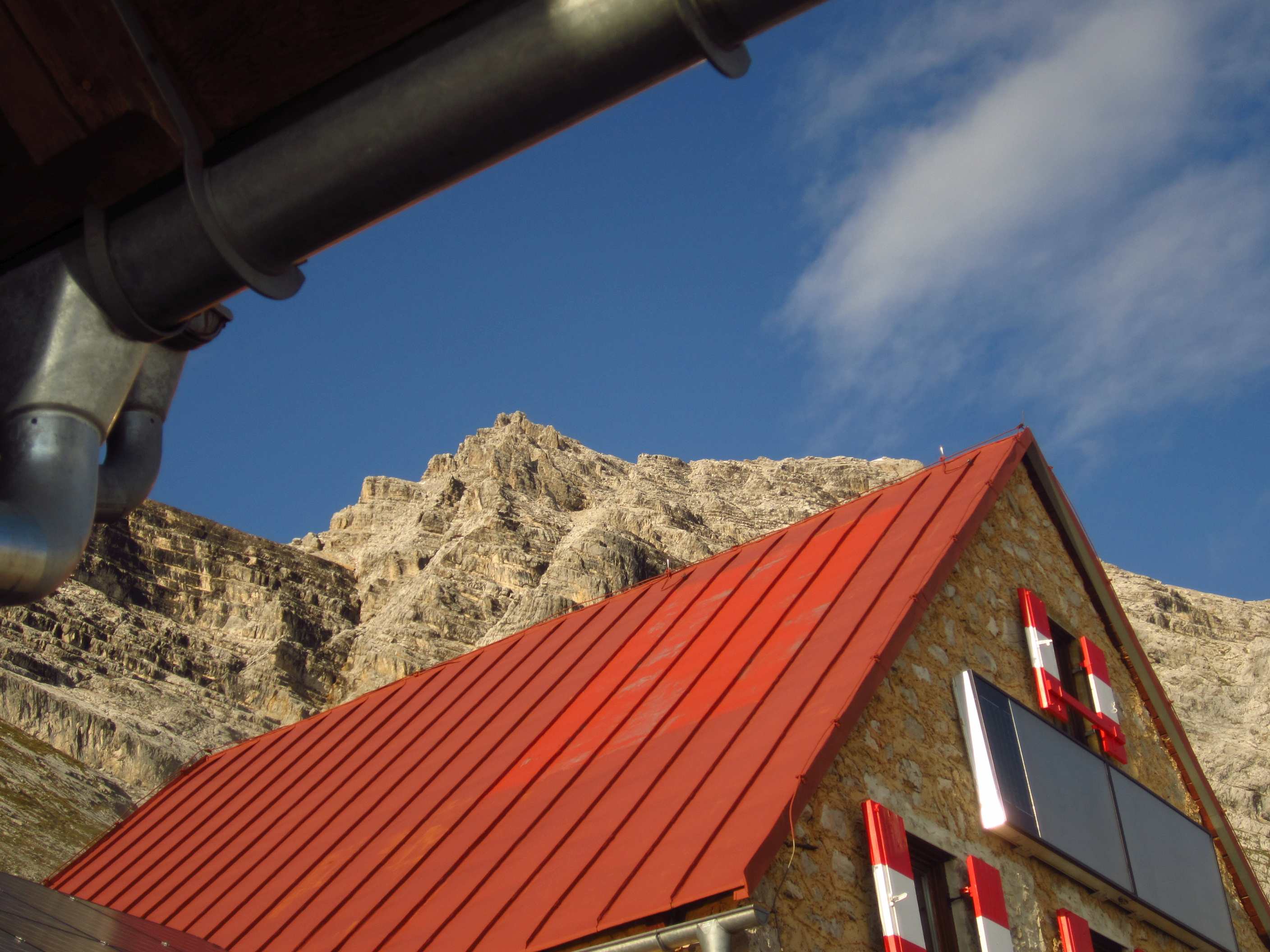 Der Abend war mit Weizen und Wein und Karten hervorragend:-) Es war sehr wenig auf der Hütte los, weil seit September 2016 der direkte Hüttenzustieg (Normalweg) gesperrt ist, also kommt man nur über das Lafatscherjoch oder den Klettersteig zur Hütte. Also fallen alle Tagesausflügler etc. weg. Die Hüttenwirte geben deswegen auch nach der Saison auf.