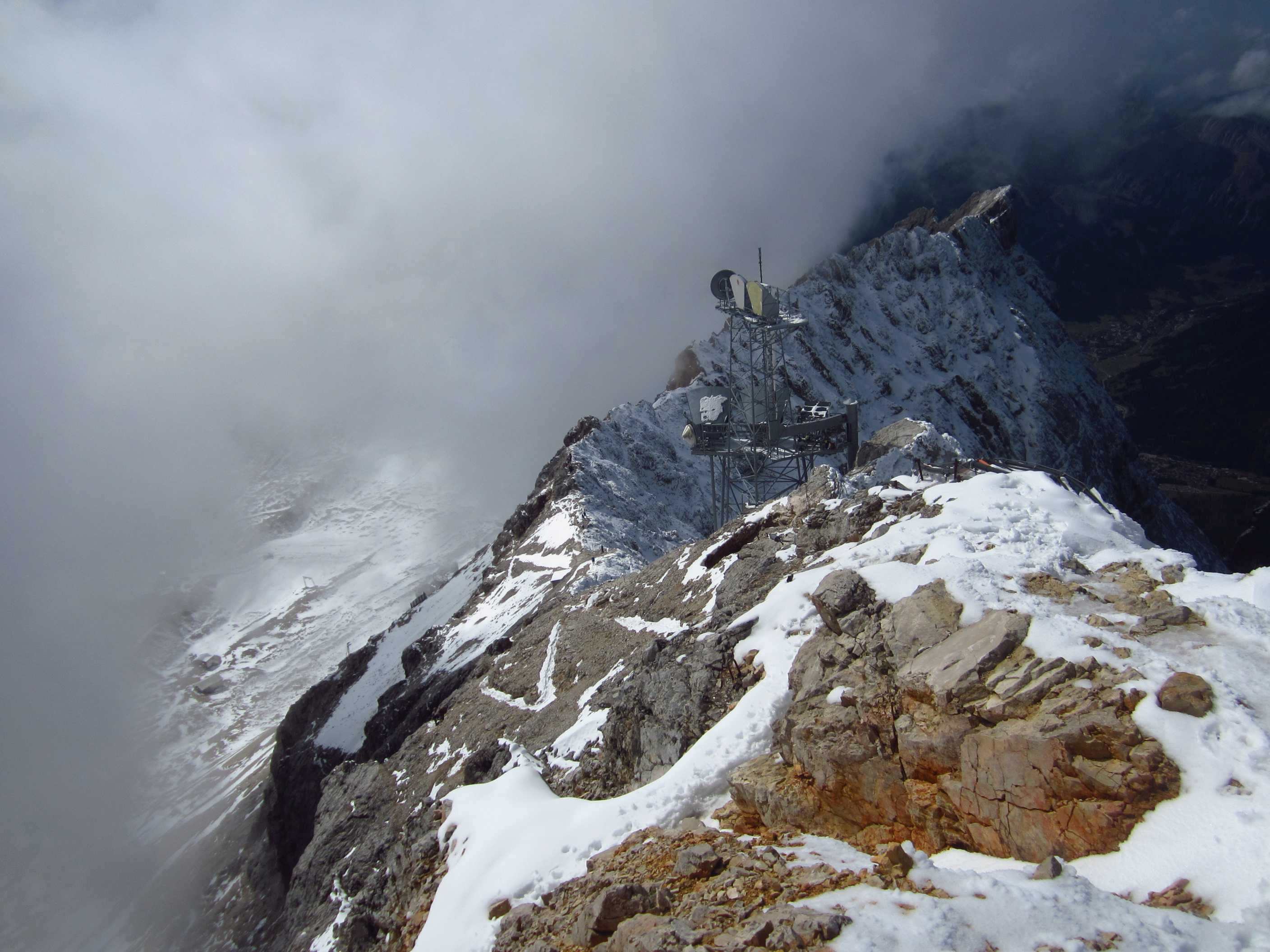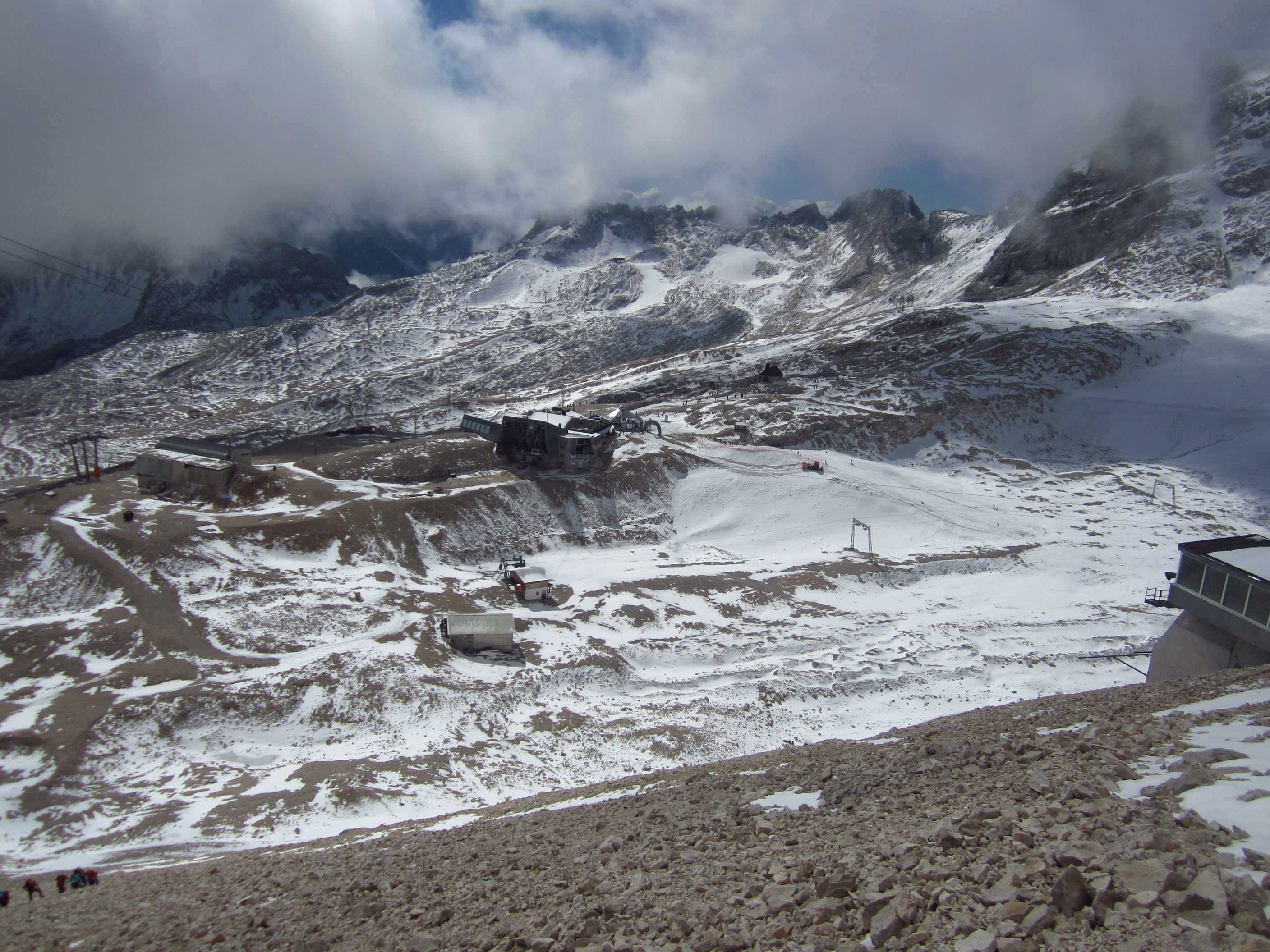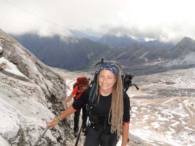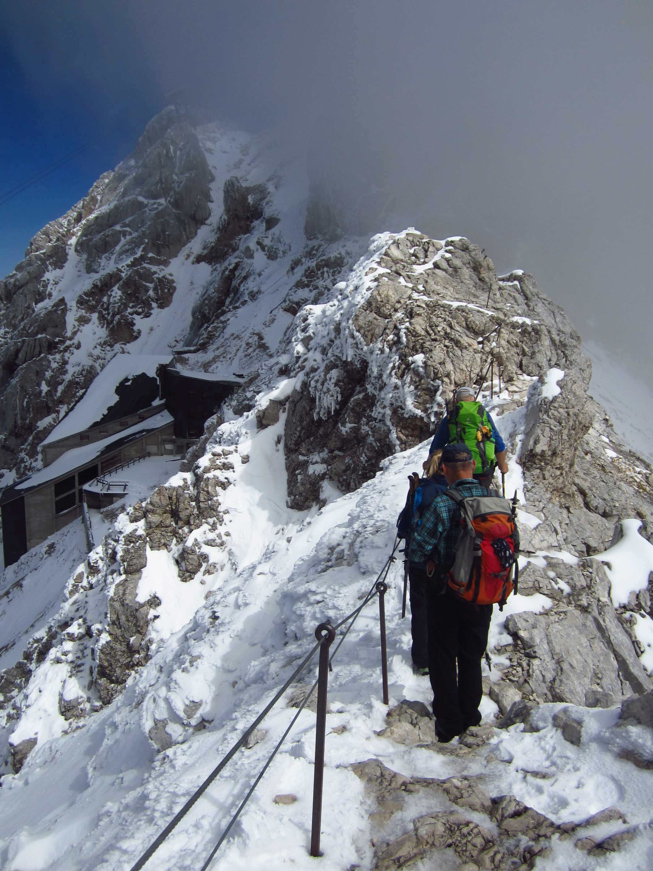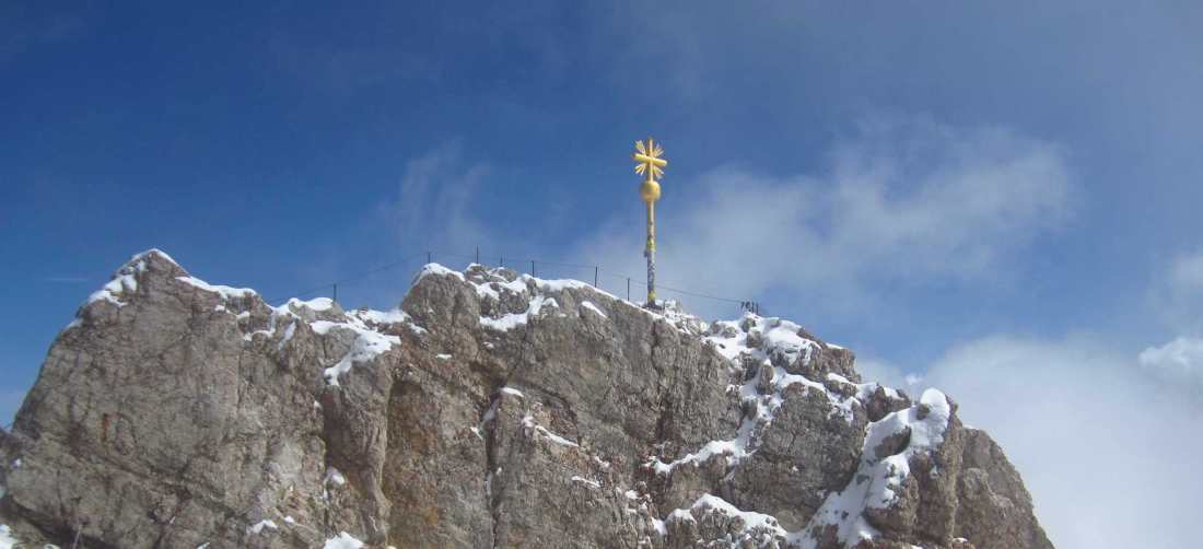 Tag 2: Aufstieg zur Knorrhütte (2052m) und weiter über Sonnalpin (2600m) zum Gipfel der Zugspitze; Abfahrt mit der Gondel zurück zum Sonnalpin und Abstieg zur Knorrhütte