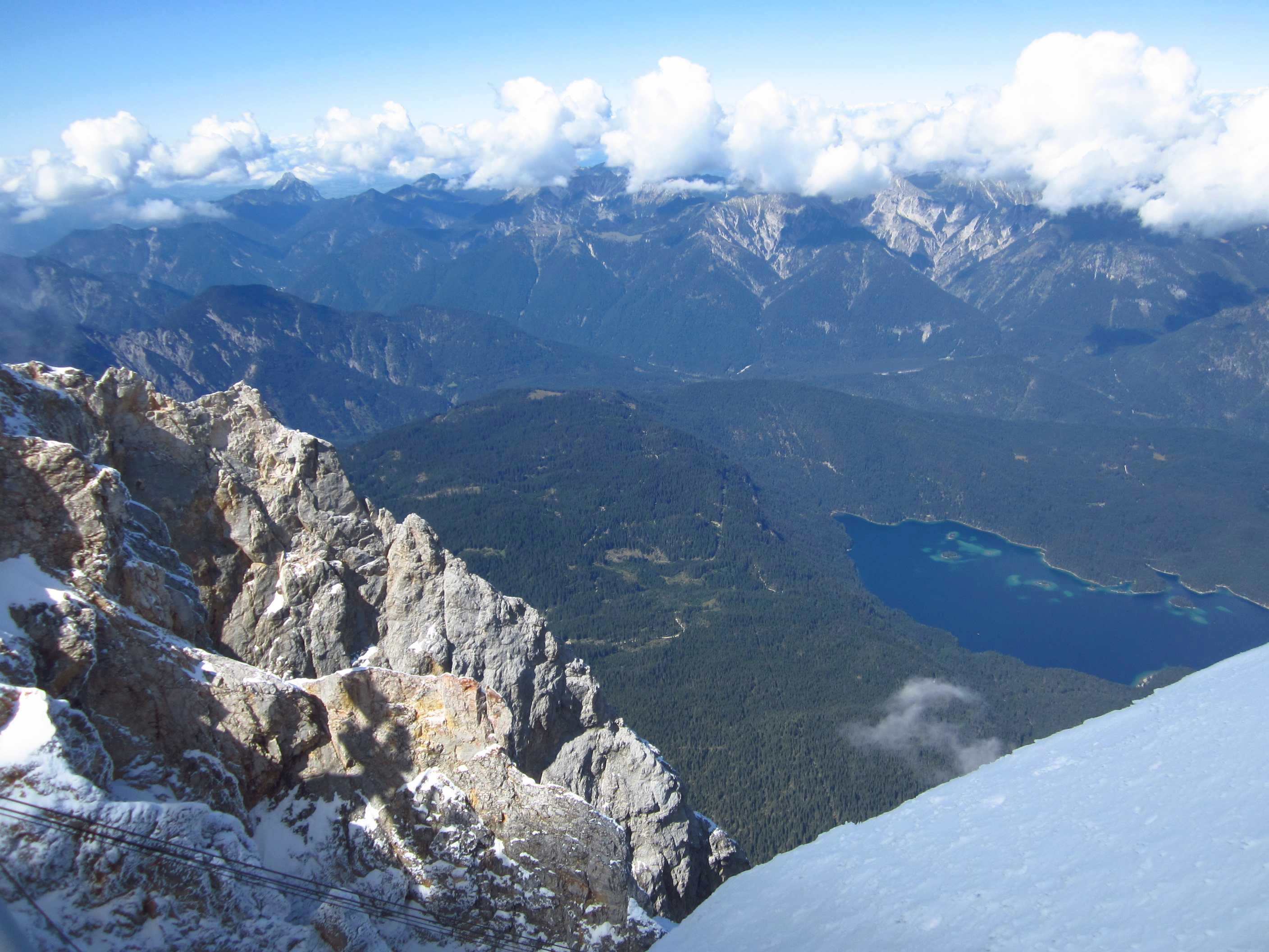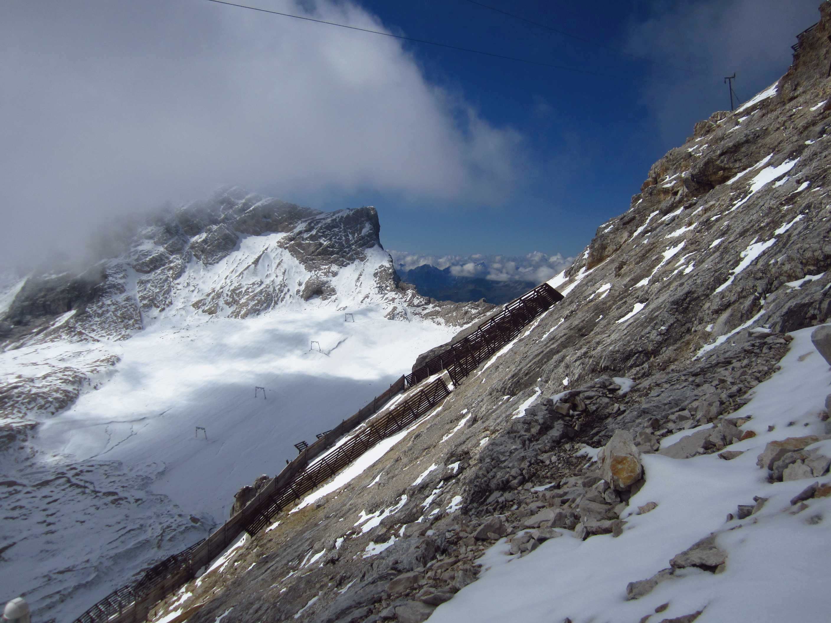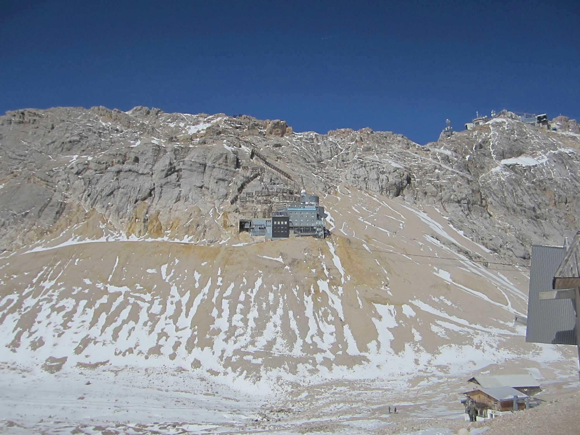 Tag 2: Aufstieg zur Knorrhütte (2052m) und weiter über Sonnalpin (2600m) zum Gipfel der Zugspitze; Abfahrt mit der Gondel zurück zum Sonnalpin und Abstieg zur Knorrhütte