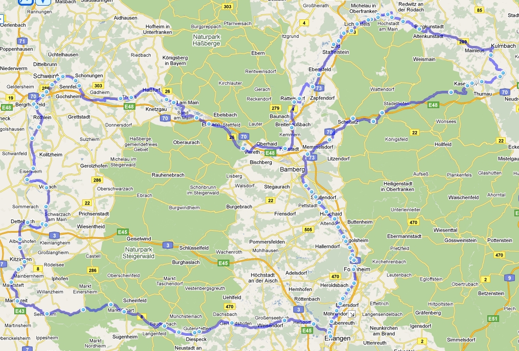 Wir trafen heute viele Wanderer, die diese Etappe als Tagestour machten, da sie in allen Wanderführern als sehr aussichtsreich angepriesen wird, was durchaus zu bestätigen ist. So stießen wir auch Vater und Tochter aus Höchstadt – so klein ist die Welt.