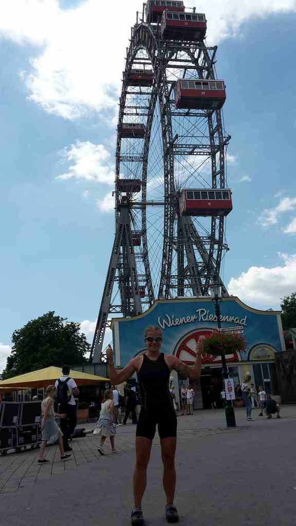 Nach langem Hin und Her am Schalter bekamen wir noch eine Chance, heute Nacht in Forchheim zu sein. Kurz vor zwei fuhr der Zug bis 23:15 Uhr. Dreimal umsteigen in Salzburg, München, Nürnberg. Moritz war jetzt weg, und so nutzten wir unseren Aufenthalt, um noch mal quer durch Wien zum Prater zu fahren. Besuch und Fotos am Riesenrad, ein Bier vor dem Urwelttempel und dann zurück zum Bahnhof.