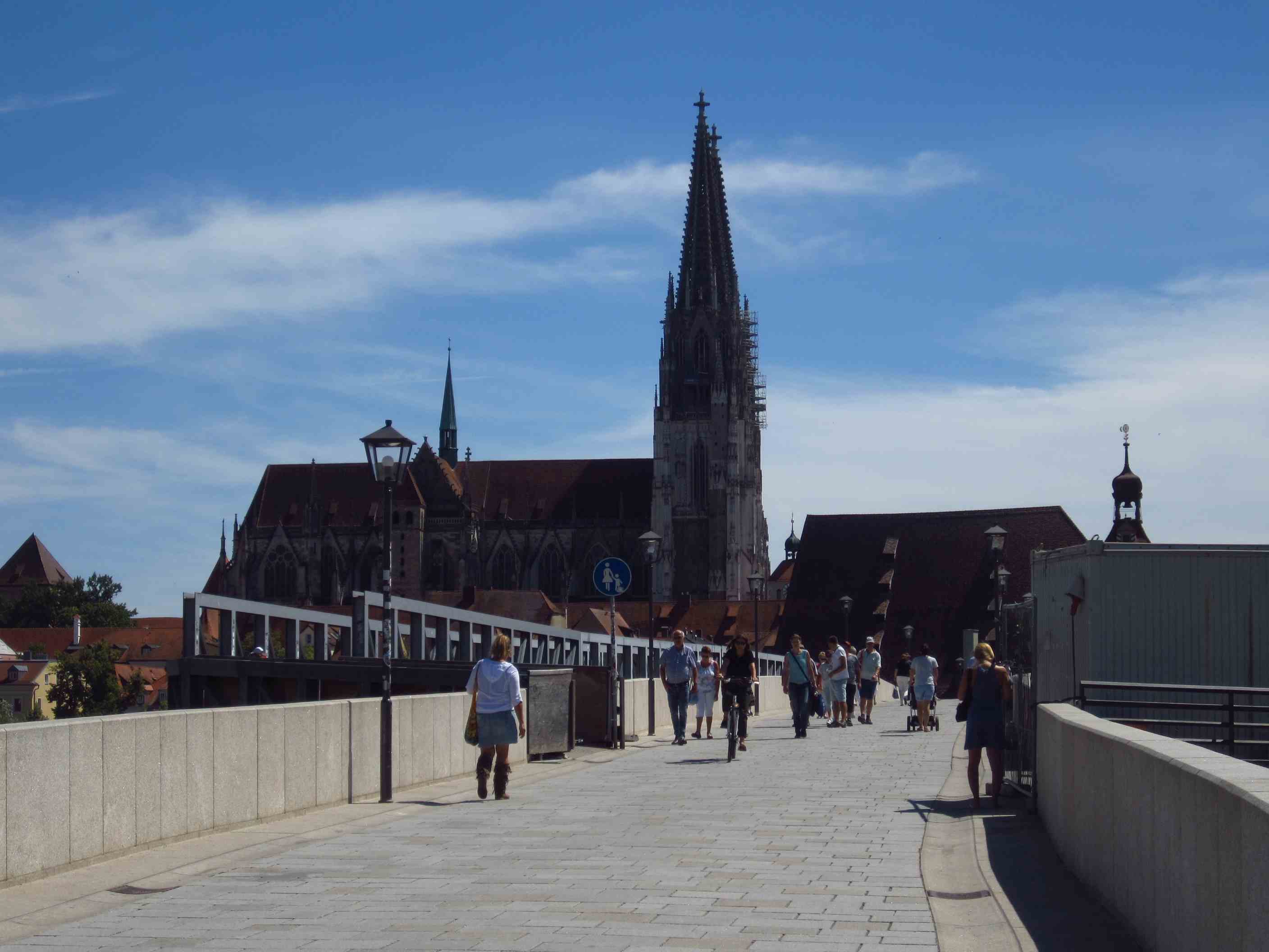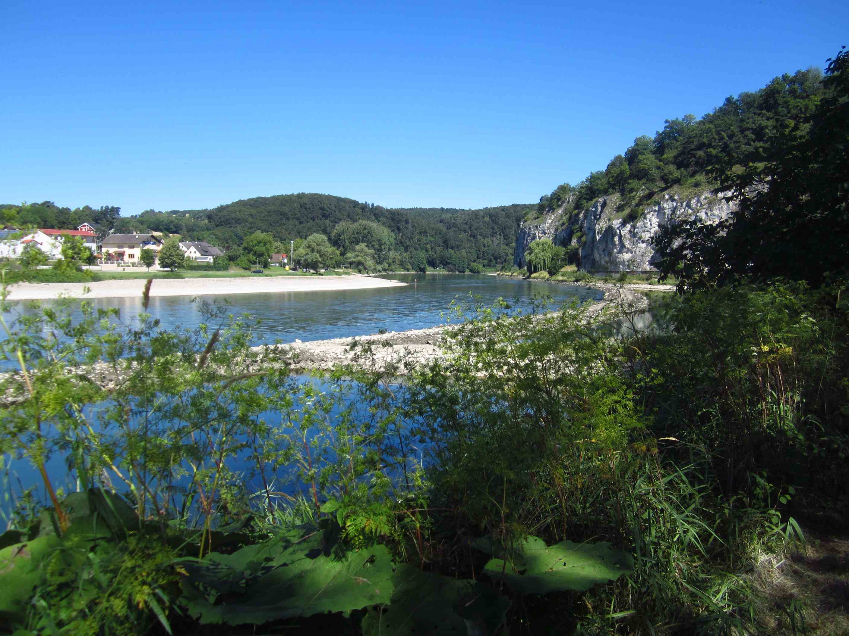 Jetzt drehte endlich der Wind. Wir starteten wie jetzt alle folgenden Tage um halb 8, und unsere Route führte uns von Ingolstadt über Neustadt, wo wir an unserer früheren Schlauchboot-Einstiegsstelle noch mal frühstückten, über Weltenburg, Kehlheim, Regensburg (Mittagspause) bis nach Straubing 139km. In Regensburg bei der Pause sahen wir unsere Österreicher noch mal vorbeifahren, auf die wir nun nicht mehr treffen sollten.