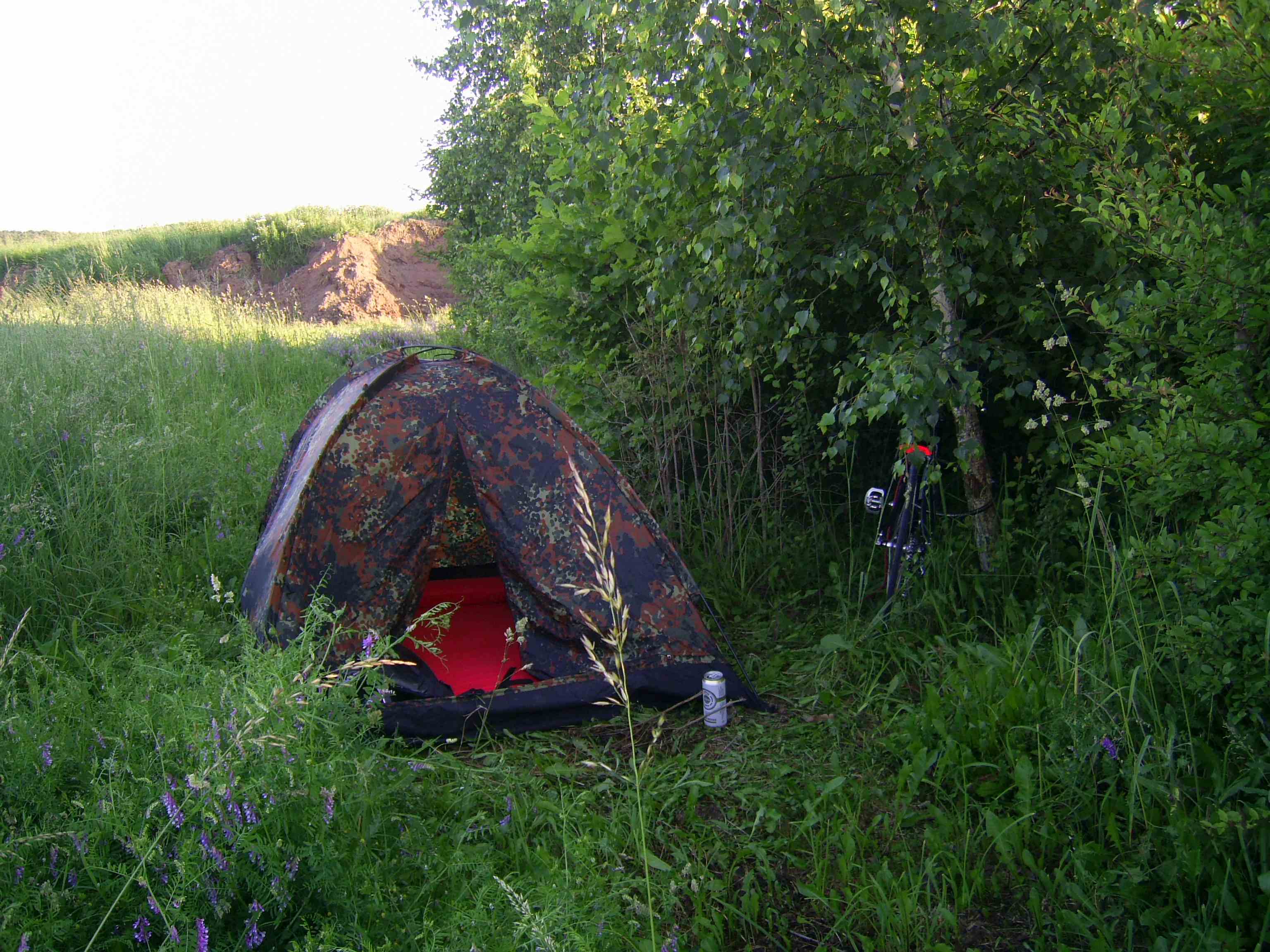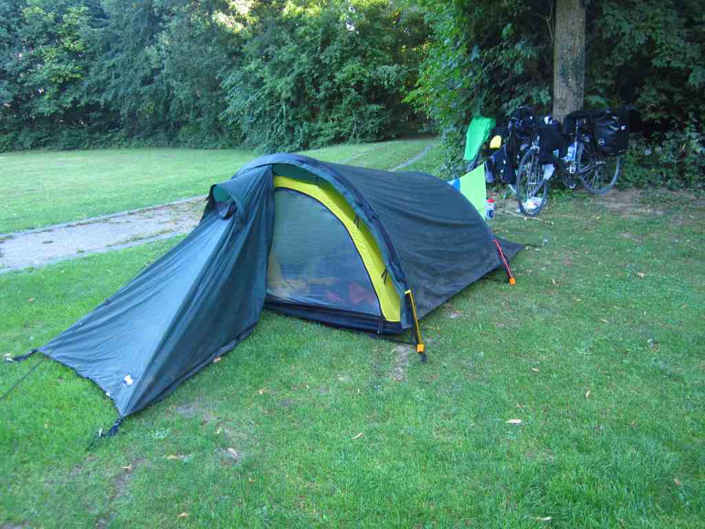 Ein gutes Stück war somit geschafft und bald erreichten wir Günzburg, wo es, oh Schreck, den Zeltplatz, der noch im Führer vom letzten Jahr eingetragen war, nicht mehr gab. Knapp 140km waren gemacht, wir beide waren platt und standen nun da. Eine Frau empfahl uns einen Zeltplatz außerhalb, wohin es noch mal 8km waren, so kamen wir auf 143km heute. Der Zeltplatz war sehr familiär. Wir aßen und tranken etwas, nahmen uns noch 4 Flaschen Bier mit zum Zelt und spielten am Abend Kniffel. Die Nacht war recht kalt und wir froren beide etwas.