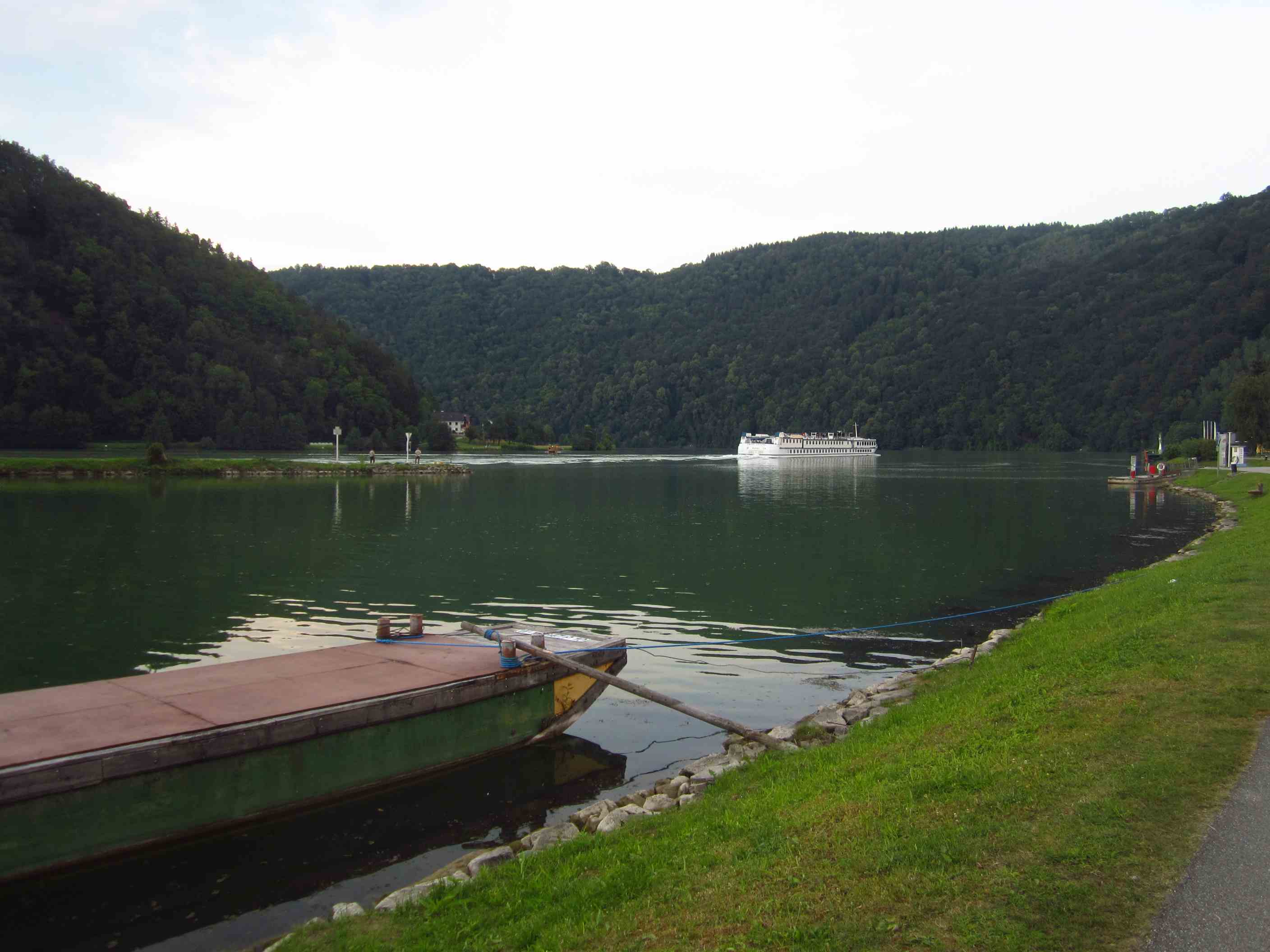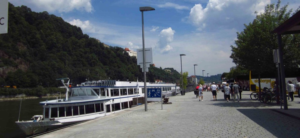 Wir starteten als Moritz noch frühstückte. Er holte uns später ein, und wir fuhren ein bißchen gemeinsam bis dann der Schotter kam und er einfach schneller war als wir. Unterwegs einen Mann aufgelesen, der seine Frau verloren hatte, dann danach die Frau gefunden, die ihren Mann suchte – ja, man erlebt so einiges auf so einer Tour, aber überall nette, hilfsbereite Menschen, alle sind so unterwegs wie wir – man hat ja nichts außer sein Rad und das Allernötigste. Mittagspause machten wir in Passau, Mittwoch Nachmittag nach 96 Tageskilometern und 592km gesamt. Was hätten wir nur so lange anstellen sollen, wenn wir jetzt schon am Endziel gewesen wären!?