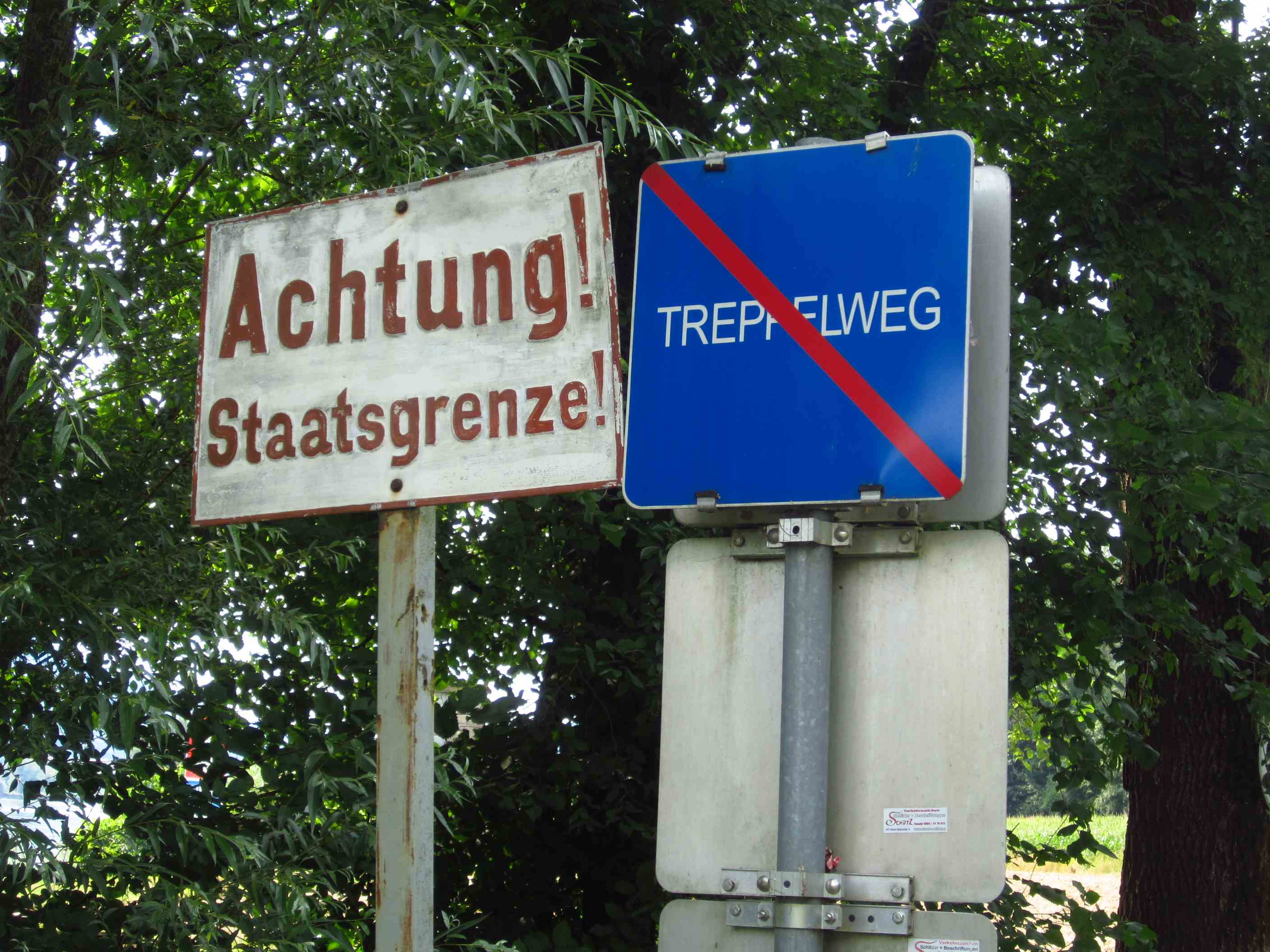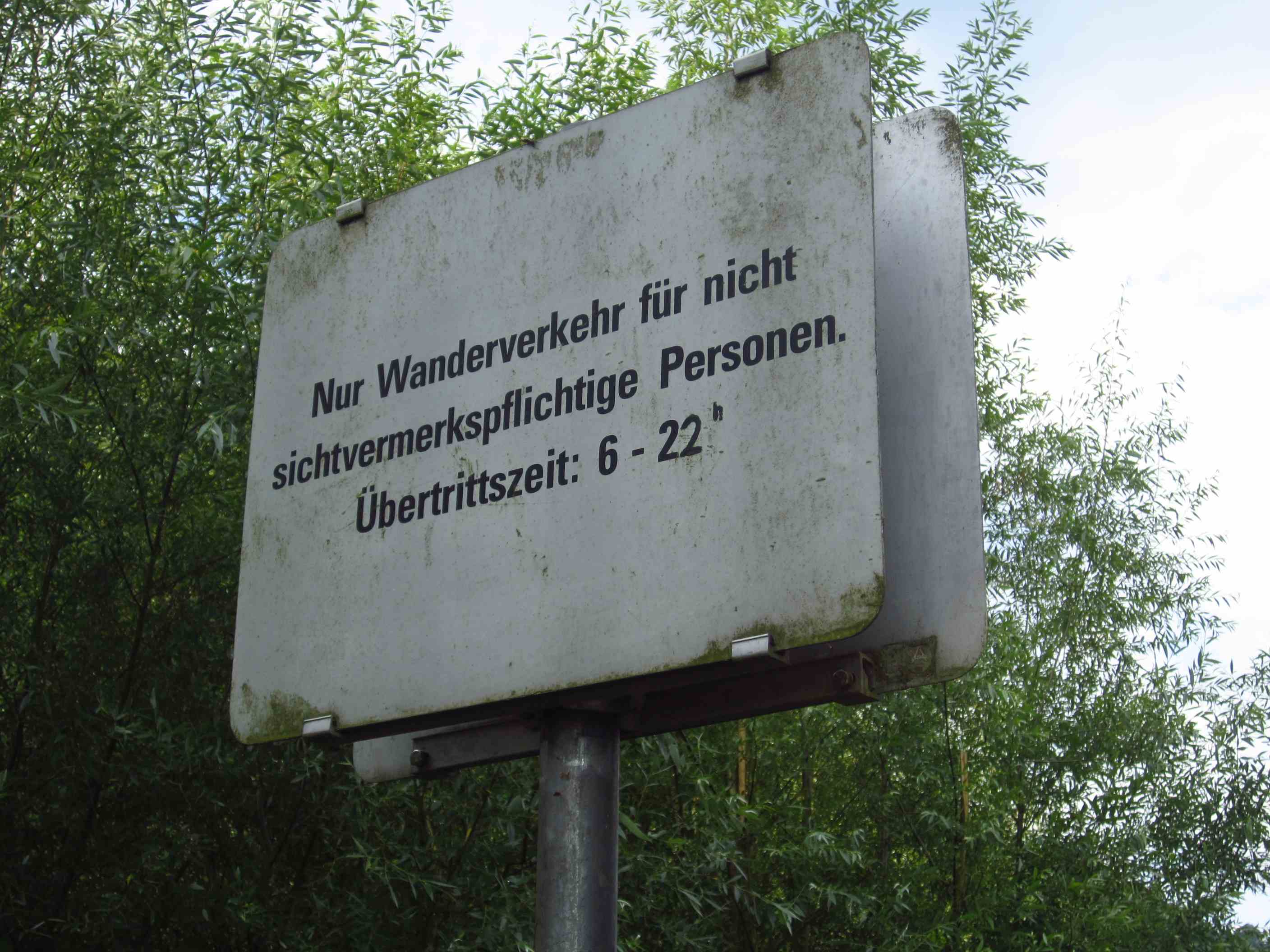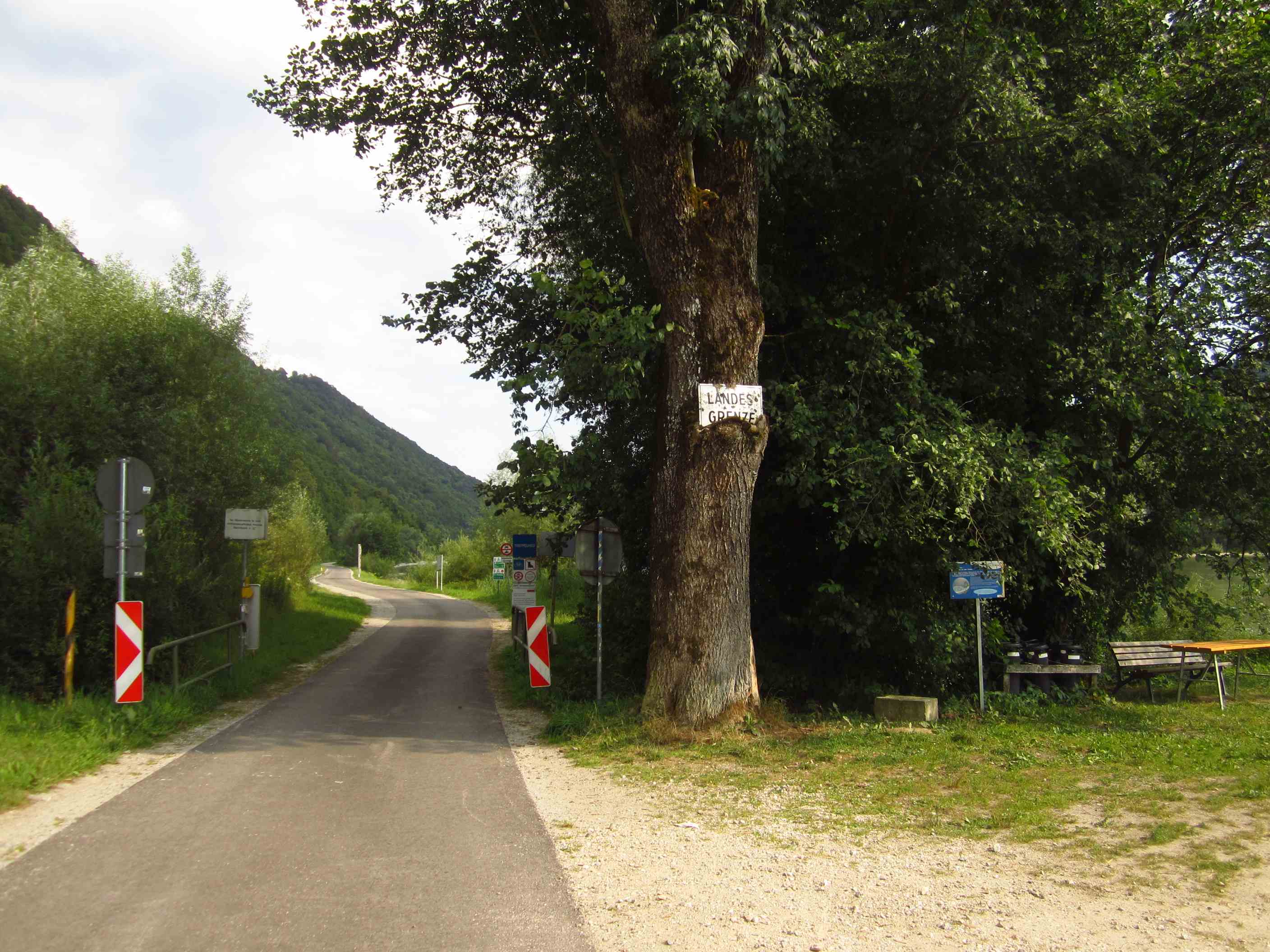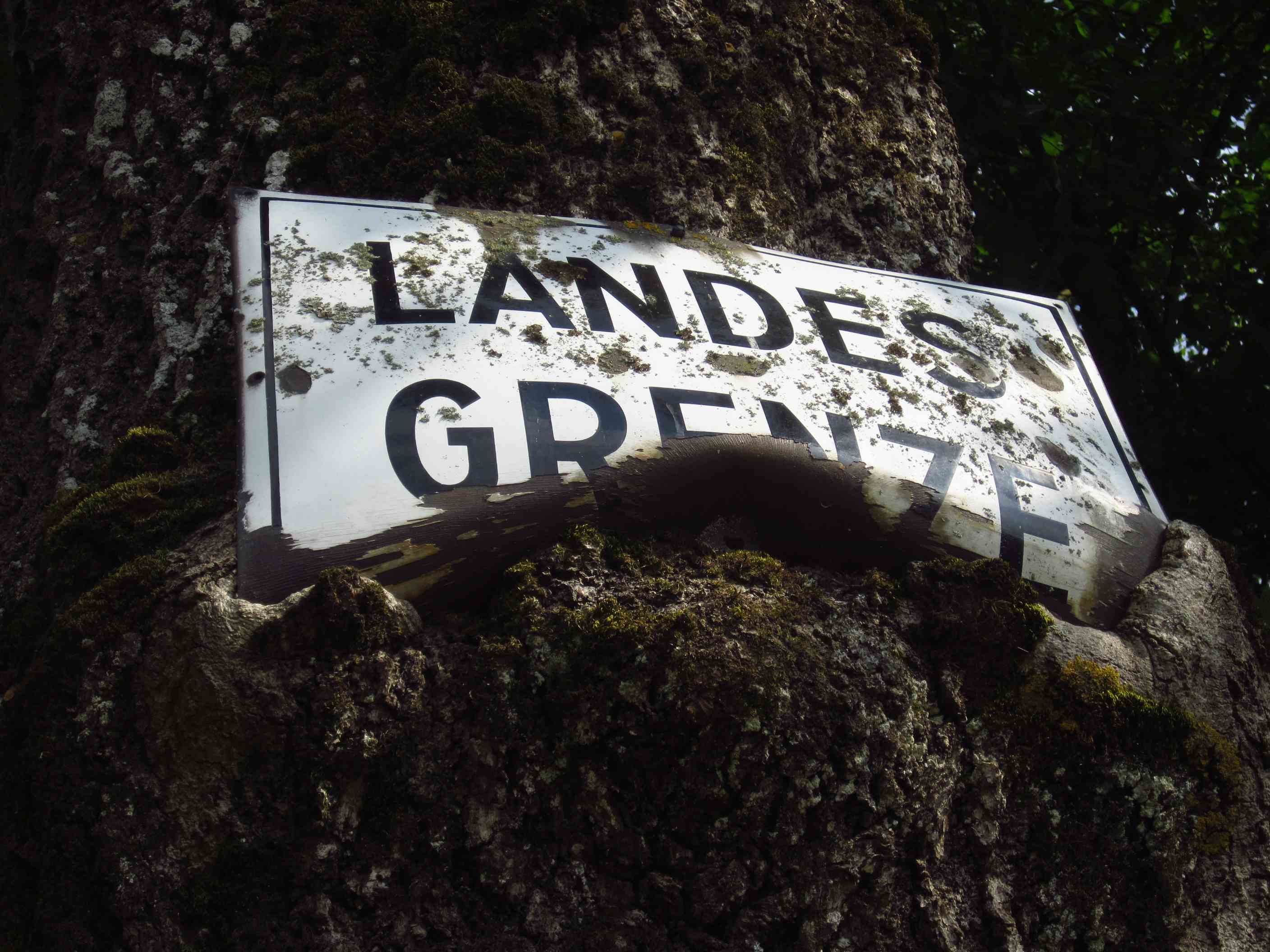 Kurze Zeit später erreichten wir die Grenze zu Österreich. Das Schild schon im Baum eingewachsen…