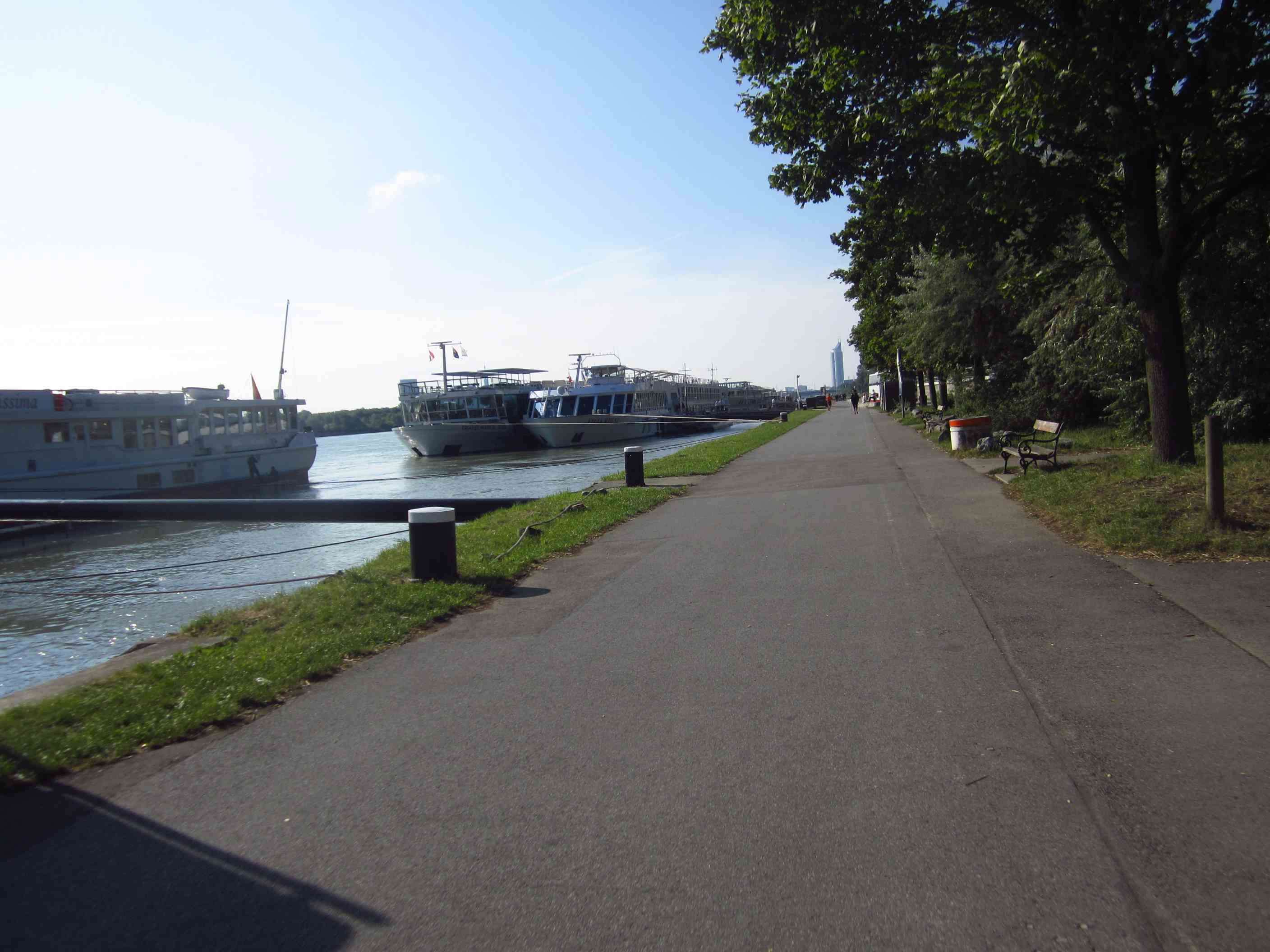 Die Reifenpanne nach 20km war die einzige geblieben, alle Wehwehchen waren überstanden und stolz waren wir allemal. Moritz kam dann nach Absprache auch dahin, wir tranken einen Kaffee und erzählten von unseren Touren. Gemeinsam wollten wir dann zum Prater fahren, leider fuhren wir in die falsche Richtung los, so daß wir kurz vor dem Hauptbahnhof dann doch erstmal diese Richtung eingeschlagen haben.