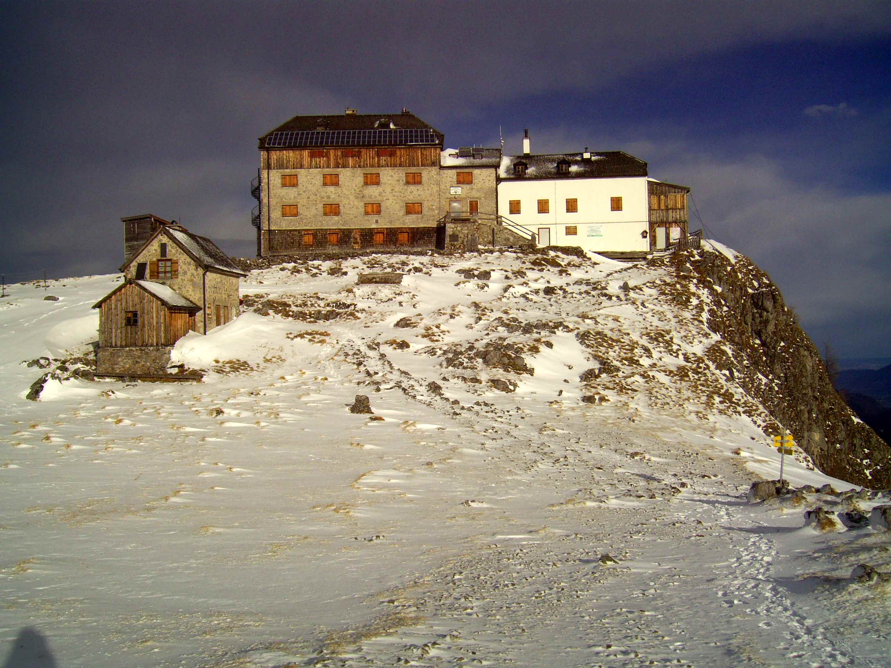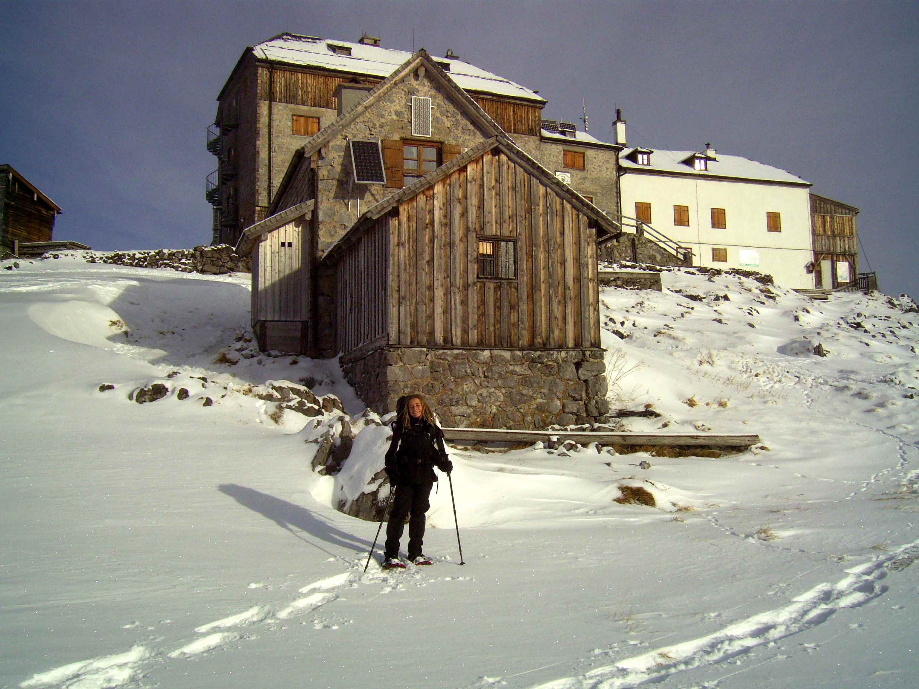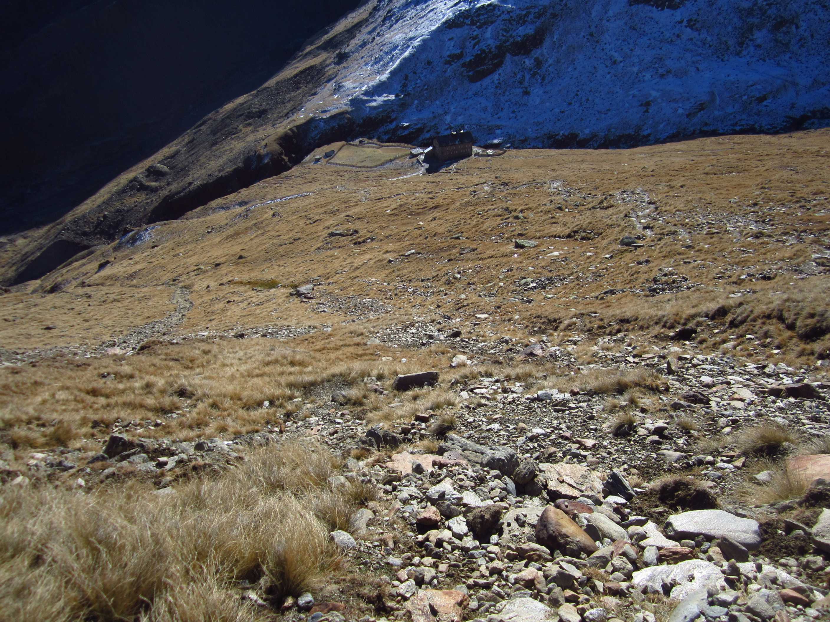 Das Wetter war wirklich durchgängig überaus extrem hier in den Bergen. Es regnete bestimmt eine knappe Stunde, dann war es wieder vorbei und so langsam kam wieder die Sonne. Leider kühlte es bei diesen Güssen auch immer schnell ab. Wind war sowieso fast immer, so wurde es auch heute nicht mehr richtig warm. Jetzt konnte ich auch noch duschen und dann gab’s wieder selbstgekochte Nudeln. Wir trafen in der Küche Dominik und Sabine aus Berlin, die auch gerade am Kochen waren und saßen dann den ganzen Abend zu lange mit zu viel Wein zusammen. Sie liefen in die andere Richtung und waren nicht sicher, ob der restliche Teil was für sie wäre. Sabine hat wohl etwas Höhenangst. Die beiden hatten ein Stück Käse dabei, das sie irgendwo gekauft hatten und ließen uns probieren – nur ein kleines Stück… Das war der schärfste Käse, den ich je gegessen habe, echt verrückt, was es alles gibt. Ich glaube nicht, daß dieser Käse je aufgegessen wurde.